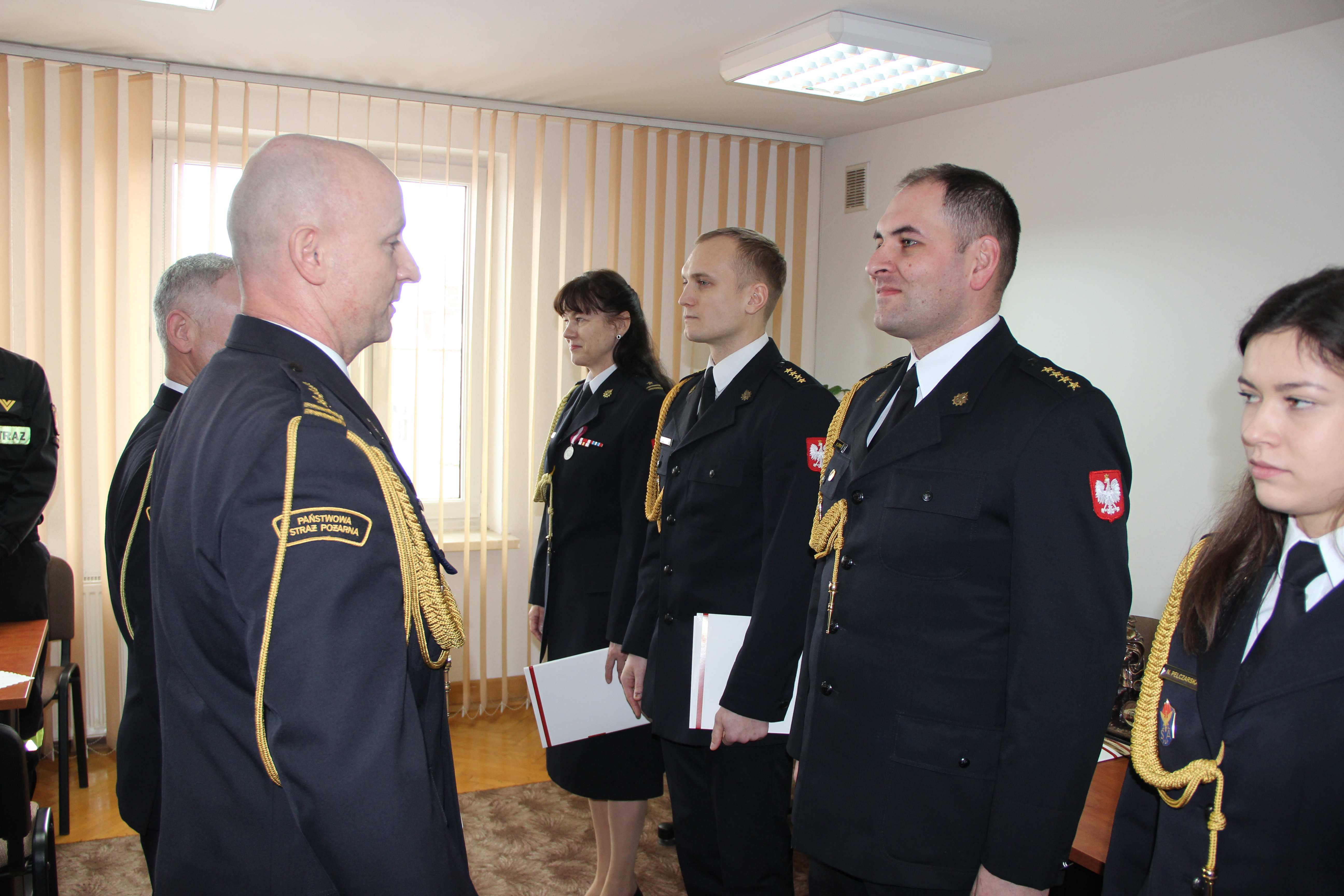 Podczas uroczystej zbiórki Komendant Miejski Państwowej Straży Pożarnej w Krośnie st. bryg. Zbigniew Nowak w związku w z wymianą kadr wręczył akty mianowania na wyższe stanowiska służbowe dla mł. bryg. Krystyny Janusz – na stanowisko Naczelnika Wydz. Organizacyjno-Kadrowego i BHP, st. kpt. Łukaszowi Wójcikowi na stanowisko Zastępcy Naczelnika Wydz., st. kpt. Marcinowi Lorensowi na Kierownika Sekcji Kontrolno-Rozpoznaczej, a także mł. asp. Nikoli Lenik na stanowisko Inspektora.