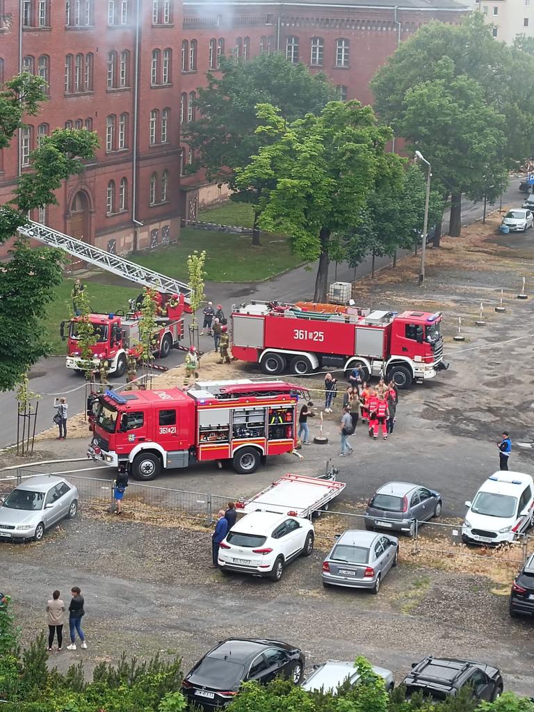 W wyniku wystąpienia zdarzenia określonego w epizodzie I podczas prowadzenia ewakuacji studentów z laboratorium budynku „D” w którym prowadzono badania doszło do omdlenia jednej osoby i rozbicia próbek z nieznaną substancją. Działania prowadziła Specjalistyczna Grupa Ratownictwa Chemicznego i Ekologicznego "Legnica-2".