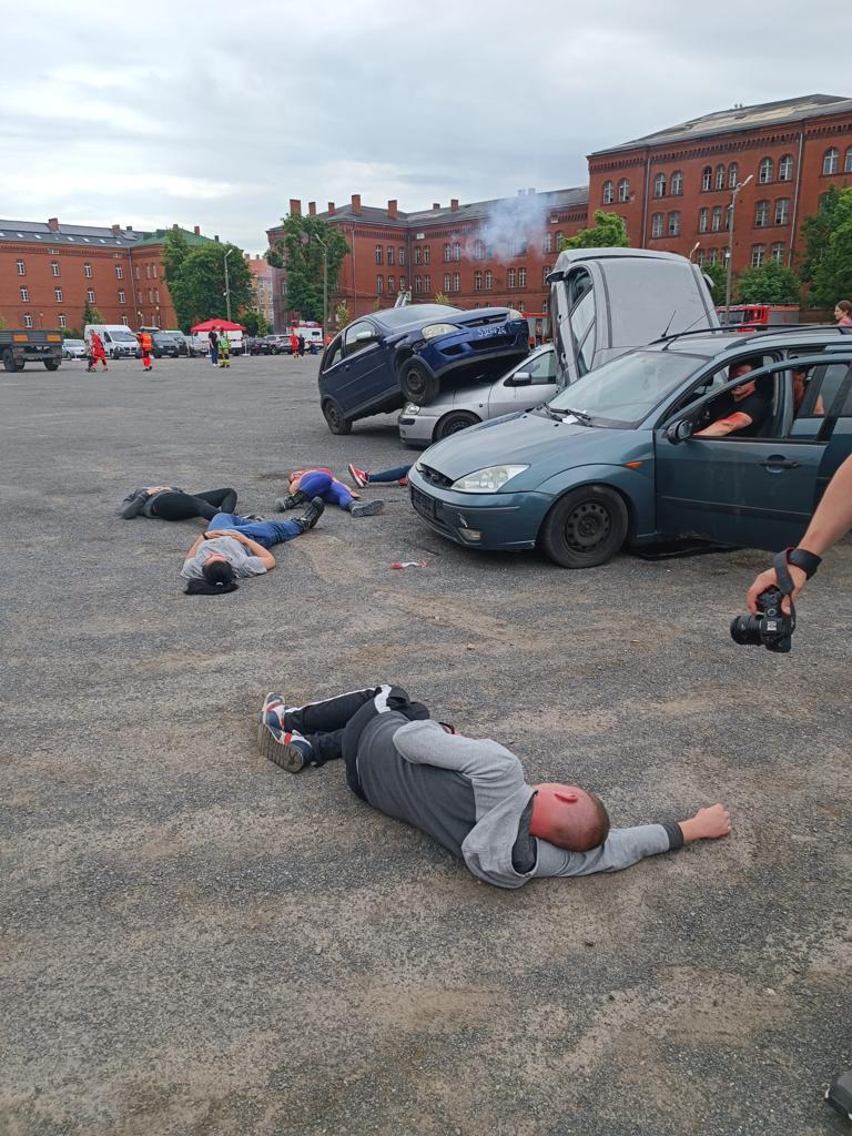 Epizod realizowany na parkingu uczelni (przy budynku „E”). Wypadek kilku samochodów osobowych, które wjechały w tłum ludzi. Ilość osób poszkodowanych nieznana. Warunki panujące na miejscu ćwiczeń – rzeczywiste zastane podczas rozpoznania.