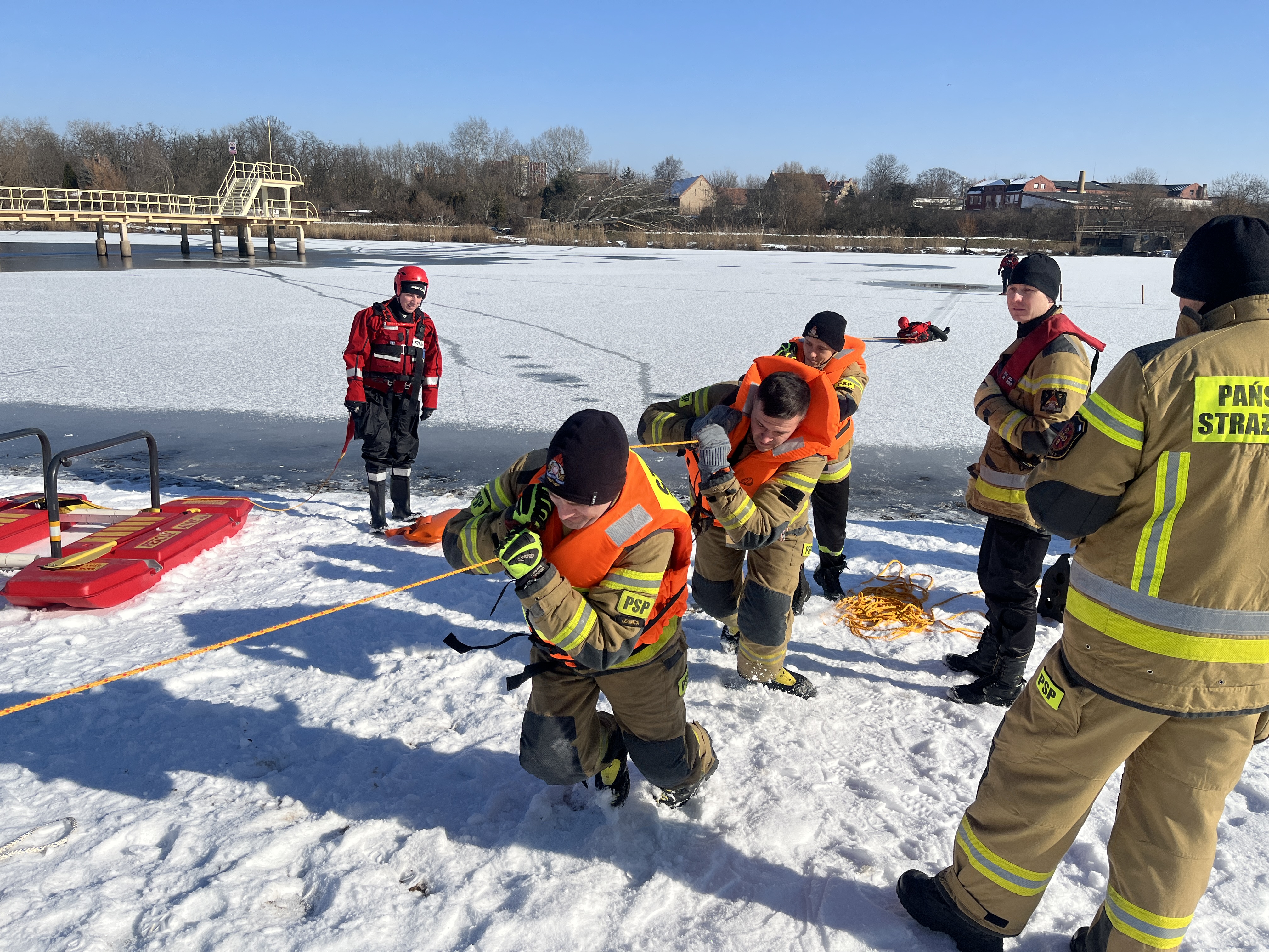W dniu 20 lutego 2025 r. strażacy z Komendy Miejskiej Państwowej Straży Pożarnej w Legnicy przeprowadzili manewry z zakresu ratownictwa lodowego. Ćwiczenia odbyły się w dwóch lokalizacjach: na kąpielisku „Kormoran” w Legnicy, gdzie ćwiczyli ratownicy z jednostki Ratowniczo-Gaśniczej nr 1 i nr 2, oraz w Chojnowie, na stawach, gdzie ćwiczyli strażacy z Jednostki Ratowniczo-Gaśniczej w Chojnowie. Podczas manewrów szczególną uwagę zwrócono na techniki podejmowania osób, które wpadły do wody w wyniku załamania lodu, a także na właściwą obsługę sprzętu ratowniczego. Zostały przypomniane również zasady bezpieczeństwa, które należy przestrzegać podczas działań na lodzie. Szkolenie miało na celu zwiększenie skuteczności legnickich strażaków w przypadku zdarzeń związanych z wypadkami na lodzie, zapewniając lepsze przygotowanie do szybkiego i bezpiecznego reagowania w takich sytuacjach.