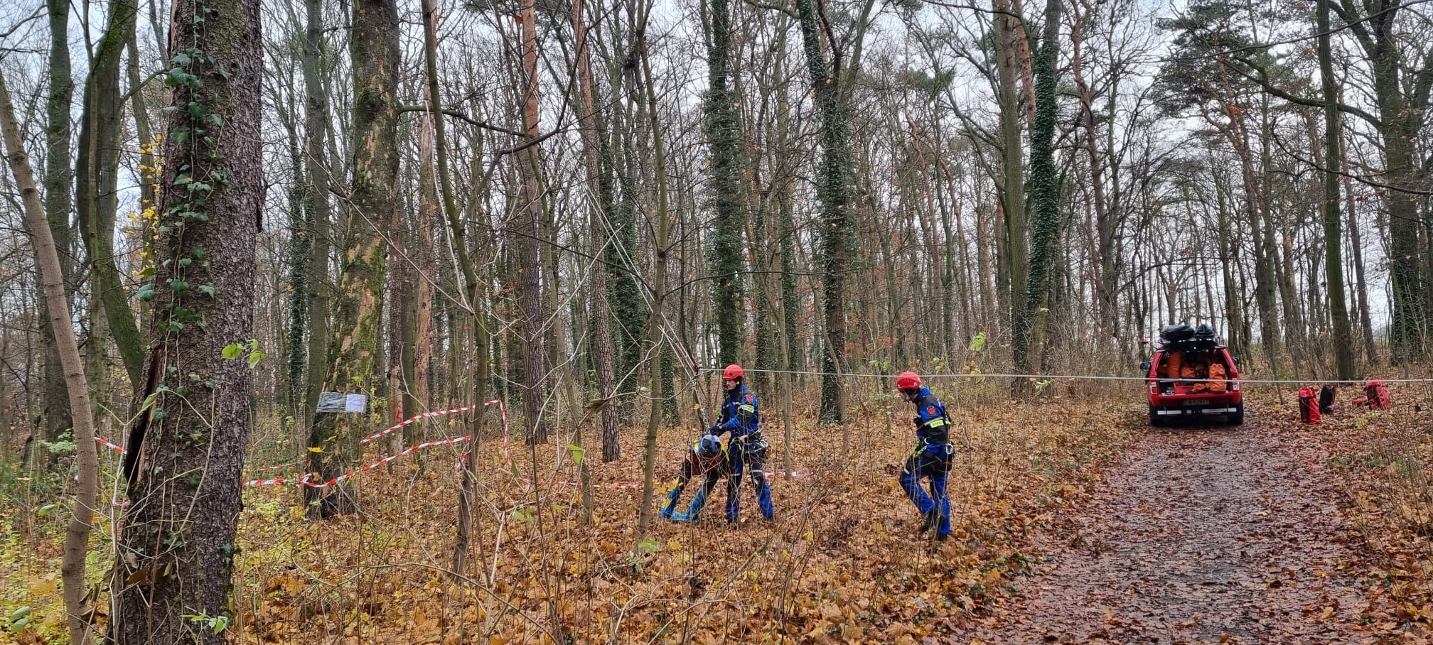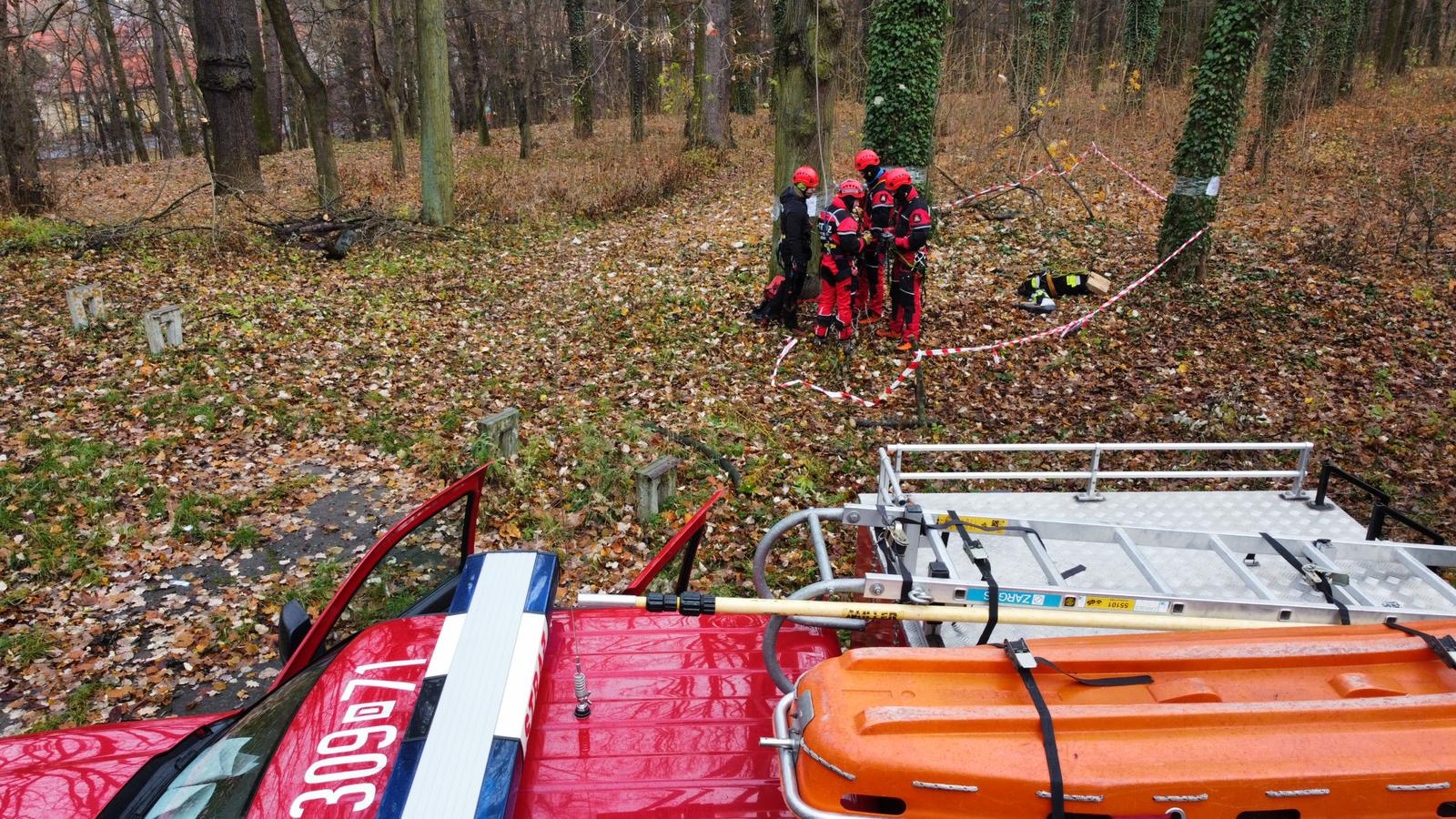 Dnia 30 listopada 2021 r. na terenie Parku Miejskiego w Chojnowie miały miejsce ćwiczenia zgrywające Specjalistyczne Grupy Ratownictwa Wysokościowego z województwa dolnośląskiego. Podczas ćwiczeń przyjęto zaistnienie zdarzenia, w którym trzech paralotniarzy zostało uwięzionych na drzewach. Zadaniem ratowników wysokościowych była ich szybka ewakuacja przy użyciu technik alpinistycznych. Strażacy wchodzący w skład Specjalistycznej Grupy Ratownictwa Wysokościowego mieli możliwość doskonalenia umiejętności i wiedzy zawodowej z tej dziedziny ratownictwa. Obecność członków innych grup pozwoliła na wymianę doświadczeń i własnych spostrzeżeń dotyczących przeprowadzonych działań podczas zaplanowanego epizodu.