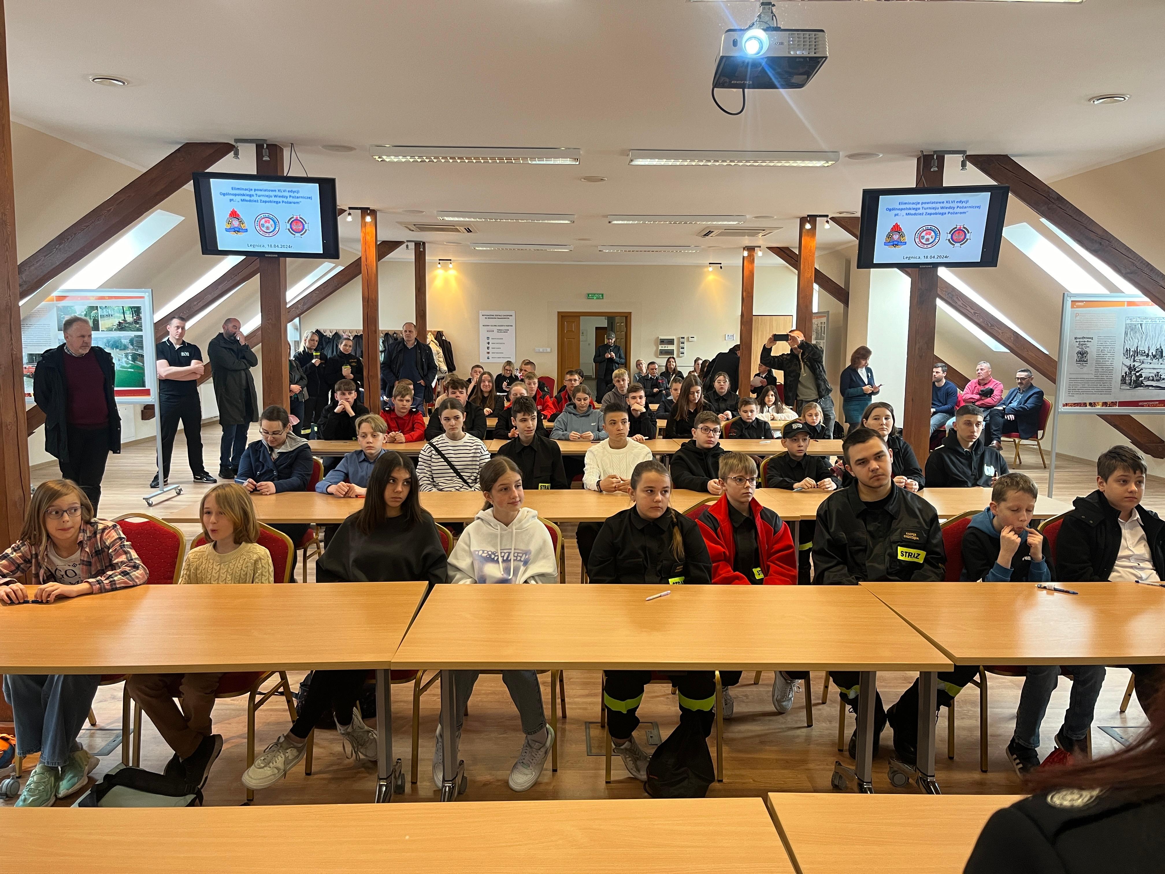 18 kwietnia 2024 roku na Sali Konferencyjnej KM PSP w Legnicy odbyły się eliminacje powiatowe Ogólnopolskiego Turnieju Wiedzy Pożarniczej pod hasłem „Młodzież zapobiega pożarom”. Konkurs ma na celu popularyzowanie przepisów i kształtowanie umiejętności w zakresie ochrony ludności, ekologii, ratownictwa i ochrony przeciwpożarowej.