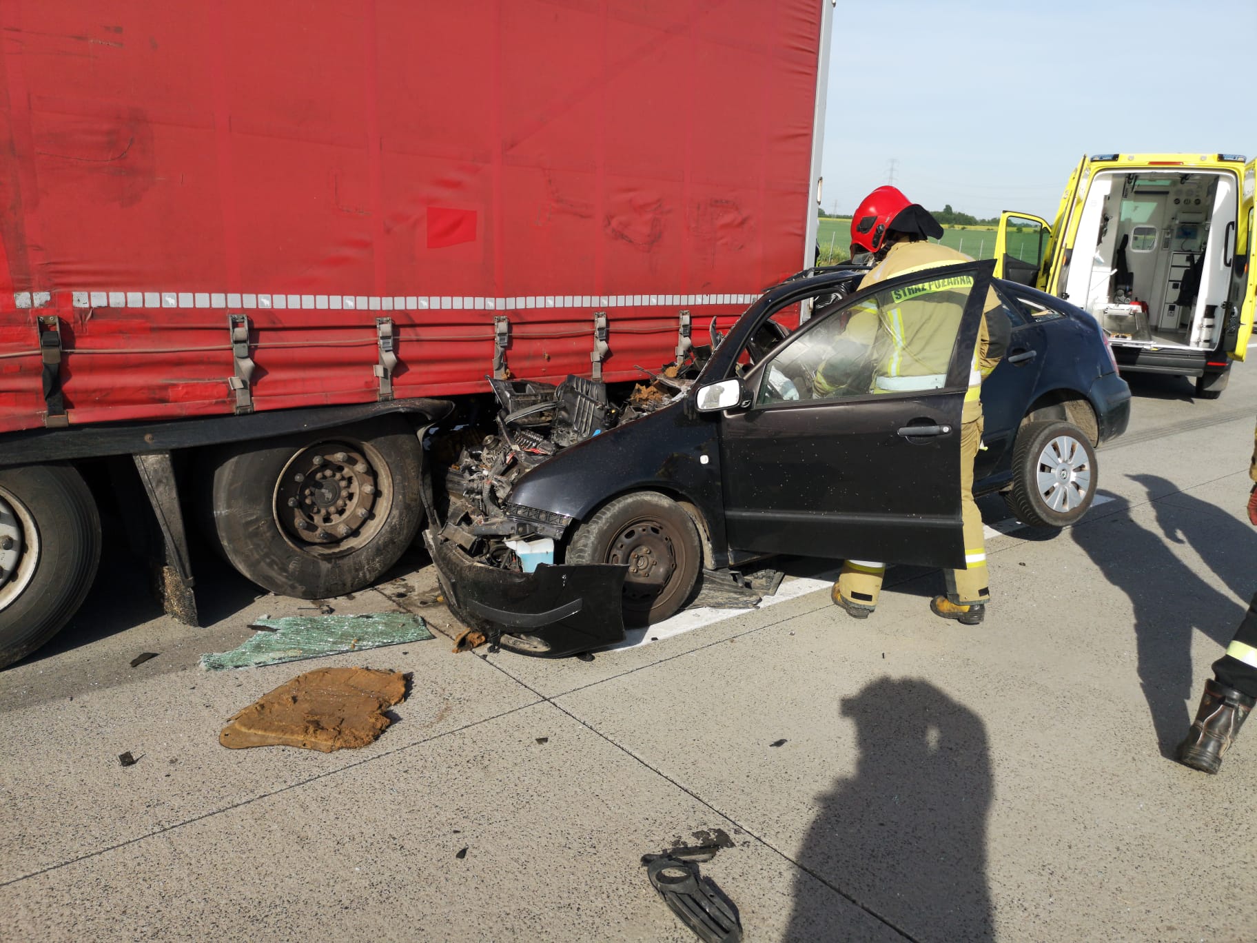 W dniu 19.05.2022 r. na drogach powiatu legnickiego miały miejsce dwa groźne wypadki drogowe. Do pierwszego z nich doszło o godzinie 17:11 na setnym kilometrze autostrady A4 w kierunku Zgorzelca. Kierujący pojazdem osobowym wjechał w tył naczepy pojazdu ciężarowego, w wyniku czego ponad połowa prawej części samochodu znajdowała się zakleszczona pod naczepą. Do działań ratowniczych zadysponowano dwa zastępy z Jednostki Ratowniczo-Gaśniczej nr 2, OSP Taczalin oraz OSP Legnickie Pole. Kierujący pojazdem osobowym został wydobyty z wraku i przekazany Zespołowi Ratownictwa Medycznego, który przetransportował poszkodowanego do szpitala. Autostrada w tym miejscu została częściowo zablokowana. Kolejne zdarzenie drogowe miało miejsce o godzinie 17:47 na drodze powiatowej prowadzącej od miejscowości Grzybiany do Koskowic, gdzie doszło do zderzenia pojazdu typu bus z samochodem osobowym. W wypadku łącznie brały udział trzy osoby, z których jedna wymagała udzielenia kwalifikowanej pomocy medycznej. Do wypadku zadysponowano zastęp z Jednostki Ratowniczo-Gaśniczej nr 2 oraz zastęp OSP Kunice. Chwilę później (o godzinie 18:17) doszło do kolejnego wypadku na autostradzie A4. Tym razem na 104 km w kierunku Zgorzelca na wysokości Wądroża Wielkiego (powiat jaworski) miało miejsce zderzenie 3 samochodów osobowych, w których poszkodowane zostały 2 osoby. Działania ratownicze prowadziły: zastęp z Jednostki Ratowniczo-Gaśniczej nr 2, zastęp z Jednostki Ratowniczo-Gaśniczej w Jaworze, OSP Budziszów, OSP Wądroże Wielkie oraz OSP Granowice.