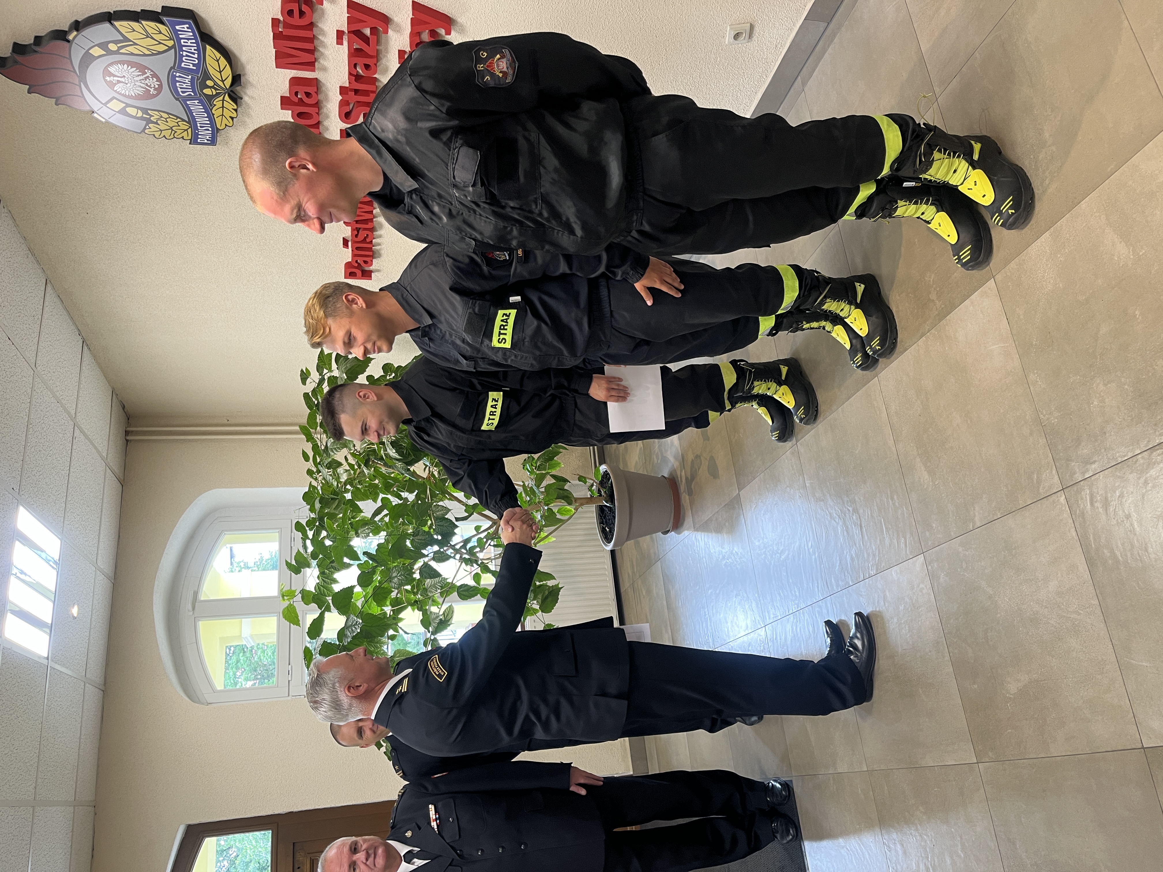 “Ja, obywatel Rzeczypospolitej Polskiej, świadom podejmowanych obowiązków strażaka, uroczyście ślubuję być ofiarnym i mężnym w ratowaniu zagrożonego życia ludzkiego i wszelkiego mienia – nawet z narażeniem życia. Wykonując powierzone mi zadania, ślubuję przestrzegać prawa, dyscypliny służbowej oraz wykonywać polecenia przełożonych. Ślubuję strzec tajemnic związanych ze służbą, a także honoru, godności i dobrego imienia służby oraz przestrzegać zasad etyki zawodowej”. Nowo przyjętym funkcjonariuszom gratulujemy i życzymy samych sukcesów zawodowych.