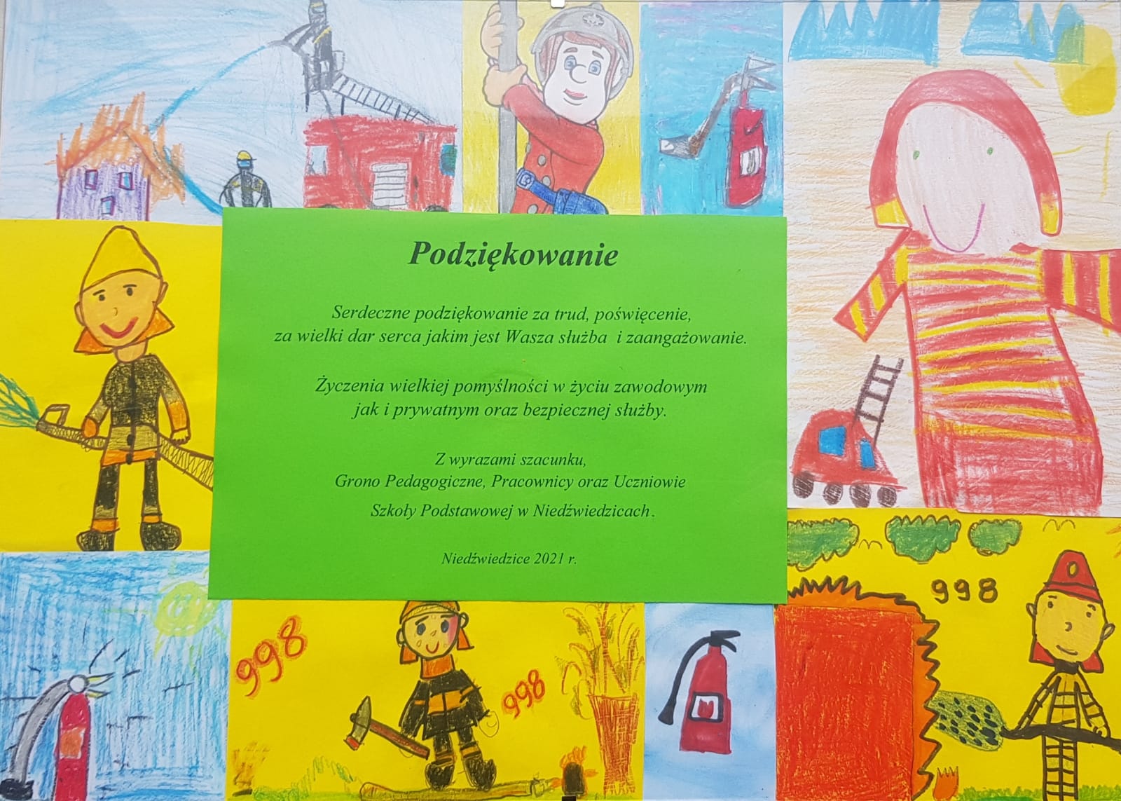 Podziękowania dla strażaków od uczniów i pracowników Szkoły Podstawowej w Niedźwiedzicach