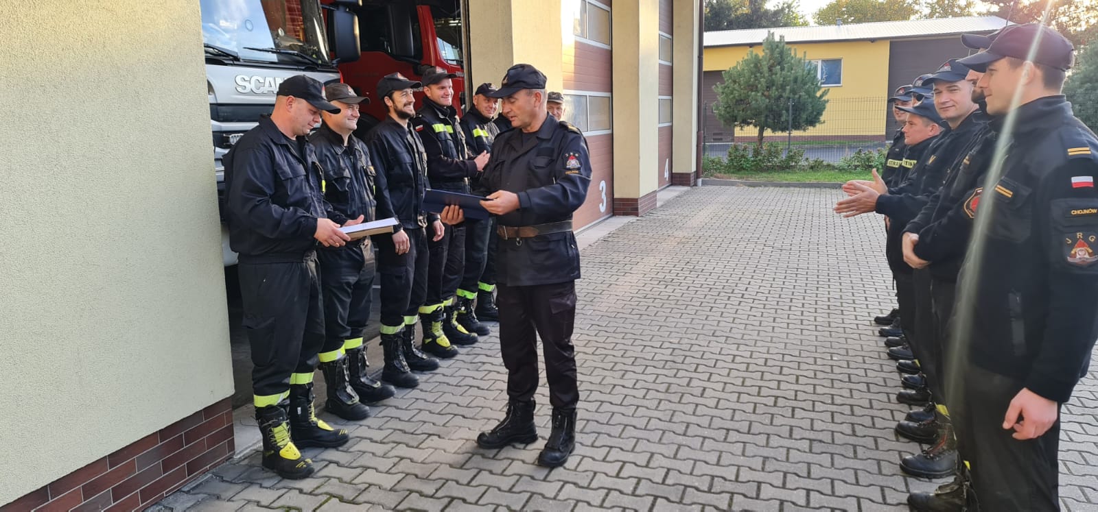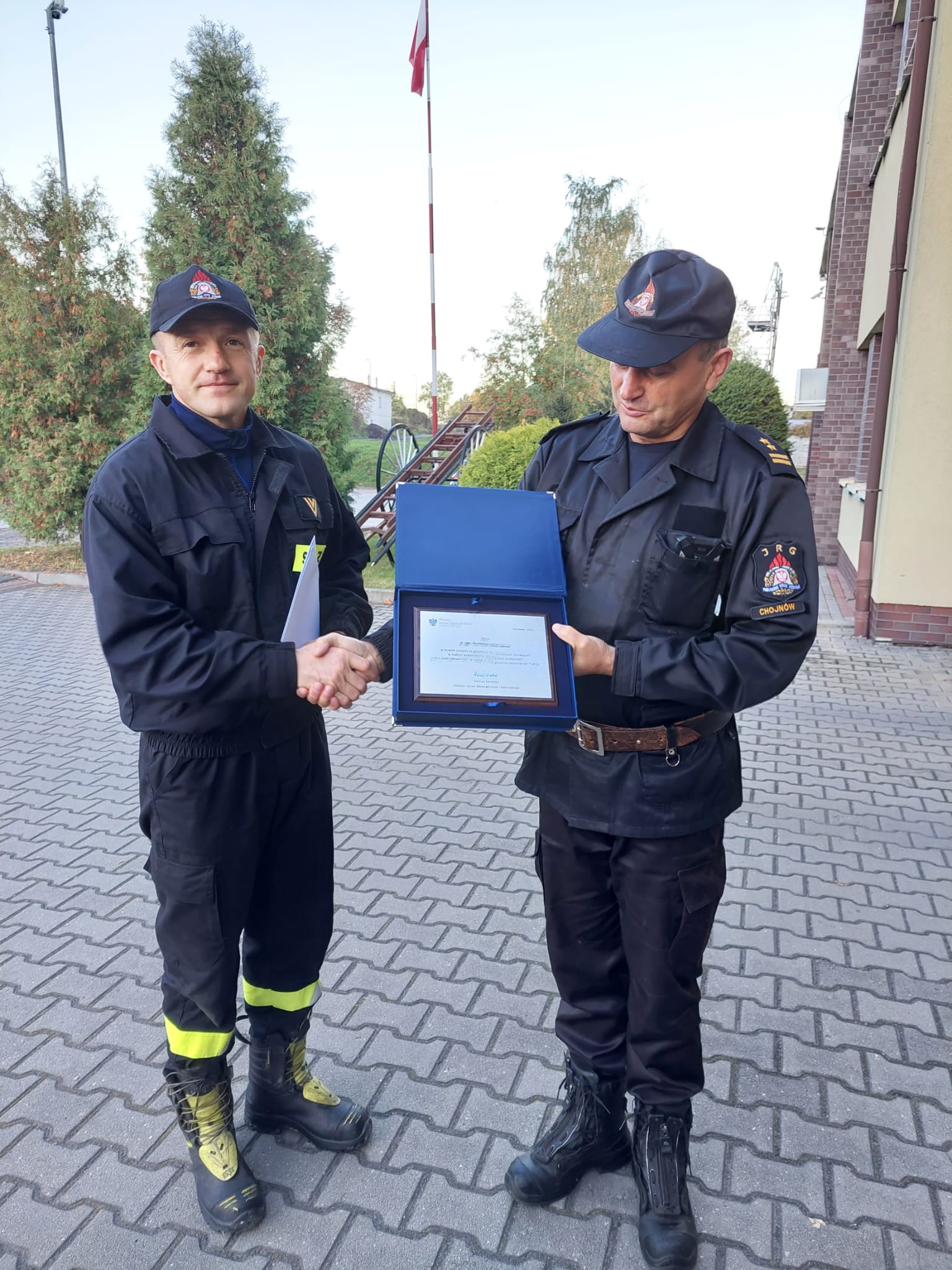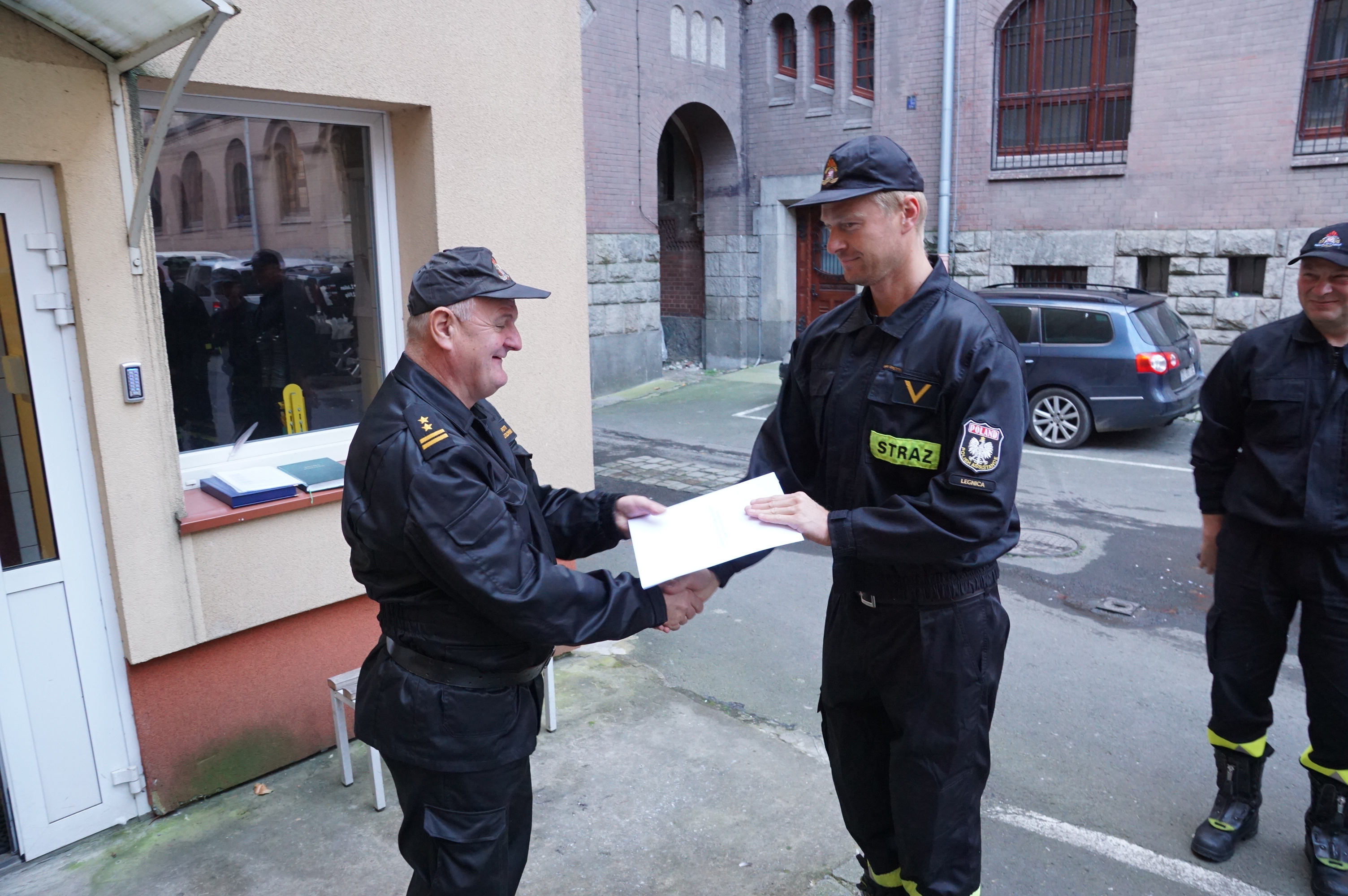 Funkcjonariusze Komendy Miejskiej Państwowej Straży Pożarnej w Legnicy otrzymali podziękowania od Ministra Spraw Wewnętrznych i Administracji Mariusza Kamińskiego za udział w misji gaszenia pożarów we Francji. Wśród wyróżnionych strażaków znaleźli się mł. bryg. Paweł Dąbrowa - Zastępca Dowódcy Jednostki Ratowniczo-Gaśniczej nr 3 w Chojnowie, który podziękowanie otrzymał z rąk Dolnośląskiego Komendanta Wojewódzkiego Państwowej Straży Pożarnej nadbryg. Marka Kamińskiego, a także mł. asp. Wojciech Hładuński, st. ogn. Daniel Główczyk z Jednostki Ratowniczo-Gaśniczej nr 3 w Chojnowie oraz ogn. Damian Węgłowski z Jednostki Ratowniczo-Gaśniczej nr 1 w Legnicy. Podziękowania zostały wręczone przez Dowódców Jednostek Ratowniczo-Gaśniczych w trakcie zmiany służbowej. Wyróżnionym strażakom serdecznie gratulujemy.