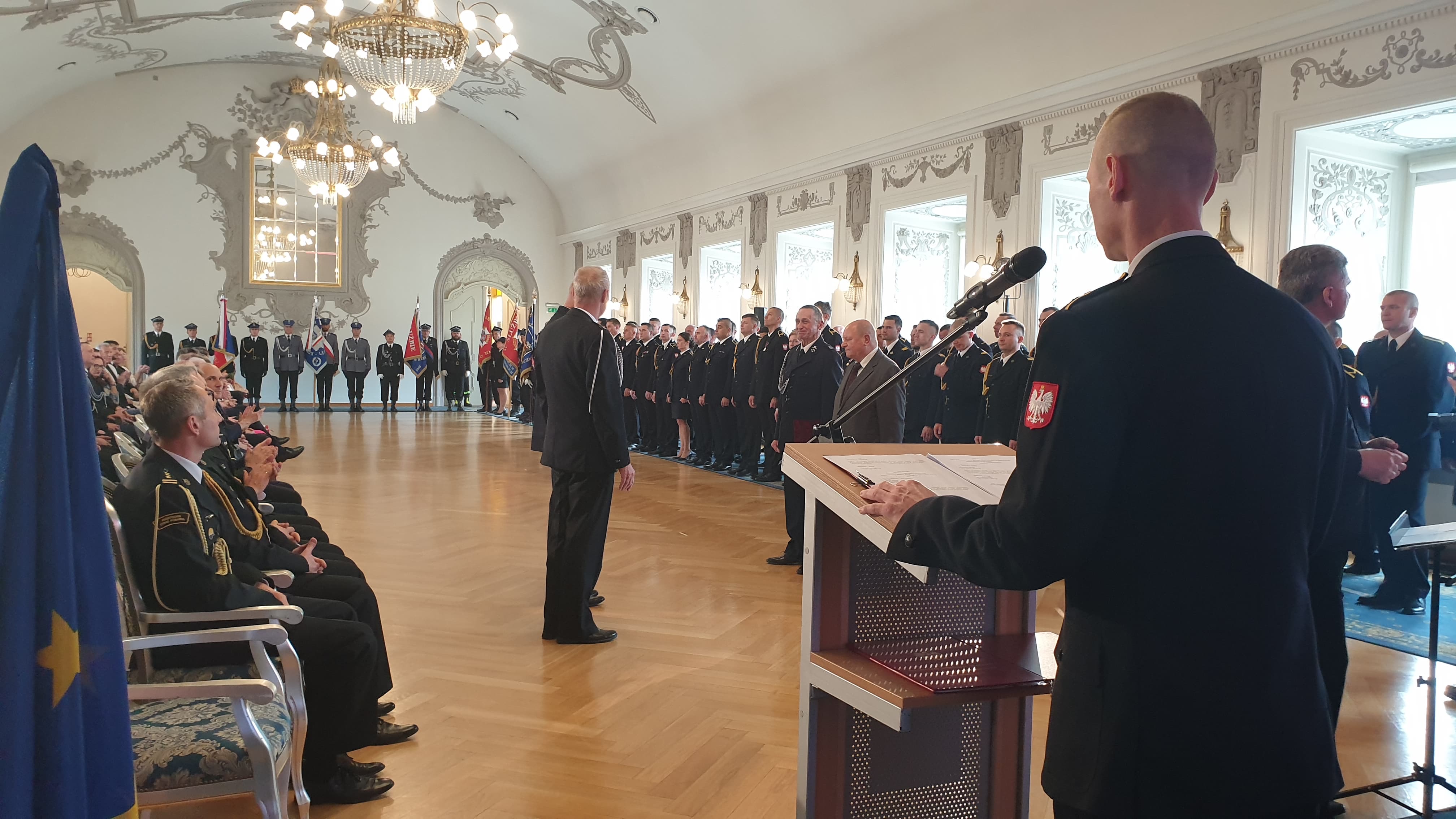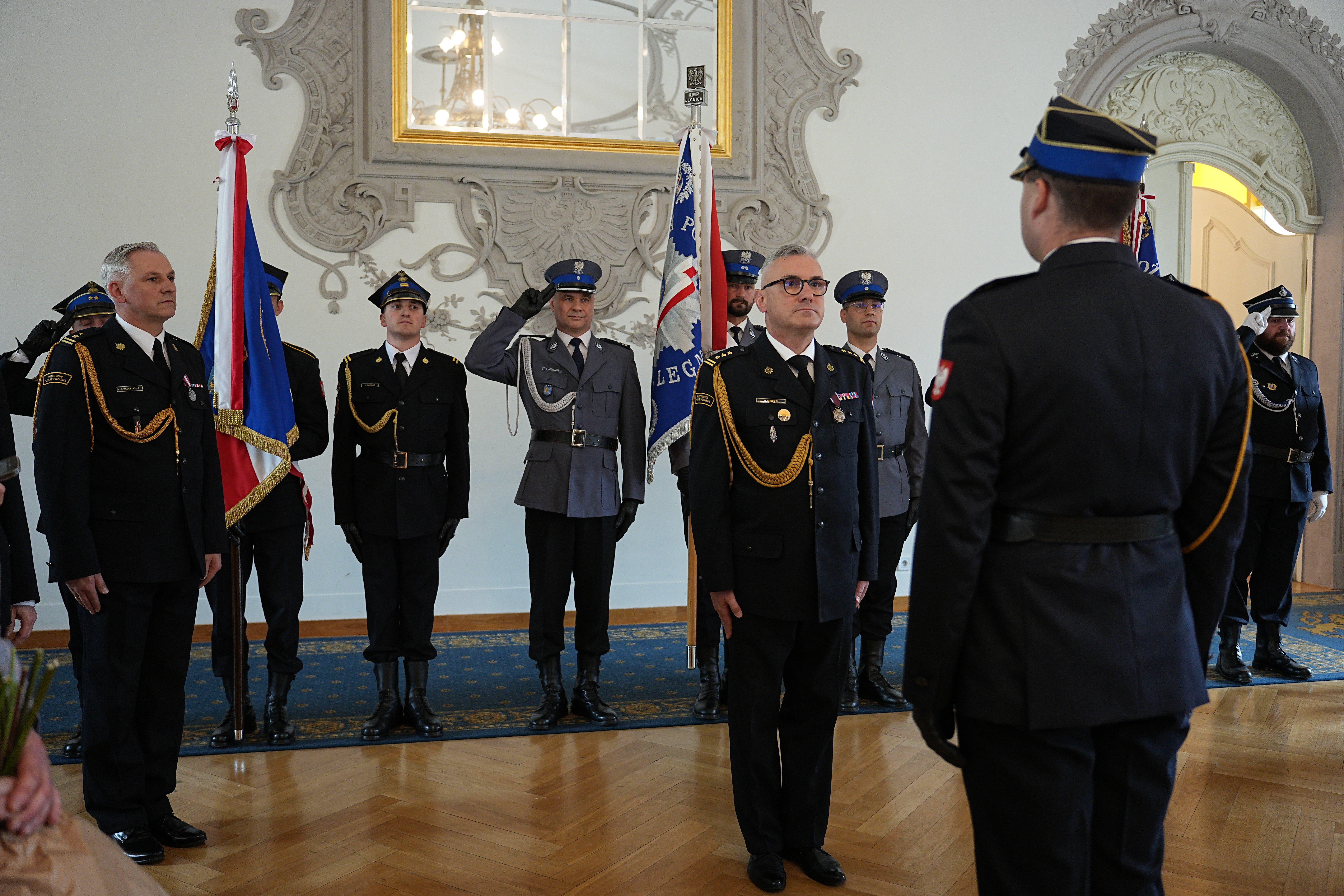 Uroczystość zakończyła się złożeniem meldunku przez kpt. Daniela Kosztyłę – dowódcę uroczystości st. bryg. Piotrowi Grzybowi – Zastępcy Dolnośląskiego Komendanta Państwowej Straży Pożarnej.