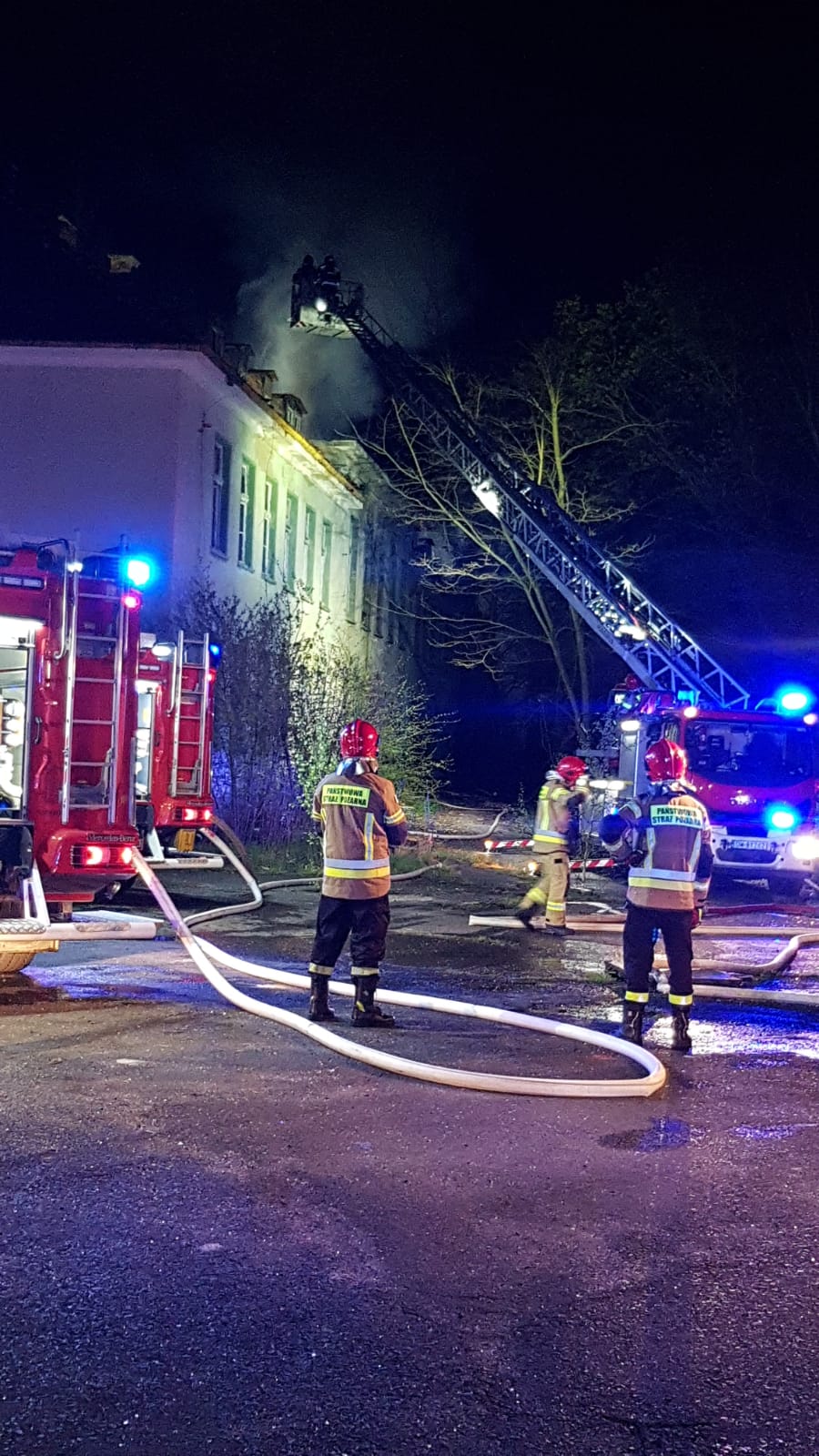 W dniu 3 maja 2021 r. w godzinach wieczornych do Stanowiska Kierowania Komendanta Miejskiego PSP w Legnicy wpłynęło zgłoszenie o pożarze dachu w jednym z buynków poradzieckiego kompleksu szpitalnego usytuowanego w Lasku Złotoryjskim. Do zdarzenia zadysponowano 3 zastępy z Jednostki Ratowniczo-Gaśniczej nr 1 w Legnicy. Dodatkowo do działań udały się dwa zastępy z Jednostki Ratowniczo-Gaśniczej nr 2, OSP Ulesie oraz Dowódca Grupy Operacyjnej Komendanta Miejskiego PSP w Legnicy. W wyniku pozaru spelaniu uległa znaczna część połaci dachowej budynku. W zdarzeniu nie było osób poszkodowanych. Działania gasnicze trwały 2 godz. 25 min.