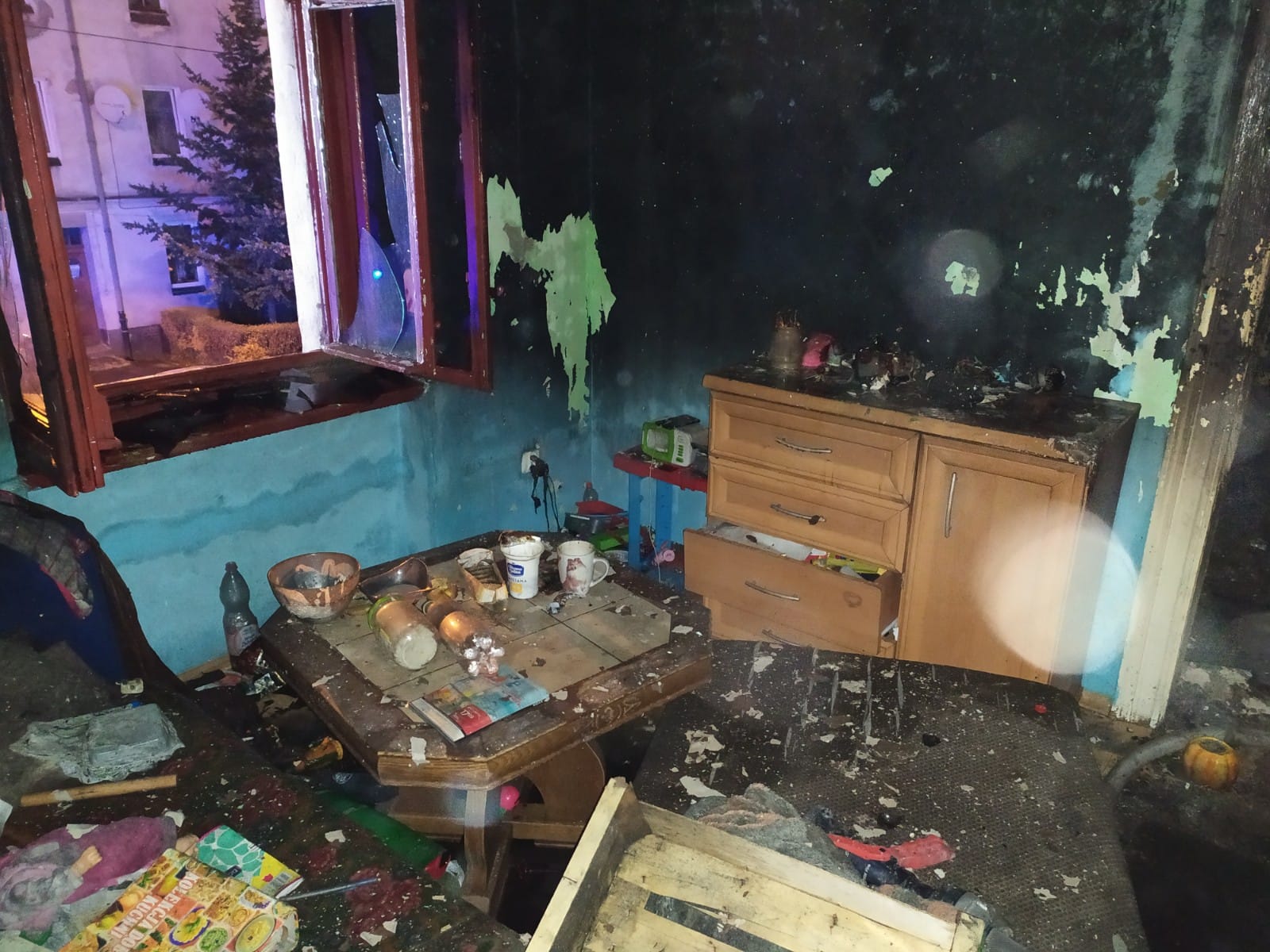 Pożar mieszkania w budynku wielorodzinnym przy ul. Kwiatowej 9 w Legnicy