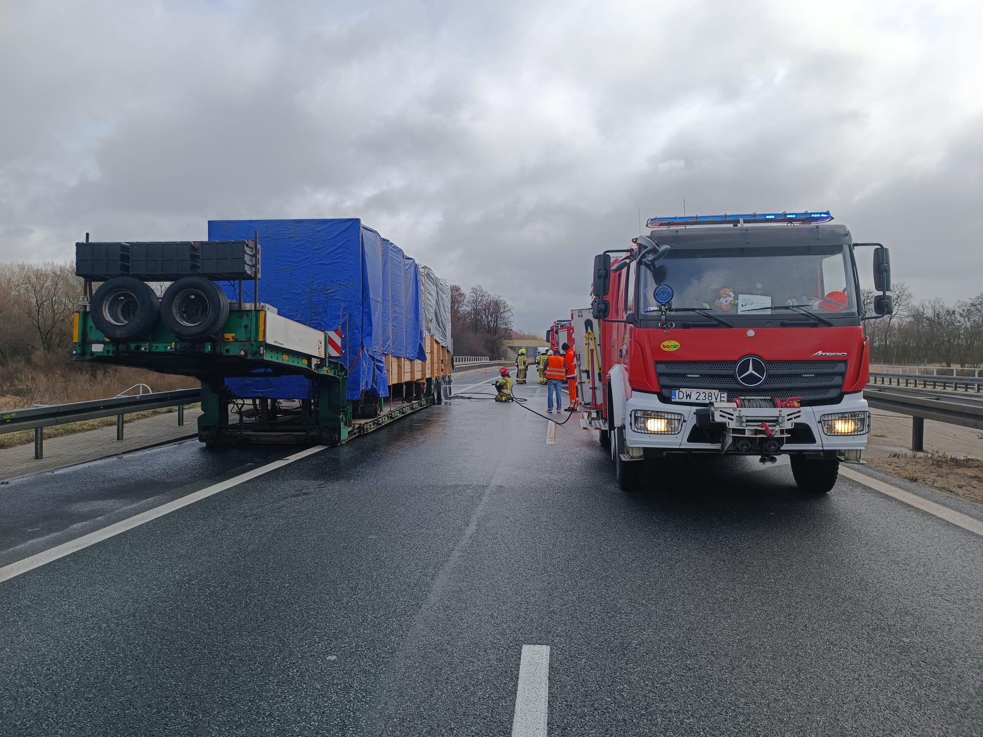 Pożar naczepy samochodu ciężarowego na 88 km autostrady A4