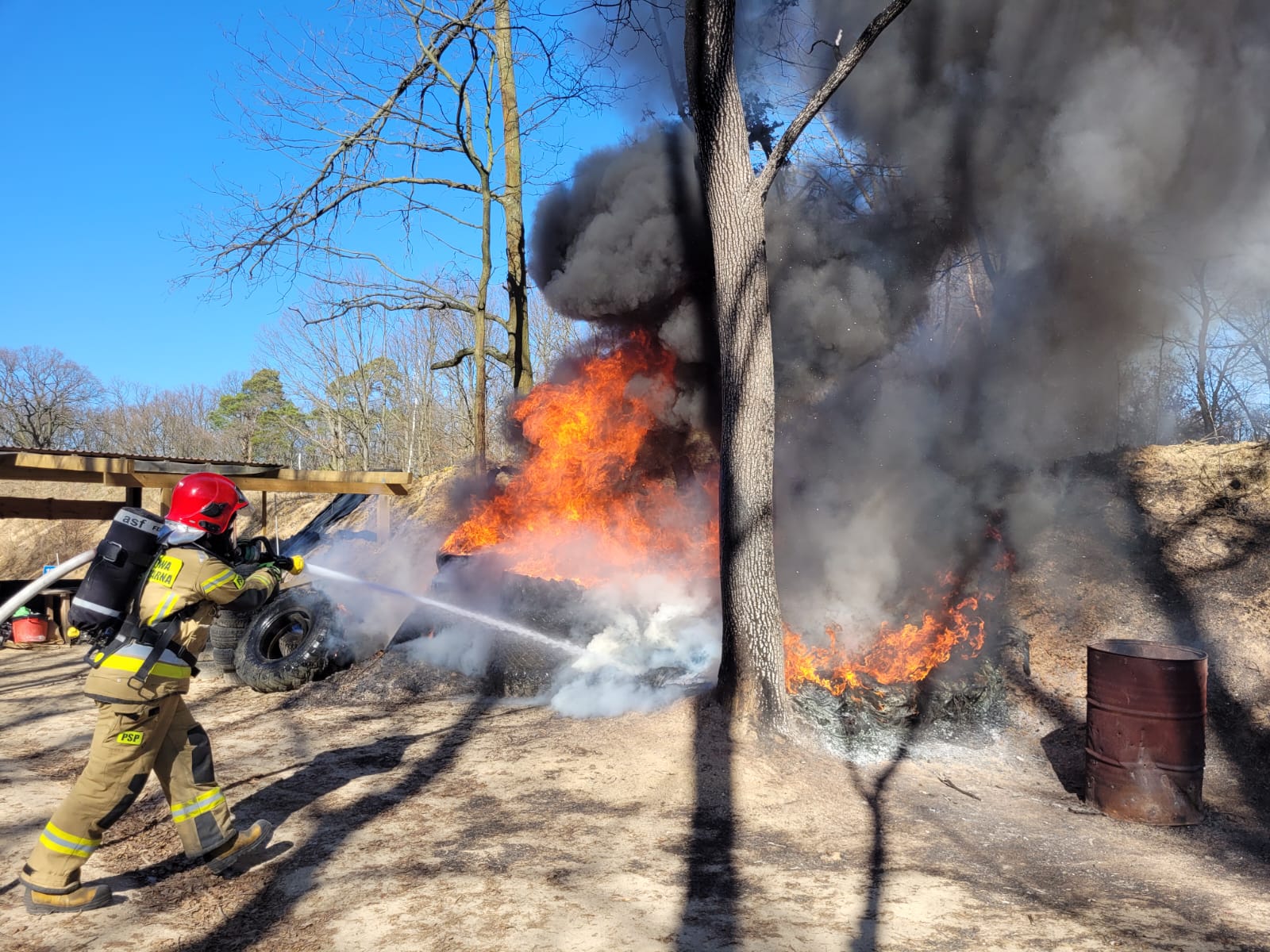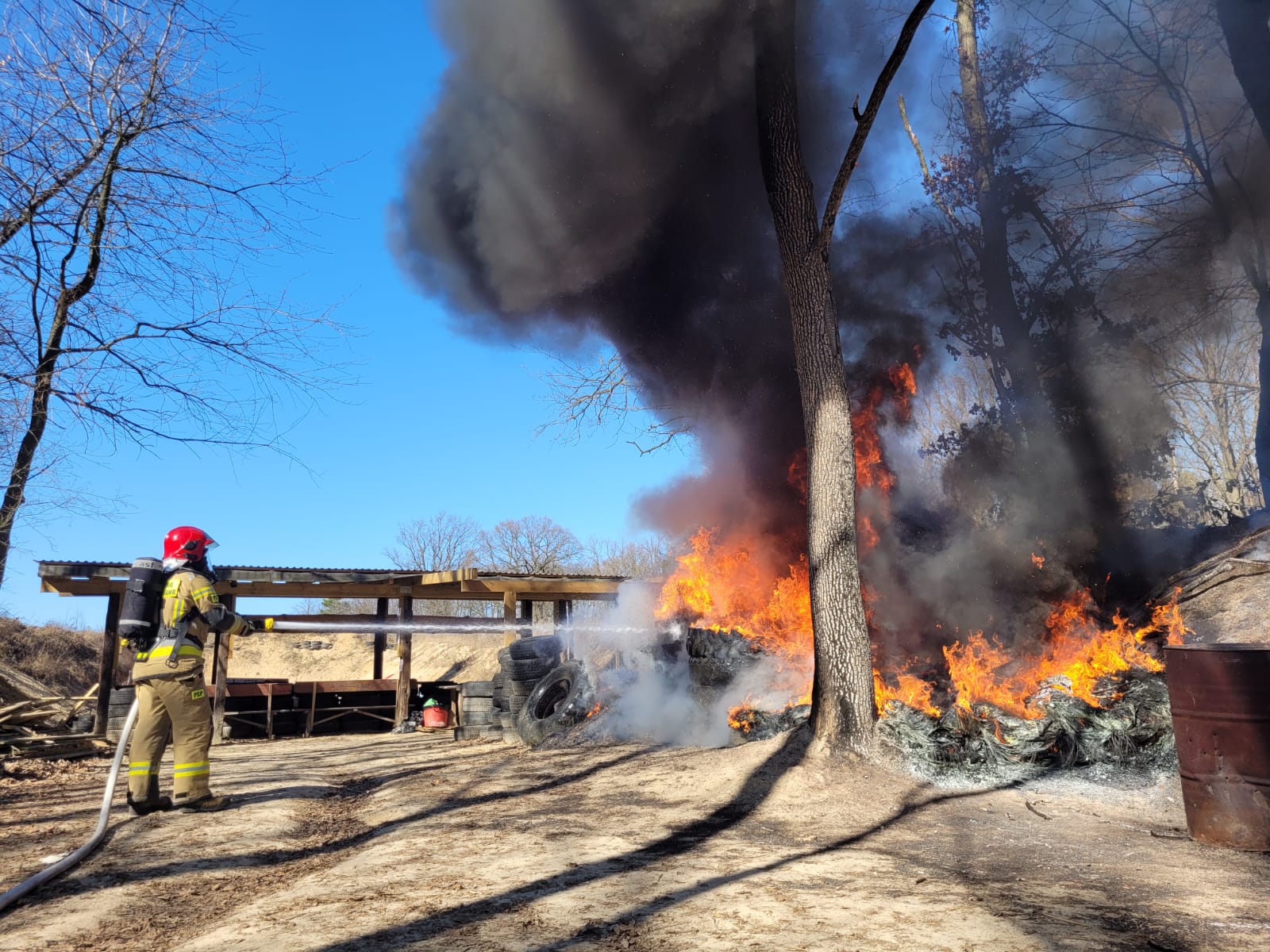 Pożar sterty opon w Jerzmanowicach