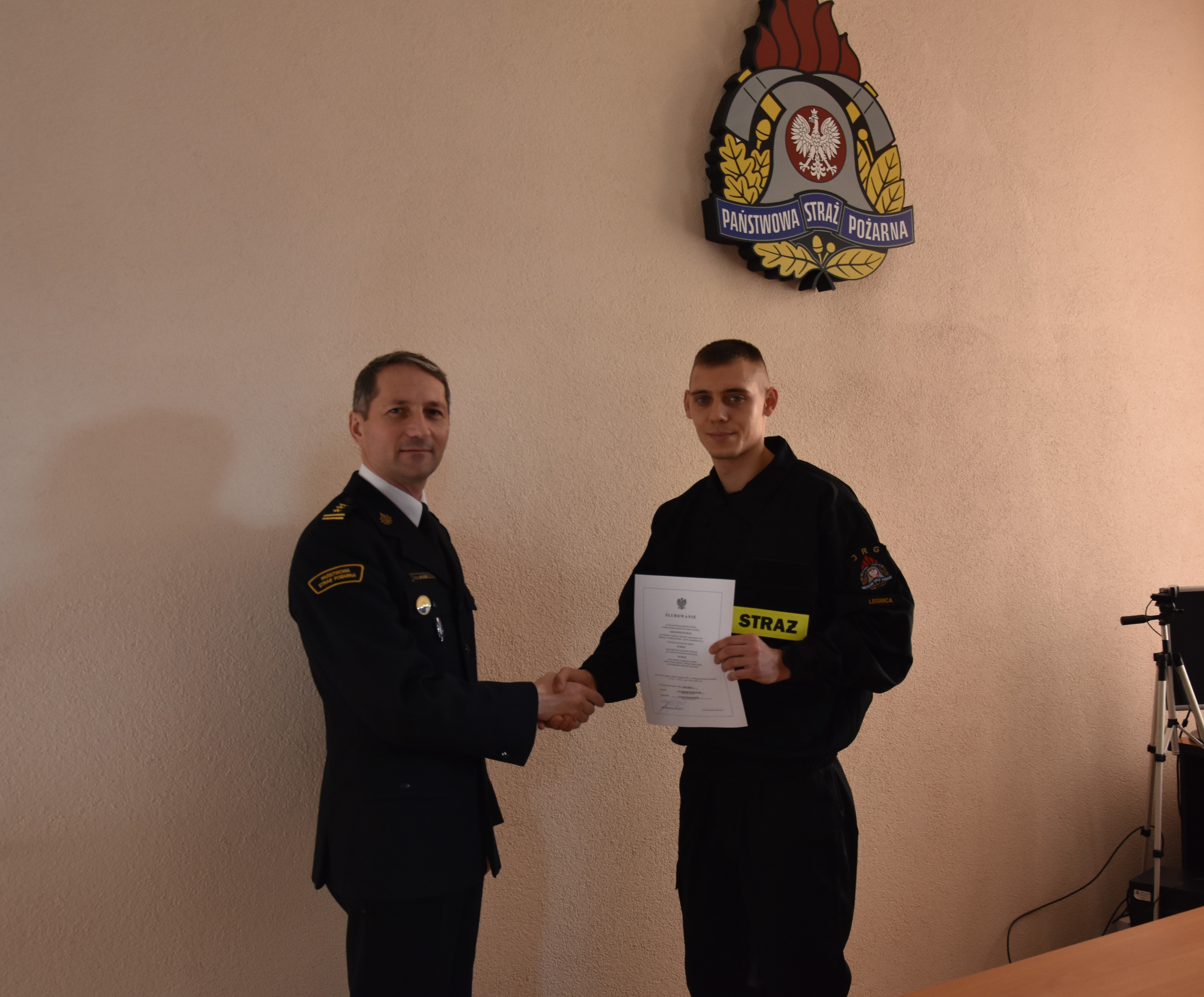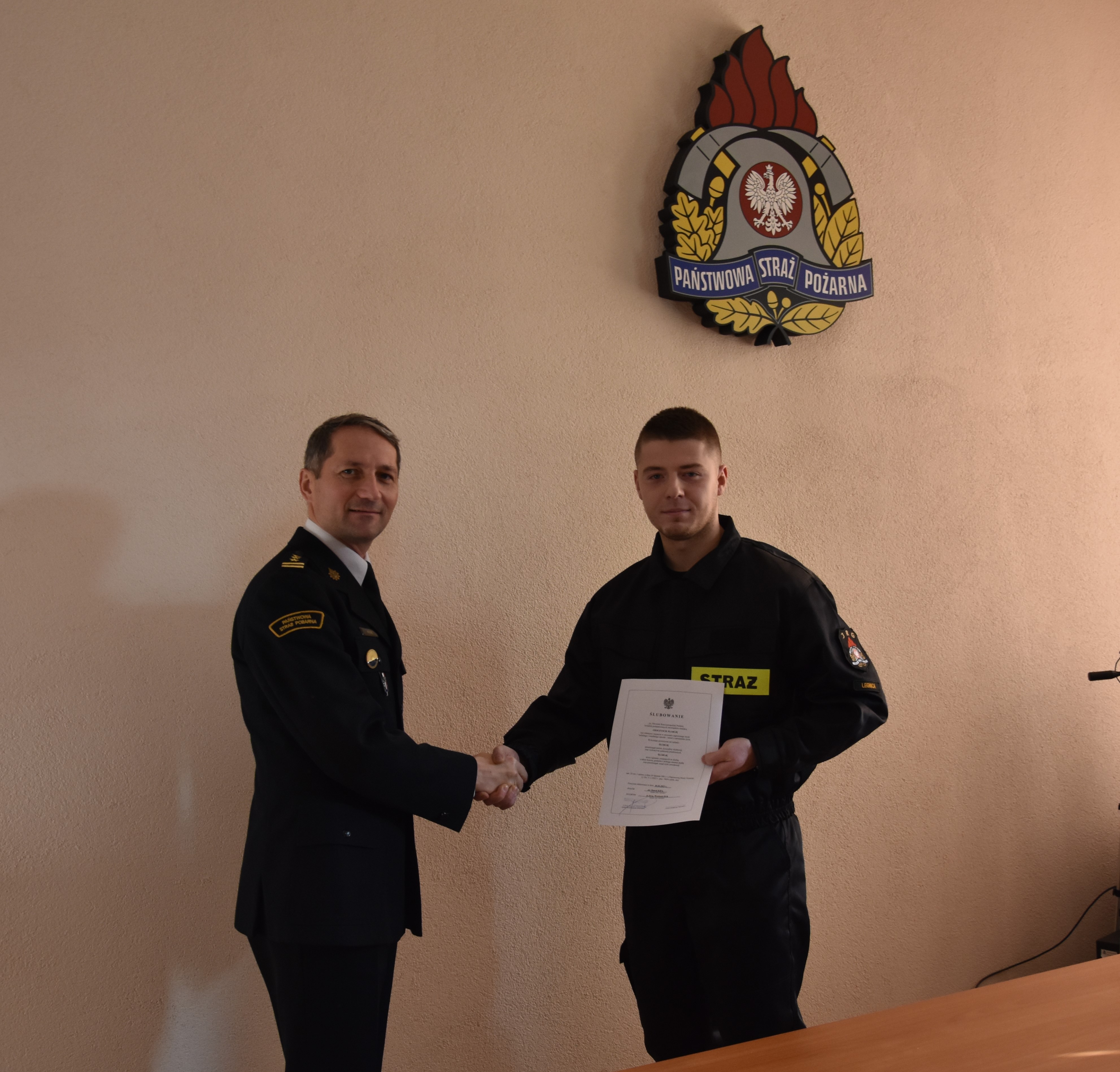 W dniu 2 stycznia 2023 r. odbyła się uroczystość ślubowania dwóch nowo przyjętych do służby strażaków, którzy pomyślnie przeszli wieloetapowy proces rekrutacji do służby przygotowawczej w Komendzie Miejskiej PSP w Legnicy. Ślubowanie przyjął Komendant Miejski Państwowej Straży Pożarnej w Legnicy – st. bryg. Wojciech Huk w obecności Zastępcy Komendanta Miejskiego Państwowej Straży Pożarnej w Legnicy - mł. bryg. Marcina Swenderskiego oraz kadry dowódczej – Dowódcy JRG nr 2 mł. bryg. Roberta Jorgasa oraz Zastępcy Dowódcy JRG nr 2 mł. bryg. Jacka Terpiłowskiego.