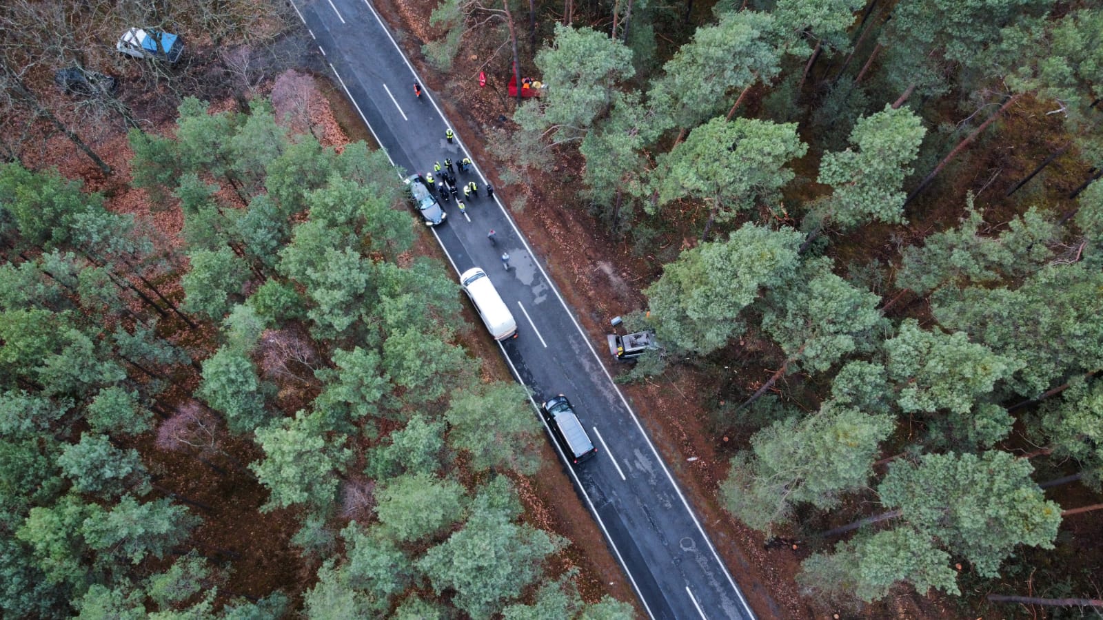 22 listopada 2021 r. dwóch funkcjonariuszy z Komendy Miejskiej Państwowej Straży Pożarnej w Legnicy udało się do powiatu polkowickiego, aby wspomóc działania Policji w poszukiwaniu sprawcy kradzieży pojazdu i potrącenia ze skutiem śmiertelnym kierującego ruchem drogowym w miejscu prowadzonych prac remontowych. Poszukiwany porzucił samochód na drodze DW331 z Polkowic do Chocianowa. Działania polegały na przeszukiwaniu terenu lasu przy użyciu drona.