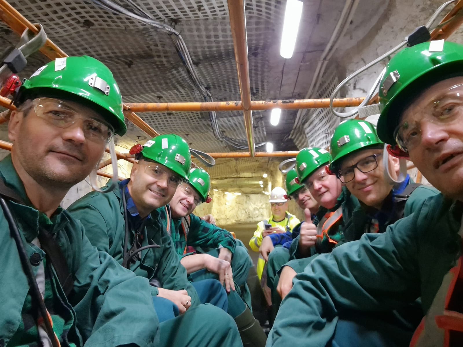 Dzięki uprzejmości Pana Adriana Wójcika z kopalni KGHM Rudna w dniu 3 listopada 2023 r. funkcjonariusze z KM PSP w Legnicy mieli możliwość zapoznać się z ciężką i bardzo wymagającą pracą górników zagłębia miedziowego. Trzeba przyznać, że praca górnika podobnie jak funkcjonariusza straży pożarnej wymaga odwagi oraz bardzo dobrego przygotowania fizycznego. Górnicy doświadczają prawdziwie ekstremalnych warunków już sam zjazd 1 km pod ziemię do przyjemnych nie należy. Jest ciasno, a ciśnienie zatyka uszy. Dojście do stanowiska pracy w temperaturze znacznie powyżej 30 st. C. powoduje że po kilku minutach „leje się z nas pot strugami”. Dodać należy, że oddychanie w tych warunkach również nie jest łatwe. Już niedługo, bo 4 grudnia przypada Barbórka, tradycyjne święto górników. Z tej okazji życzymy wszystkim górnikom oraz ich rodziną wszelkiej pomyślności oraz wytrwałości w ciężkiej i niebezpiecznej pracy.