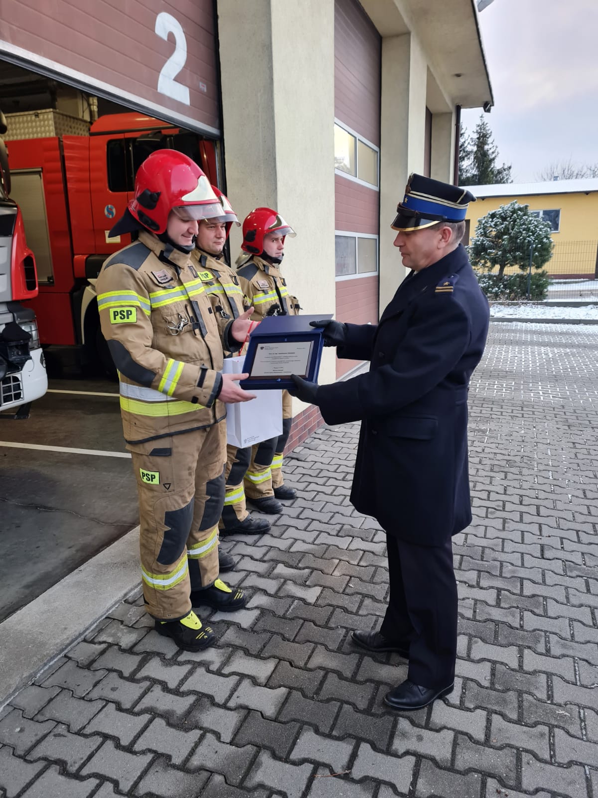 W dniu 20 grudnia na terenie Jednostki Ratowniczo-Gaśniczej nr 3 w Chojnowie miało miejsce uroczyste wręczenie podziękowań Ministra Spraw Wewnętrznych i Administracji Mariusza Kamińskiego dla strażaków, którzy walczyli z pożarami, mającymi miejsce w Grecji latem 2021 r. Wręczenia upominków dokonał Dowódca Jednostki Ratowniczo-Gasniczej nr 3 w Chojnowie mł. bryg. Ryszard Kawka.