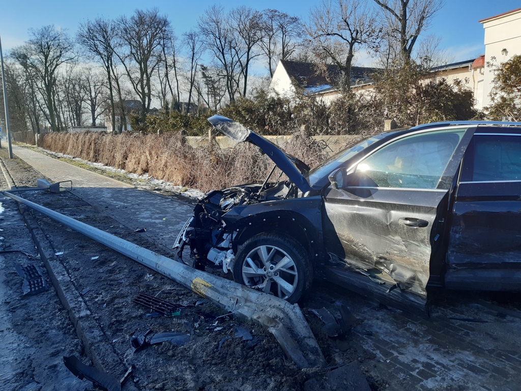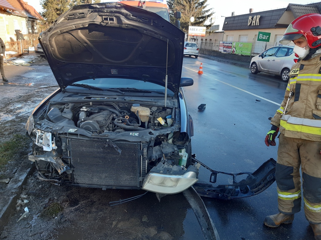 W dniu 3 lutego 2021 r. o godzinie 9.49 Stanowisko Kierowania Komendanta Miejskiego Państwowej Straży Pożarnej w Legnicy,przyjęło zgłoszenie z WCPR we Wrocławiu o zderzeniu dwóch samochodów osobowych. Dyżurny Operacyjny zadysponował zastępy z Jednostki Ratowniczo Gaśniczejnr 2w Legnicy. Po przybyciu na miejsce zdarzenia stwierdzono, że pojazdami podróżowalitylko kierujący.W wyniku zderzenia całkowitemu uszkodzeniu uległa latarnia uliczna. Poszkodowana kobieta z samochodu marki Skoda Kodiak znajdowała się wewnątrz pojazdu. Natomiast kierowca samochodu marki VW Passatbył poza pojazdem i nie został poszkodowany. Działania zastępów JOP polegały na zabezpieczeniu miejsca zdarzenia, pomocy ratownikom medycznym w ewakuacji poszkodowanej z pojazdu, odłączeniu instalacji elektrycznej pojazdów od zasilania, sprawdzeniu uszkodzonej latarni ulicznej detektorem napięcia w celu wykluczenia obecności prądu elektrycznego. Następnie w celu ograniczenia rozprzestrzeniania się po jezdni płynów eksploatacyjnych z uszkodzonych samochodów, wyciek posypano sorbentem.Po przybyciu Zarządcy drogi oraz Pogotowia energetycznego pisemnie przekazano miejsca zdarzenia. Działania trwały łącznie 1 godz. 52 min.