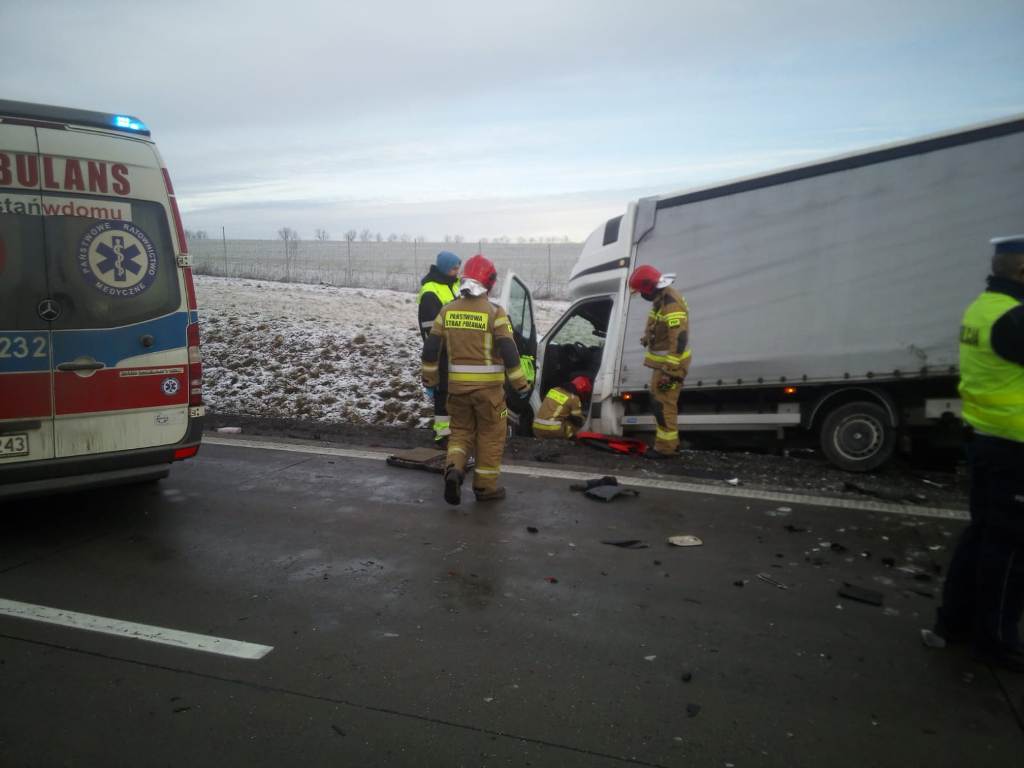 W dniu 29 stycznia 2021 o godzinie 09:18 Stanowisko Komendanta Miejskiego Państwowej Straży Pożarnej w Legnicy otrzymało zgłoszenie z Centrum Powiadamiania Ratunkowego o wypadku drogowym mającym miejsce na 86 km autostrady A4. Do zdarzenia zadysponowano dwa zastępy z Jednostki Ratowniczo-Gaśniczej nr 1 w Legnicy. Z uwagi na charakter zdarzenia na miejsce wypadku udał się także Dowódca Jednostki Ratowniczo – Gaśniczej nr 1 w Legnicy. Po przybyciu na miejsce zdarzenia na miejscu obecny był patrol Policji. Kierujący działaniem ratowniczym potwierdził, że w wypadku uczestniczyły dwa pojazdy, samochód marki VW Transporter oraz samochód dostawczy marki Renault Master. Samochodami podróżowały łącznie 3 osoby, które same opuściły pojazdy przed przybyciem służb. Osobom uczestniczącym w wypadku została udzielona kwalifikowana pierwsza pomoc, po czym zostały przekazane przybyłym na miejsce zdarzenia zespołom ratownictwa medycznego. Działania straży polegały na zabezpieczeniu miejsca zdarzenia, odłączeniu zasilania w pojazdach. Miejsce działań przekazano przedstawicielowi zarządcy drogi.