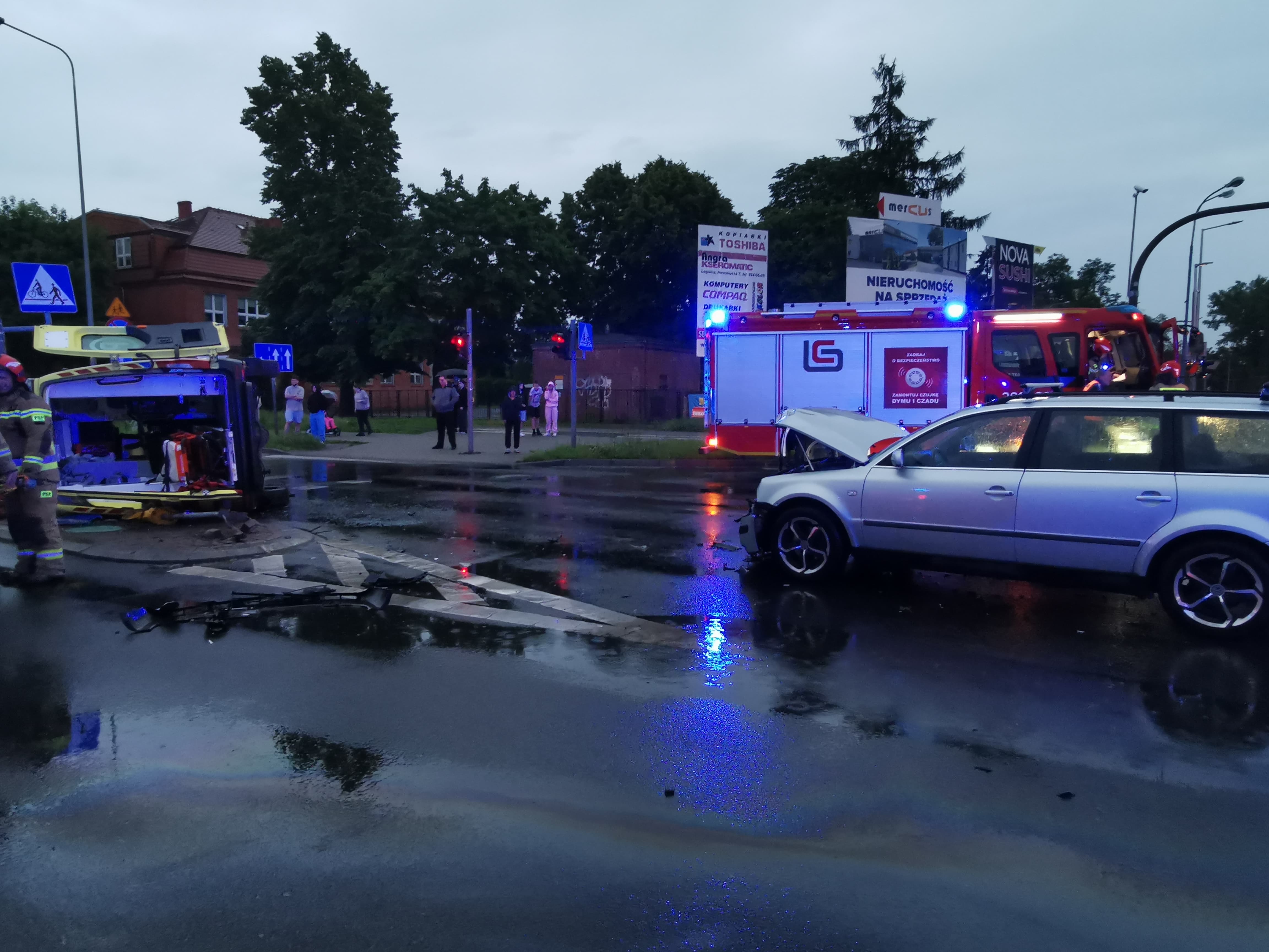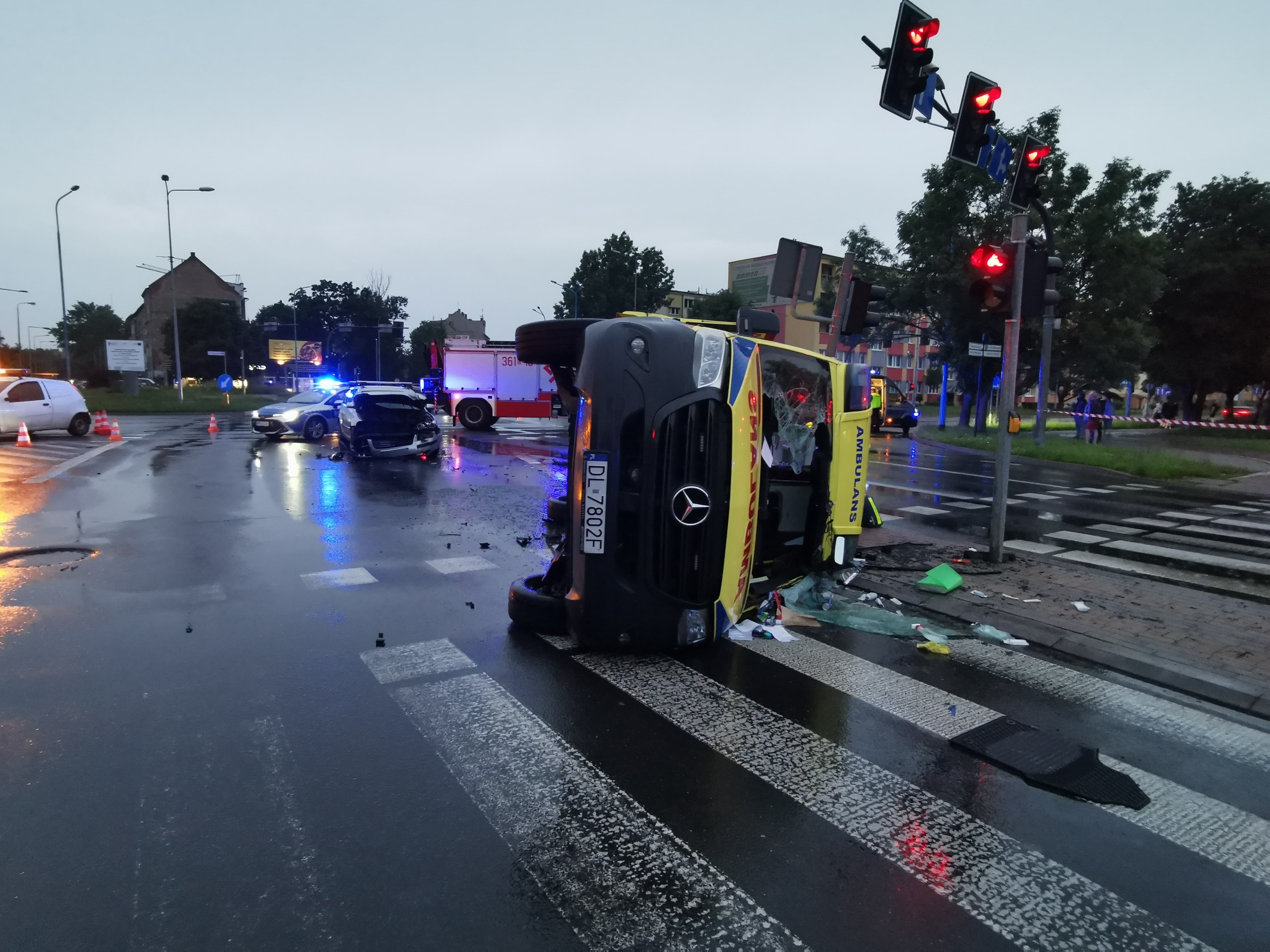 Wieczorem 10 czerwca 2025 r. o godzinie 20:47 do Stanowiska Kierowania Komendanta Miejskiego PSP w Legnicy wpłynęło zgłoszenie o zdarzeniu drogowym z udziałem Zespołu Ratownictwa Medycznego. Na miejsce została zadysponowana Jednostka Ratowniczo-Gaśnicza nr 2 w sile dwóch zastępów oraz Jednostka Ratowniczo-Gaśnicza nr 1 również w sile dwóch zastępów. Na miejscu zdarzenia ustalono, że samochód osobowy uderzył w Karetkę przewożącą pacjentkę, doprowadzając do jej przewrócenia. Działania polegały na zabezpieczeniu miejsca zdarzenia, odłączeniu zasilania w pojazdach oraz pomocy w ewakuacji poszkodowanej. Skrzyżowanie zostało całkowicie zamknięte na czas dzialań ratowniczych oraz czynności prowadzonych przez Policję.