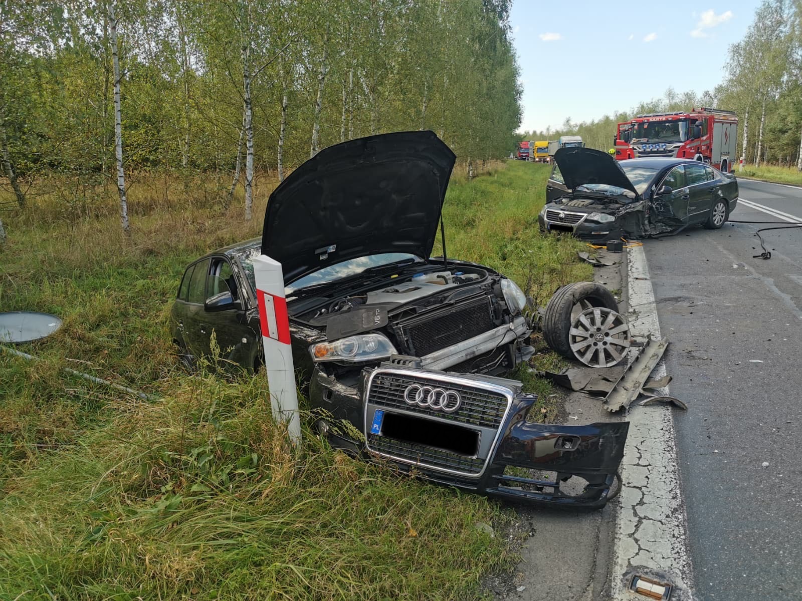 Po przybyciu pierwszych zastępów stwierdzono, że jeden z pojazdów znajduje się w przydrożnym rowie, natomiast drugi pozostał na jezdni, blokując jeden pas ruchu. Kierowca jednego z aut nie odniósł żadnych obrażeń. Kierowca oraz pasażer drugiego pojazdu oddalili się z miejsca zdarzenia przed przybyciem służb.