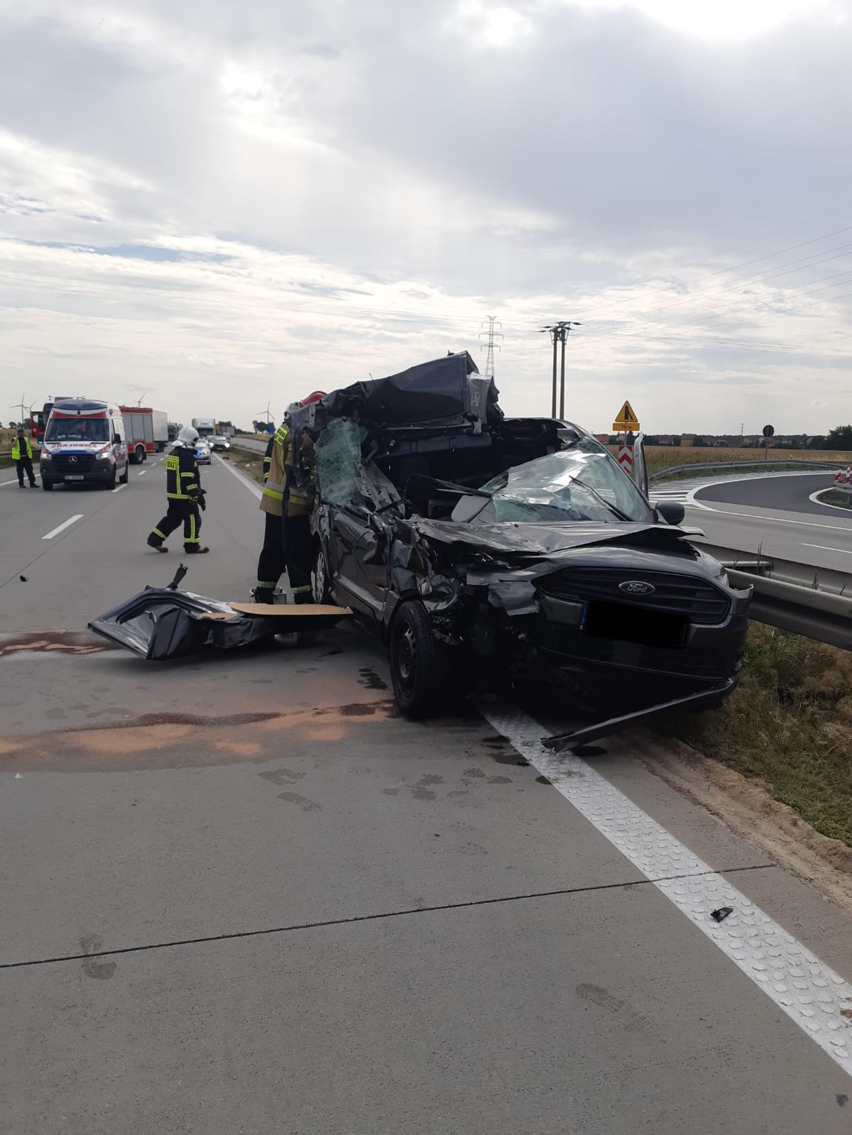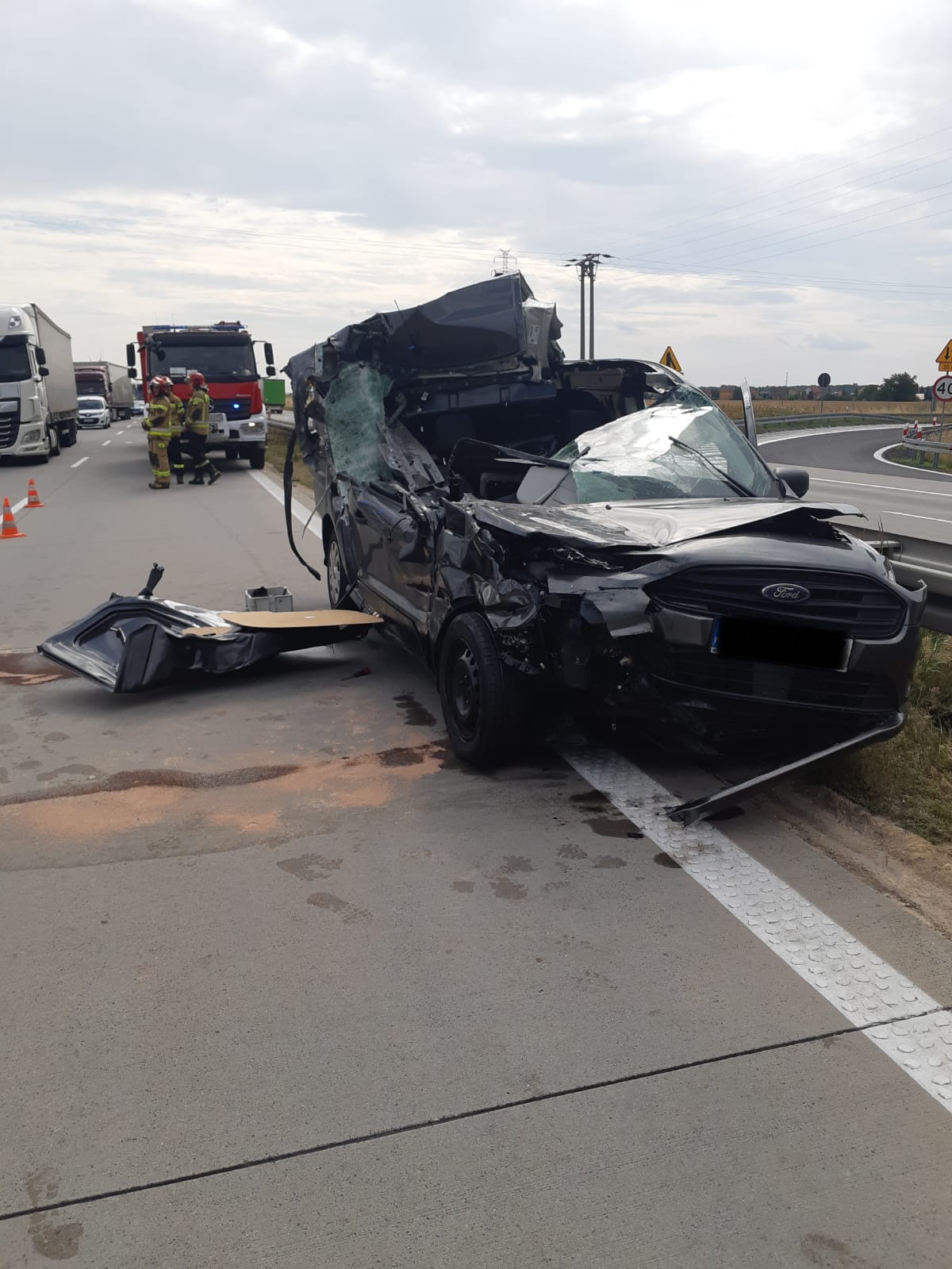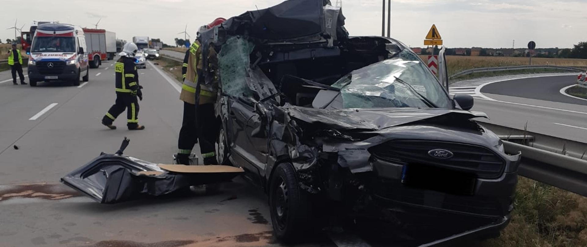 Zderzenie samochodu osobowego z ciężarowym na 97 km autostrady A4