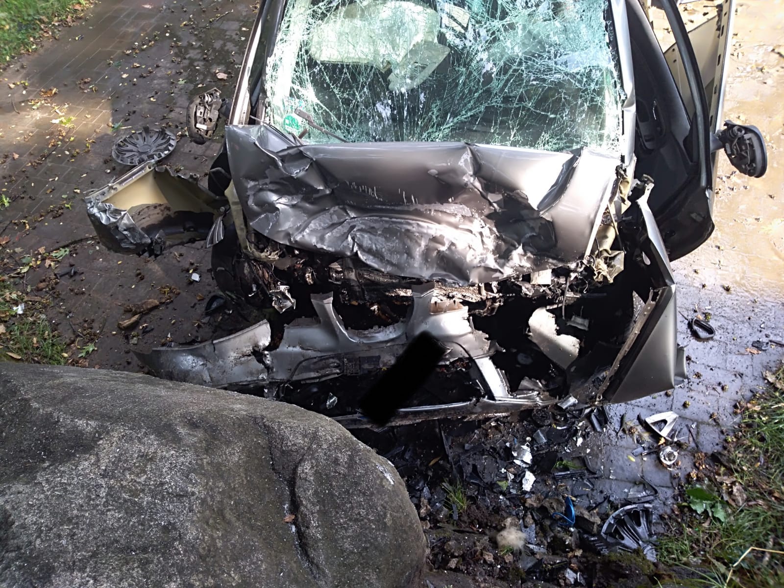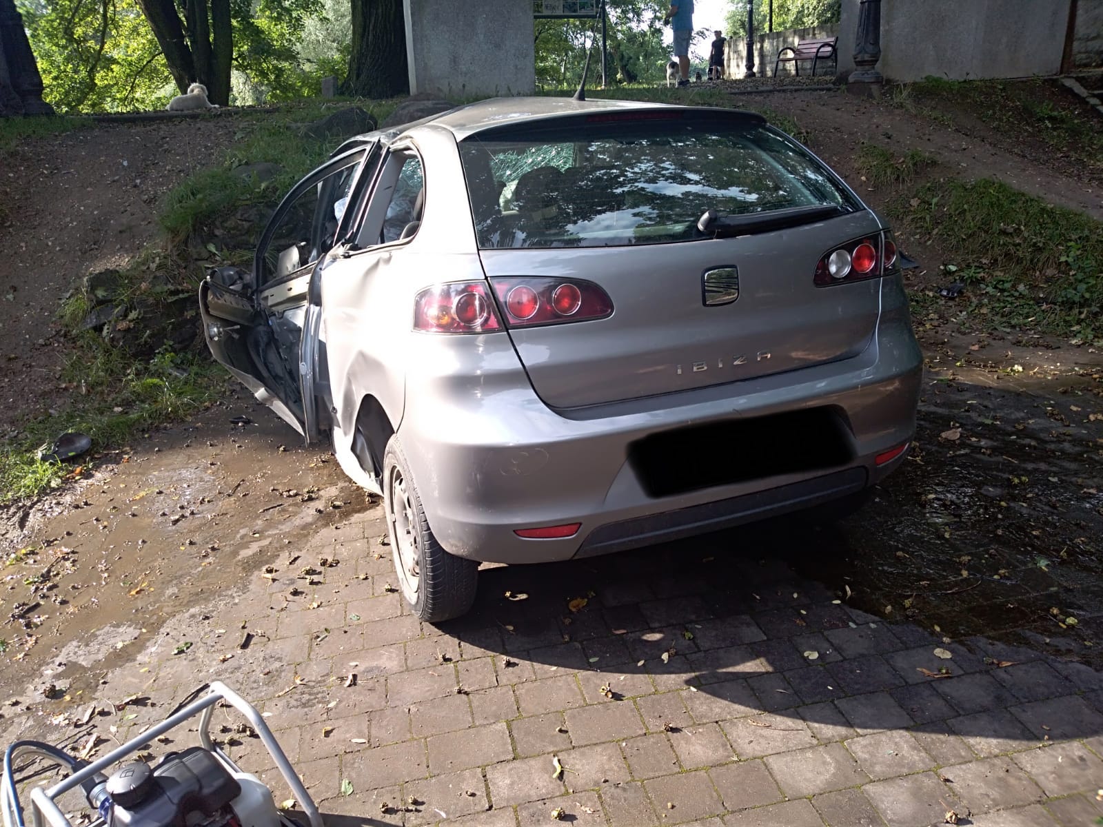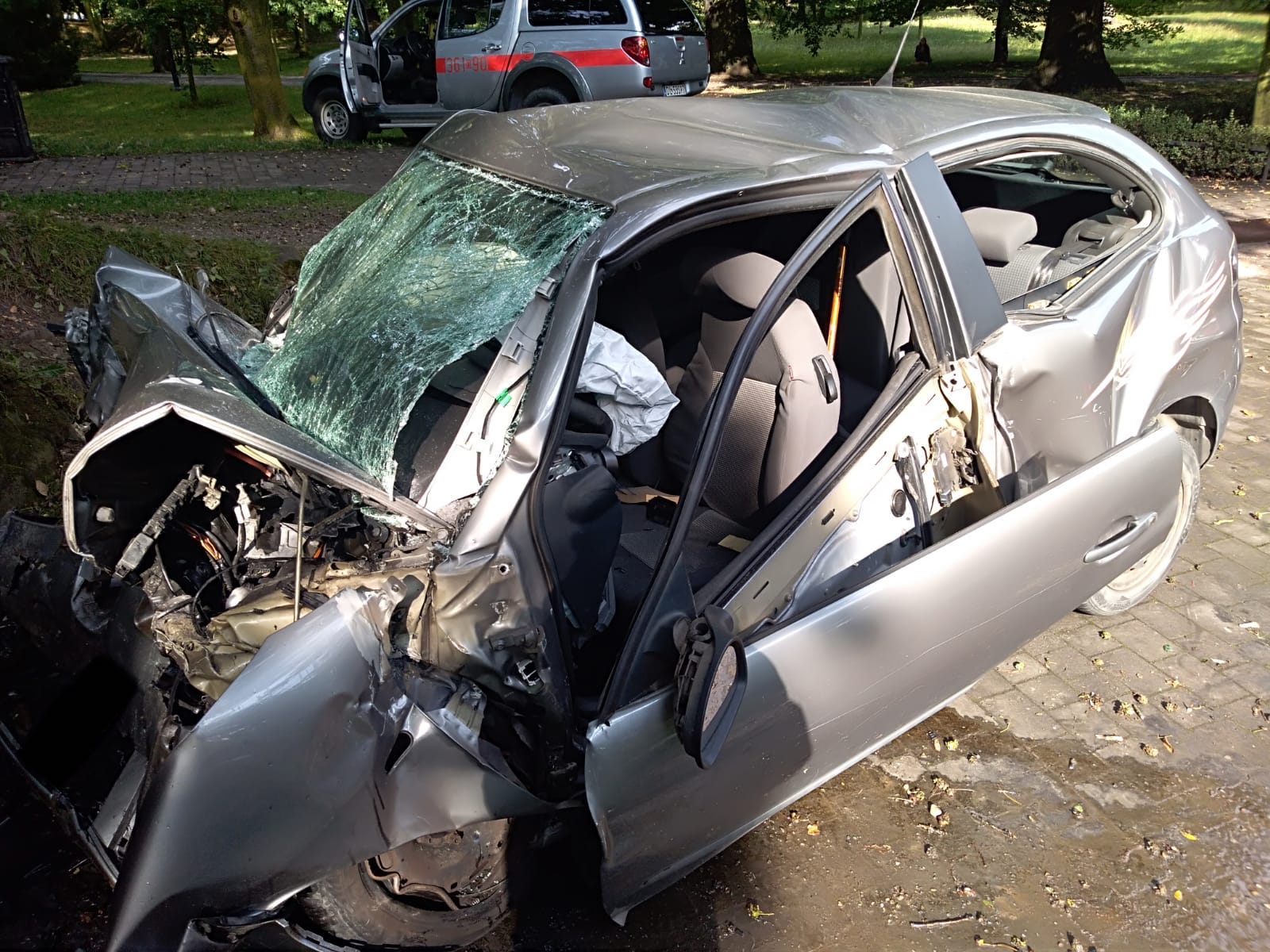 Zderzenie samochodu osobowego z murem w parku legnickim