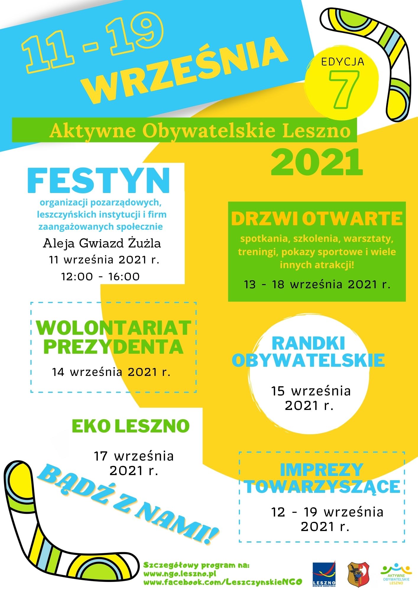 Wrzesień będzie miesiącem aktywności wypełnionym m.in. ciekawymi spotkaniami, warsztatami, piknikami. Jednym z wydarzeń podczas akcji będzie Festyn Organizacji Pozarządowych i leszczyńskich instytucji oraz firm zaangażowanych społecznie, który zaplanowany został na dzień 11 września.