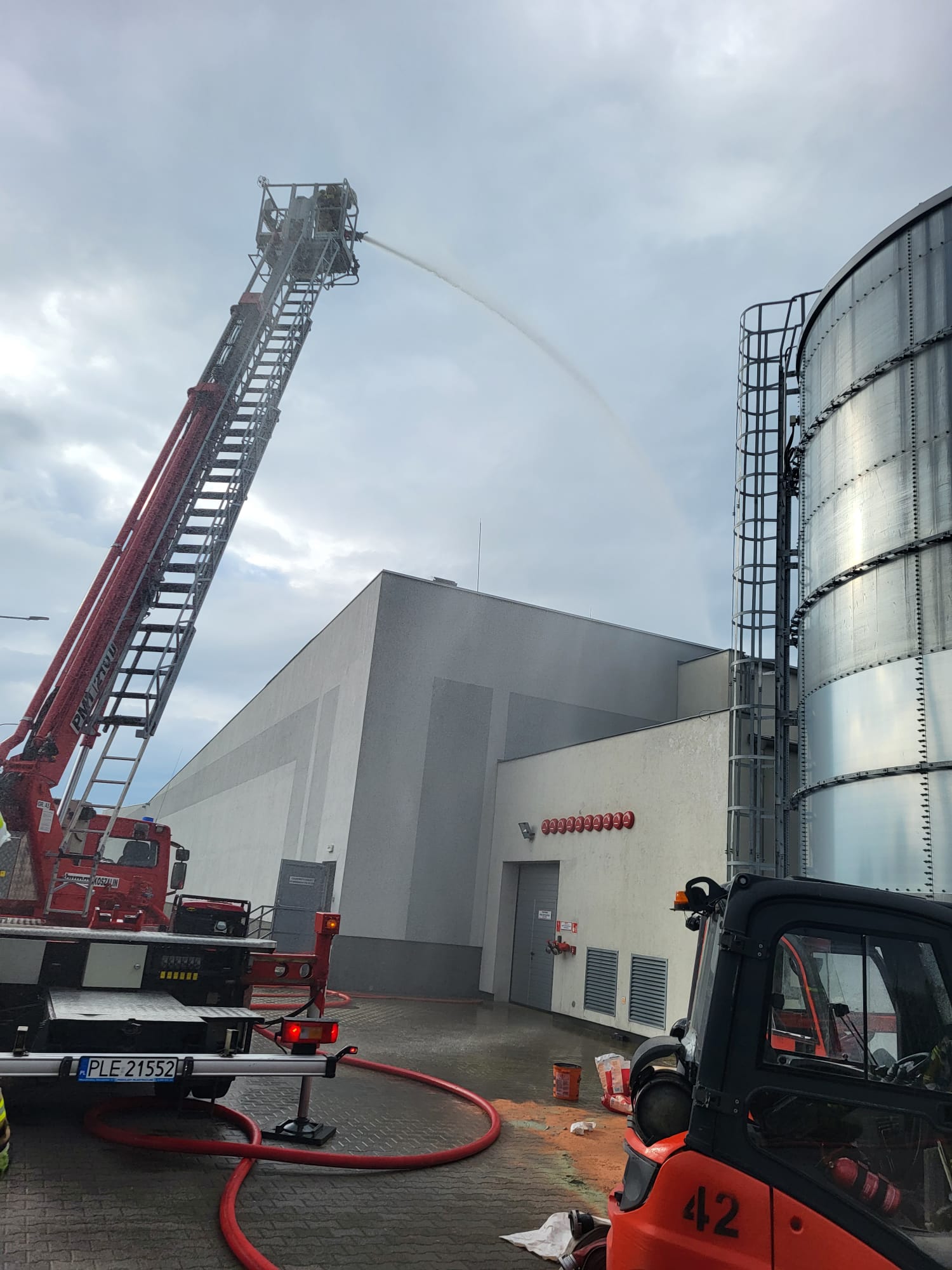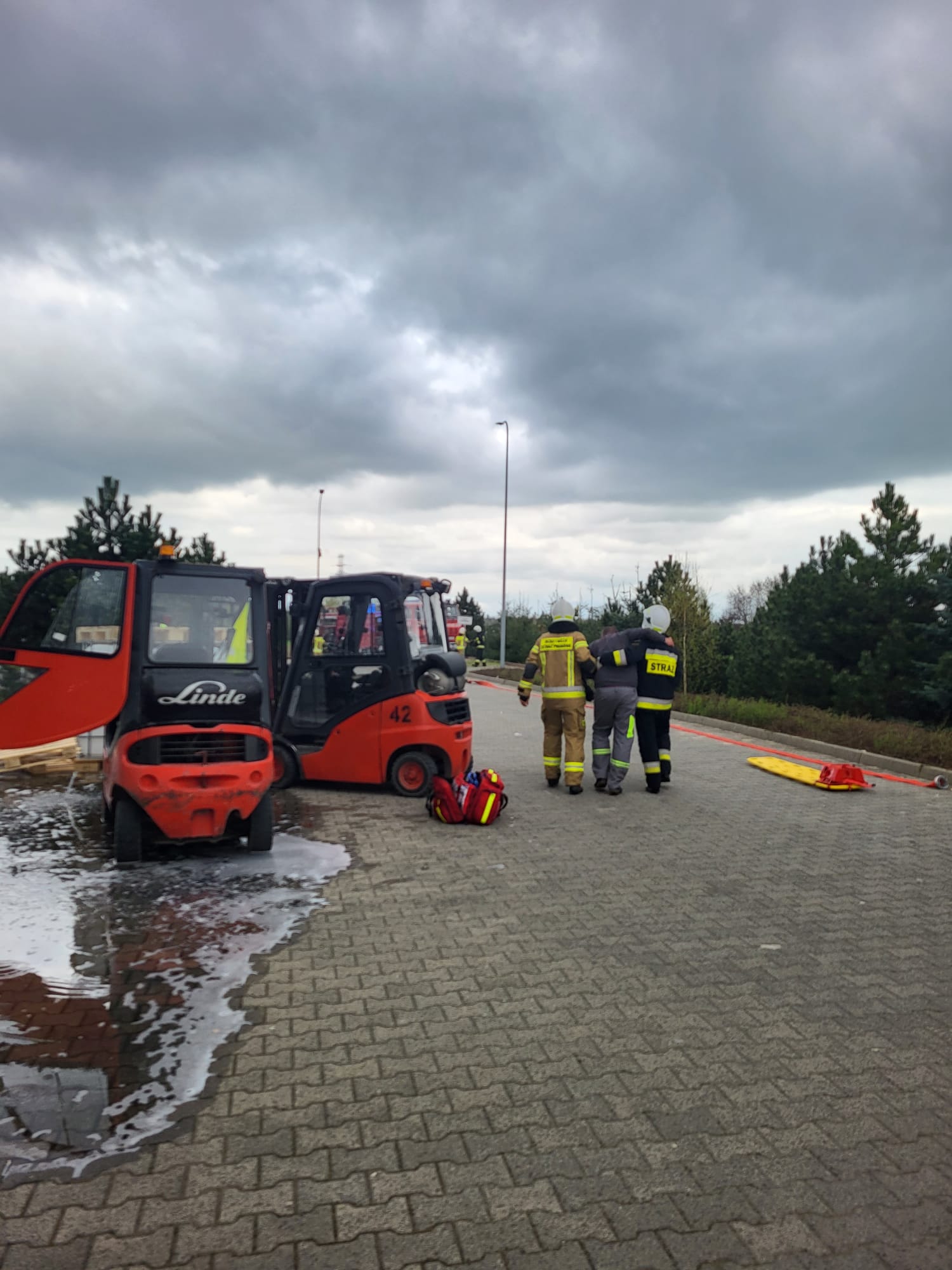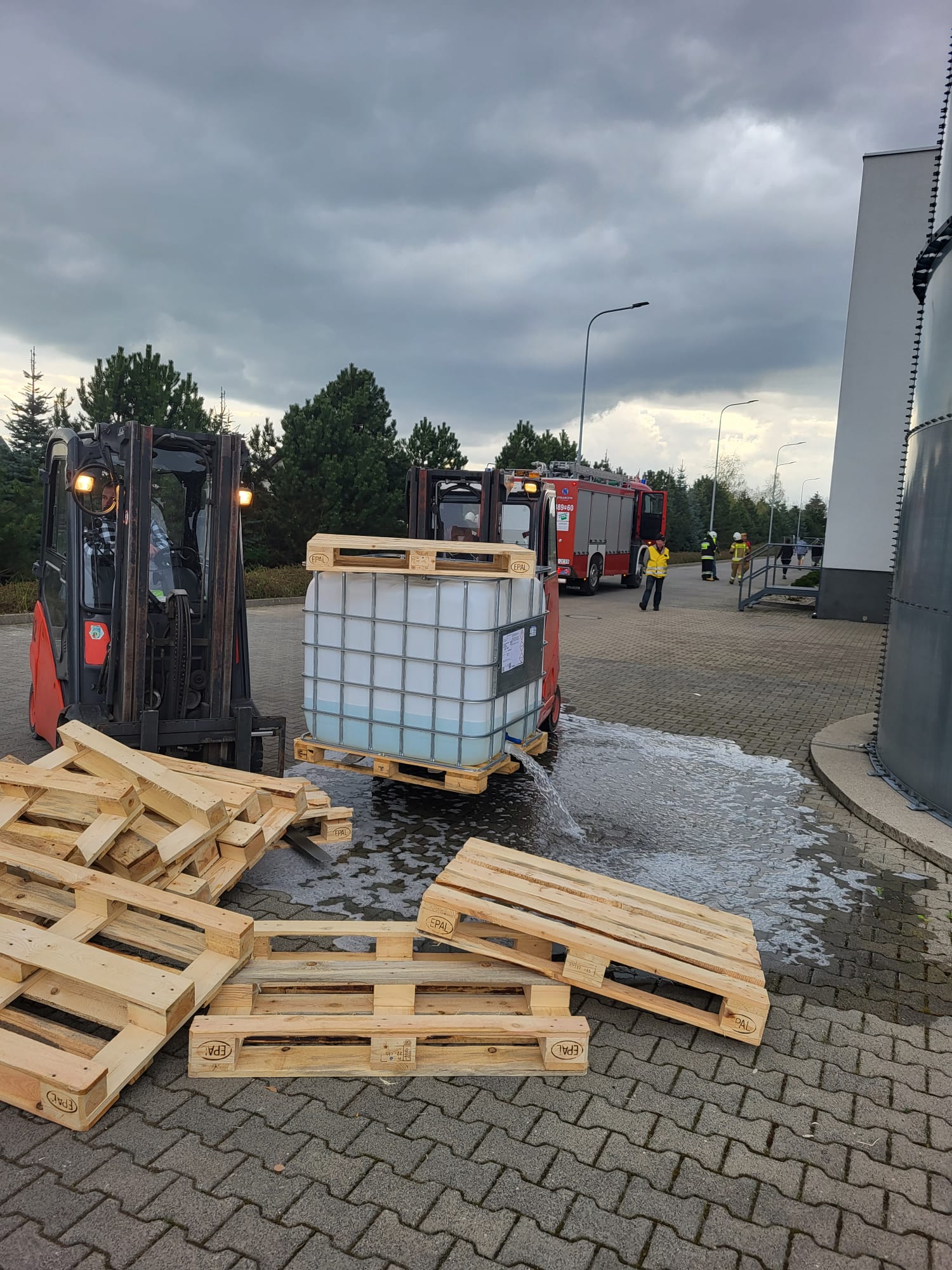 Jednocześnie na terenie zakładu doszło do drugiego incydentu, który polegał na zderzeniu dwóch wózków widłowych, z czego jeden z nich przewoził substancje ropopochodną.