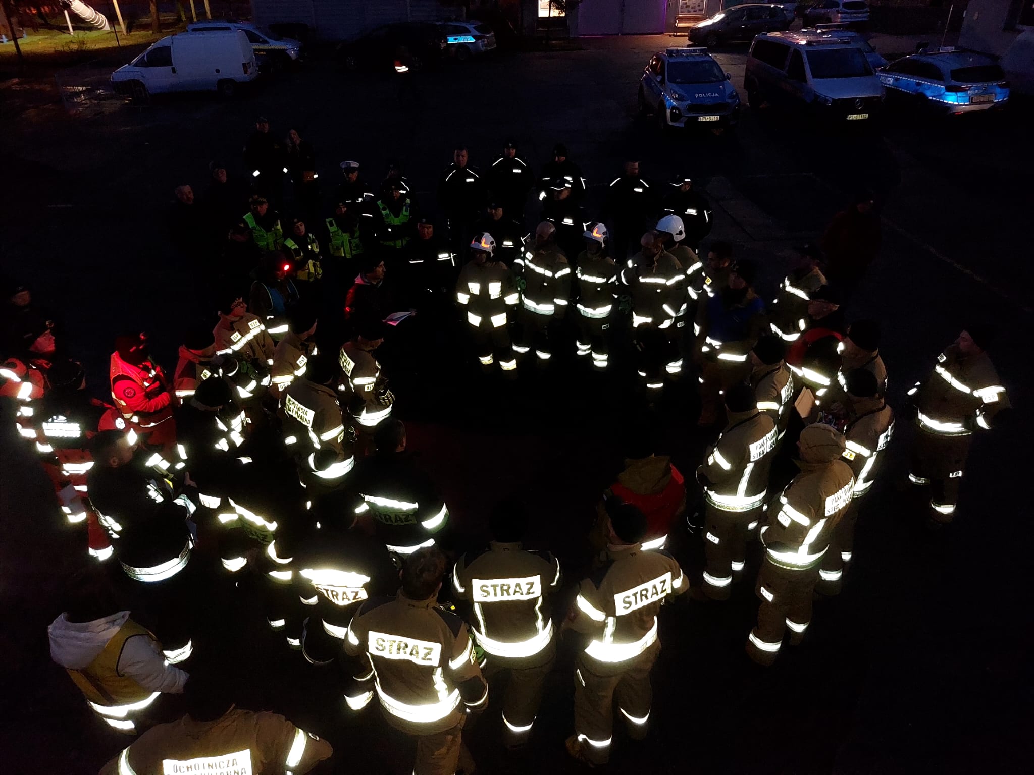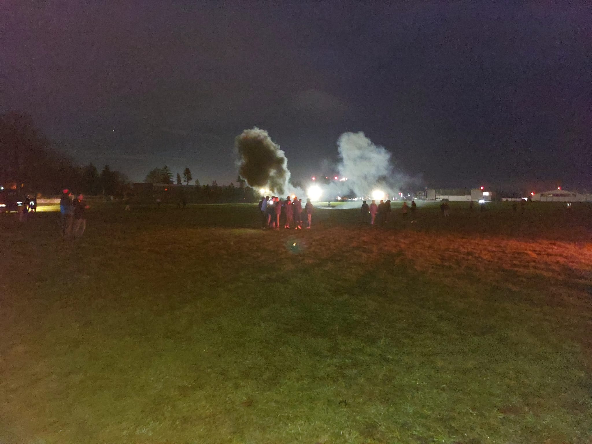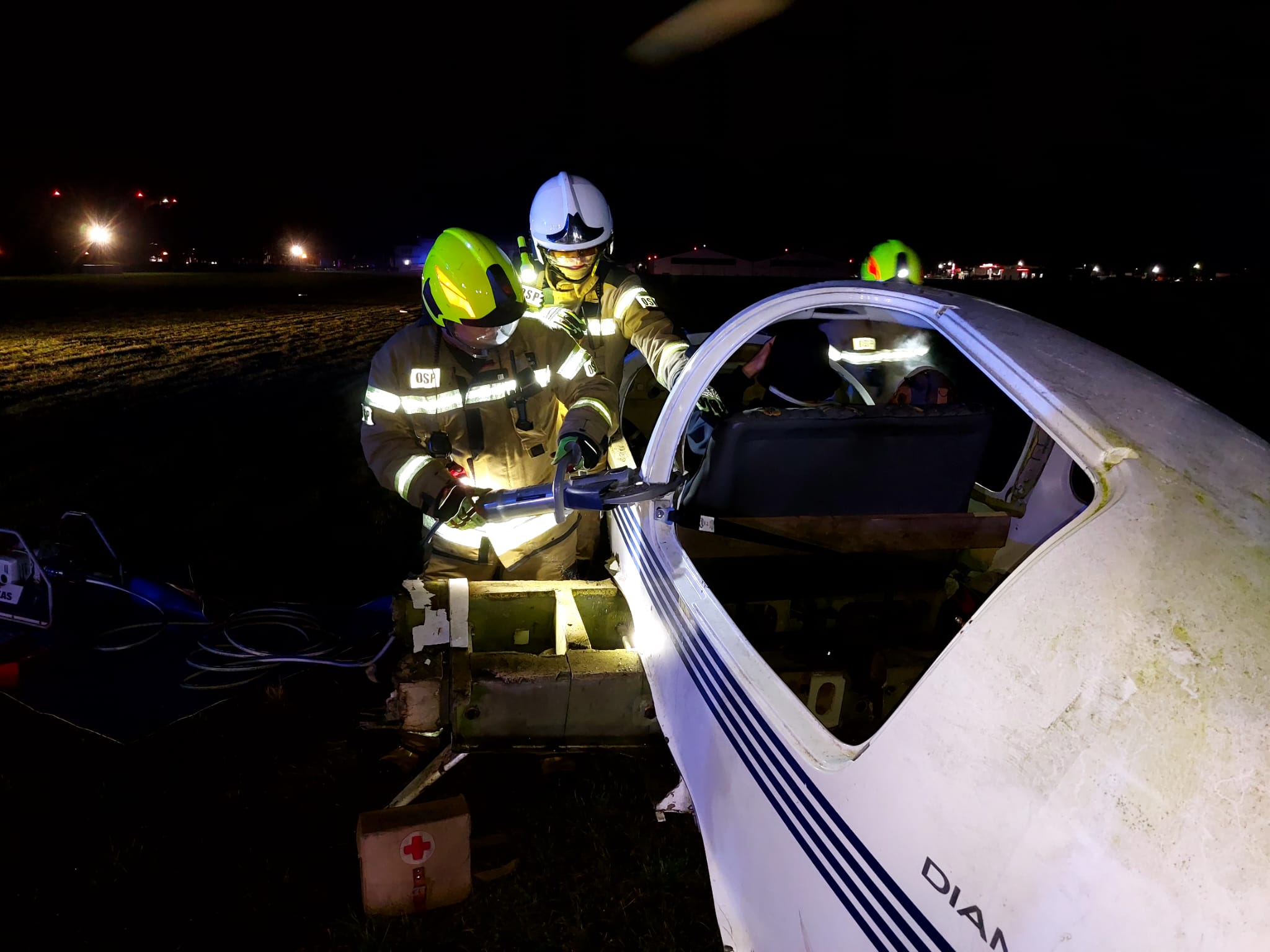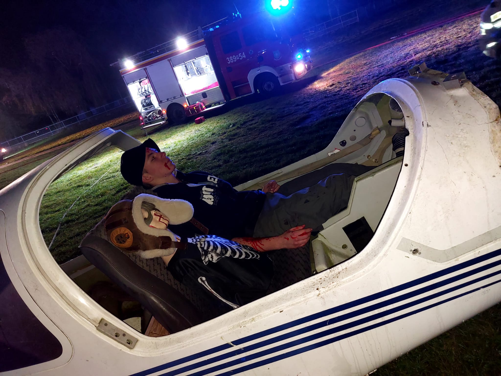 - Drugą część – nocne ćwiczenia praktyczne – zakładały katastrofę na płycie lotniska samolotu, który rozbija się w grupie widzów na pokazie lotniczym.