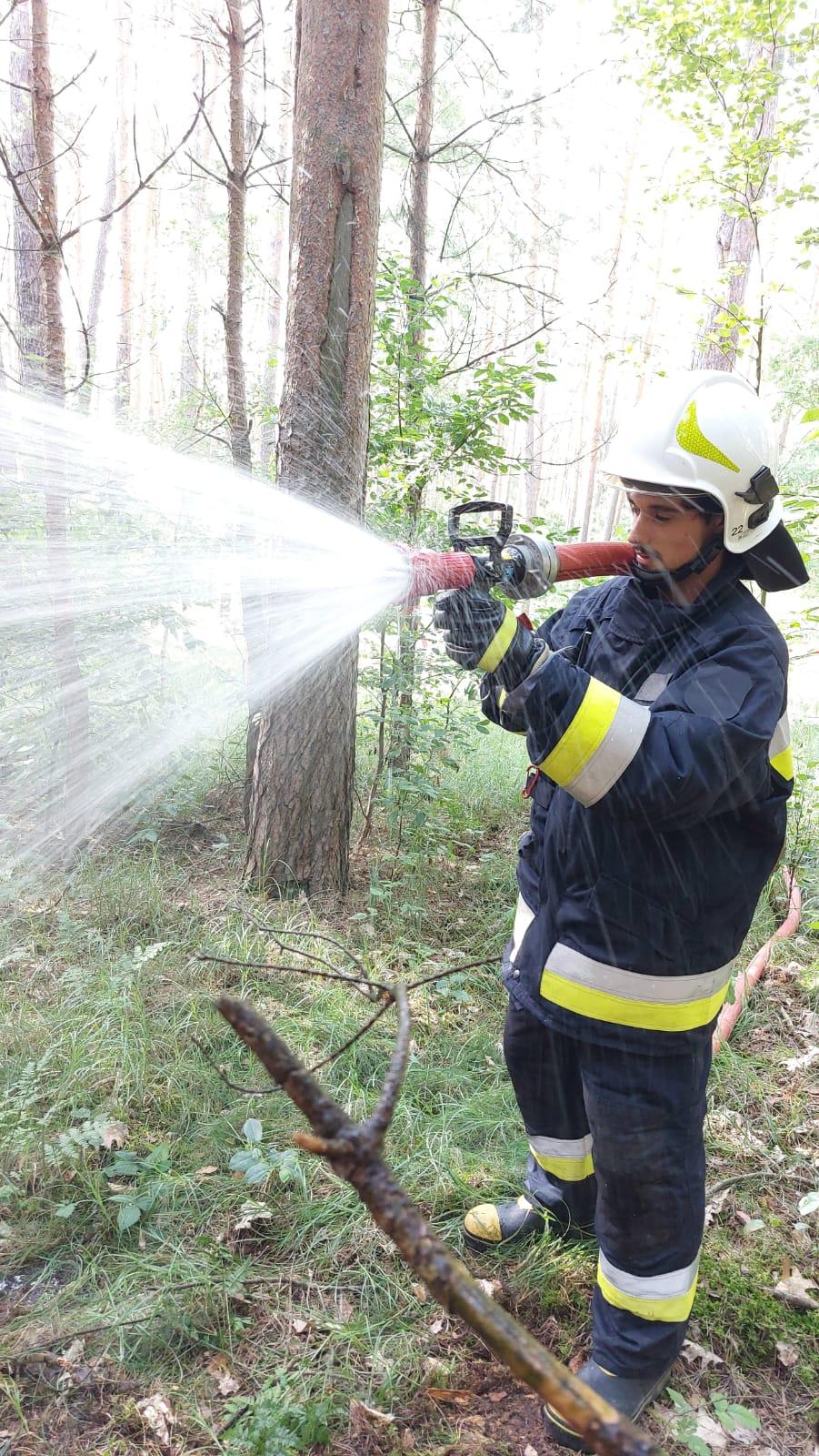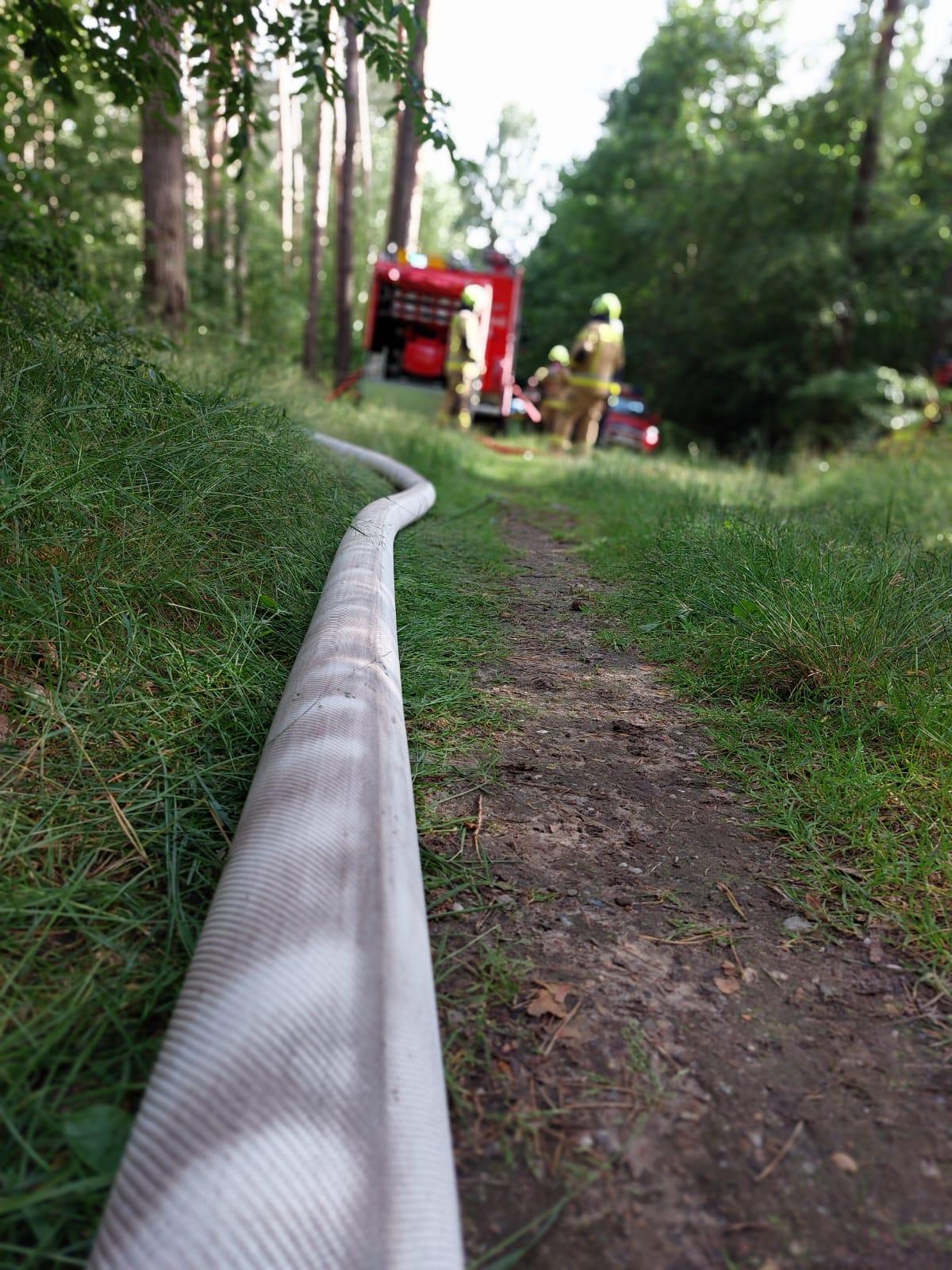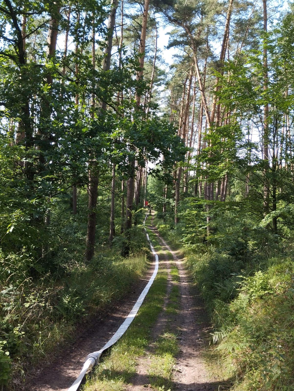 Założenie ćwiczeń przewidywało dostarczenie wody do pożaru lasu na odległość 640 m przy przewyższeniu 21 m mierzonym od lustra wody do miejsca pożaru.