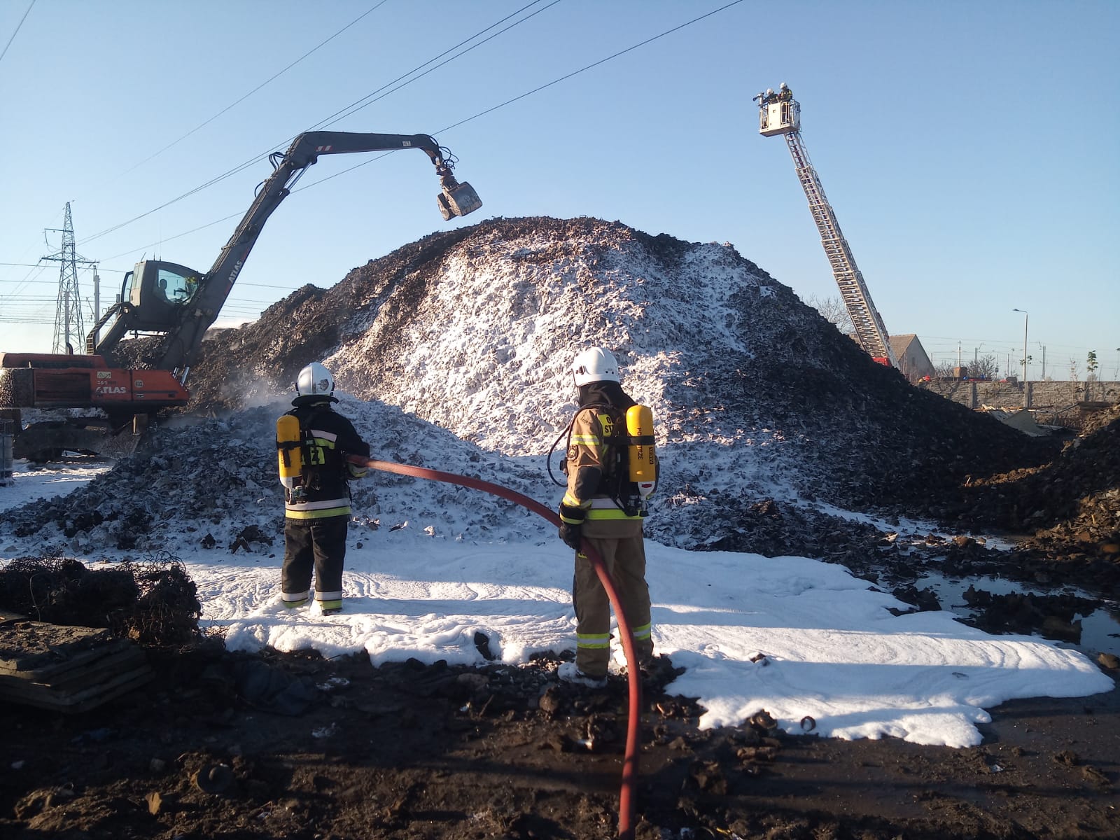 Po przybyciu na miejsce zdarzenia zabezpieczono teren działań. Kierujący Działaniem Ratowniczym podjął decyzję o podaniu 4 prądów wody oraz 3 prądów piany ciężkiej w celu stłumienia i ograniczenia rozprzestrzeniania się pożaru. W kolejnej fazie następowało sukcesywnie przerzucane hałdy materiałów przy użyciu koparki kołowej będącej na terenie zakładu oraz dogaszenie zarzewi ognia. Sytuacja na miejscu akcji była kontrolowana przy użyciu kamer termowizyjnych pod kątem występowania zarzewi ognia. Działania strażackie były nadzorowane przez z-cę Dowódcy JRG w Lesznie oraz Komendanta Miejskiego PSP w Lesznie.