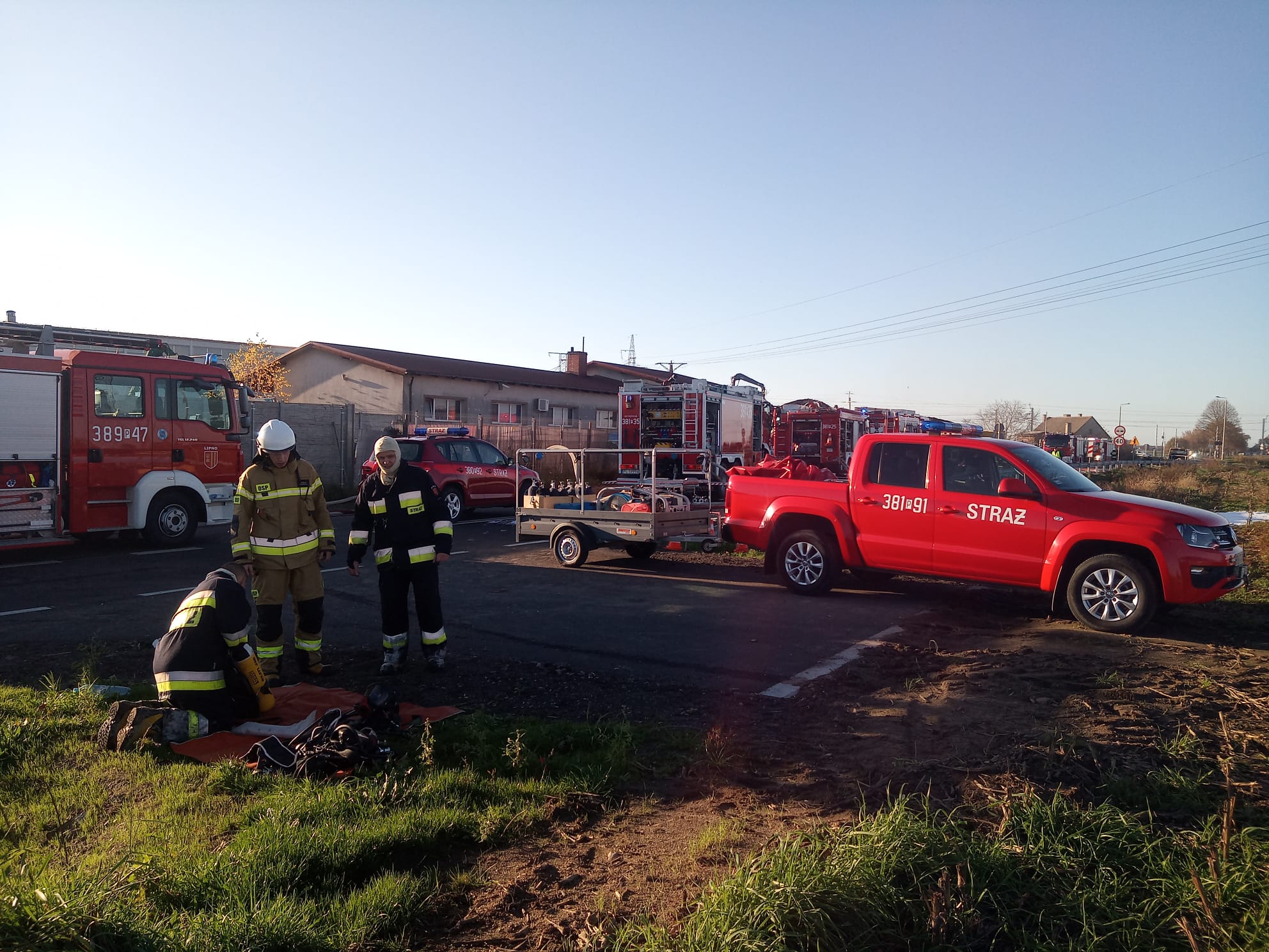 Ze względu na charakter zdarzenia, w działania zostały zaangażowane zastępy z Jednostki Ratowniczo-Gaśniczej w Lesznie oraz Ochotniczych Straży Pożarnych z: Gronowa, Wilkowic, Dąbcza i Lipna.