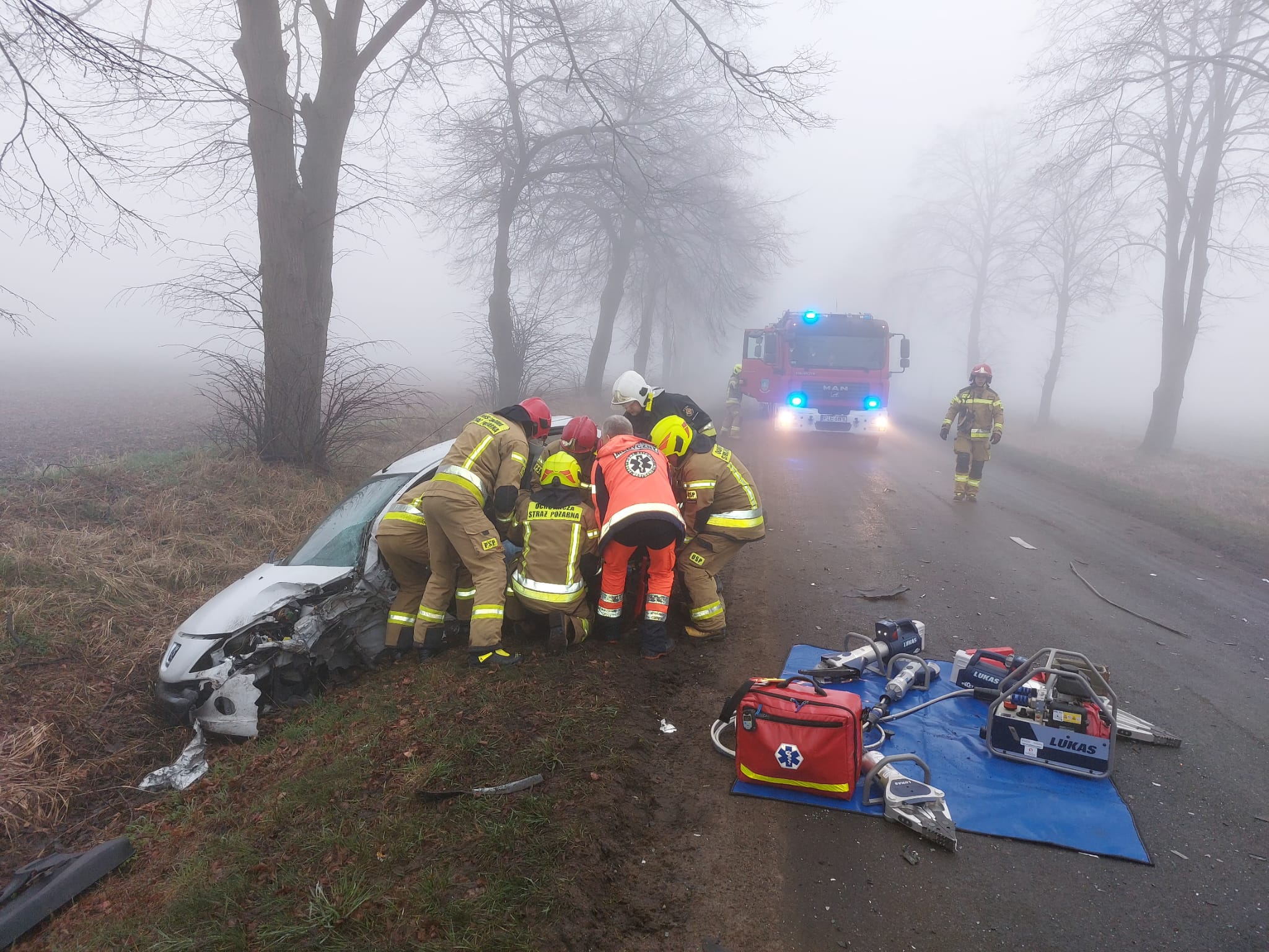 Najpierw w Piotrowicach o godzinie 7:10 doszło do wypadku z udziałem trzech samochodów osobowych, którymi łącznie podróżowały 4 osoby. Niezbędne było przetransportowanie sprawcy wypadku 26-letniego mężczyzny do szpitala.