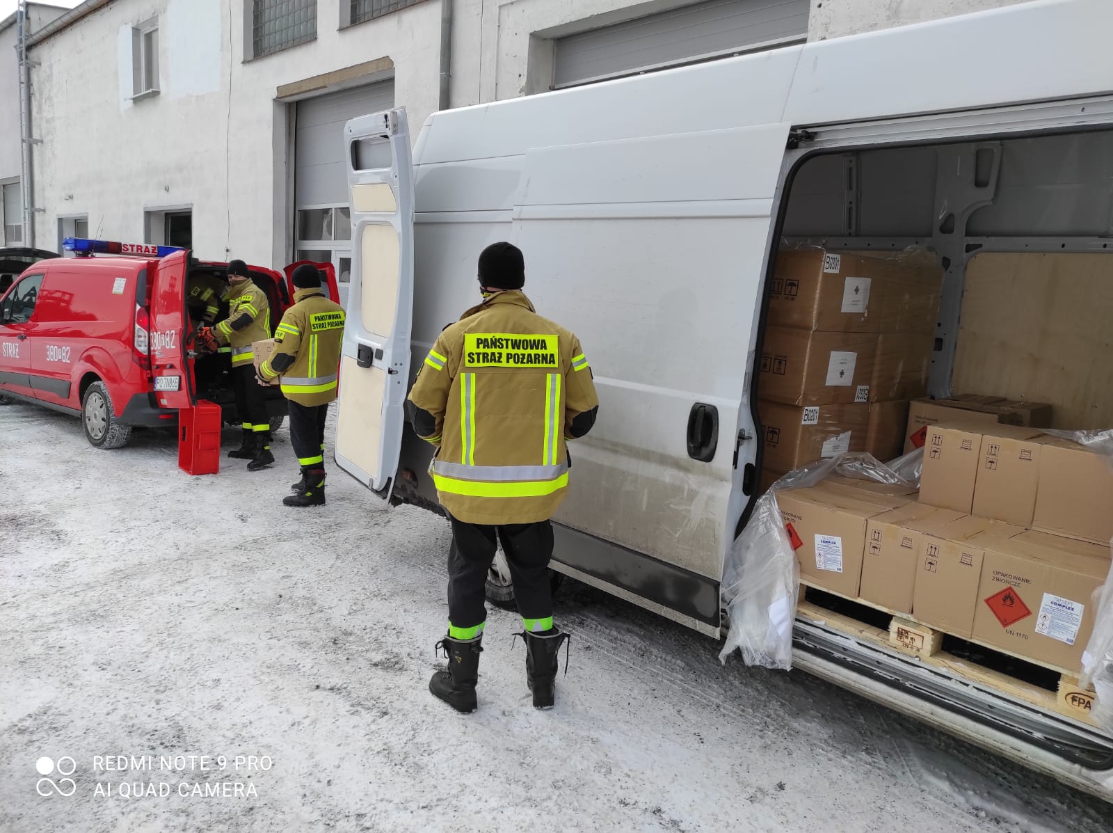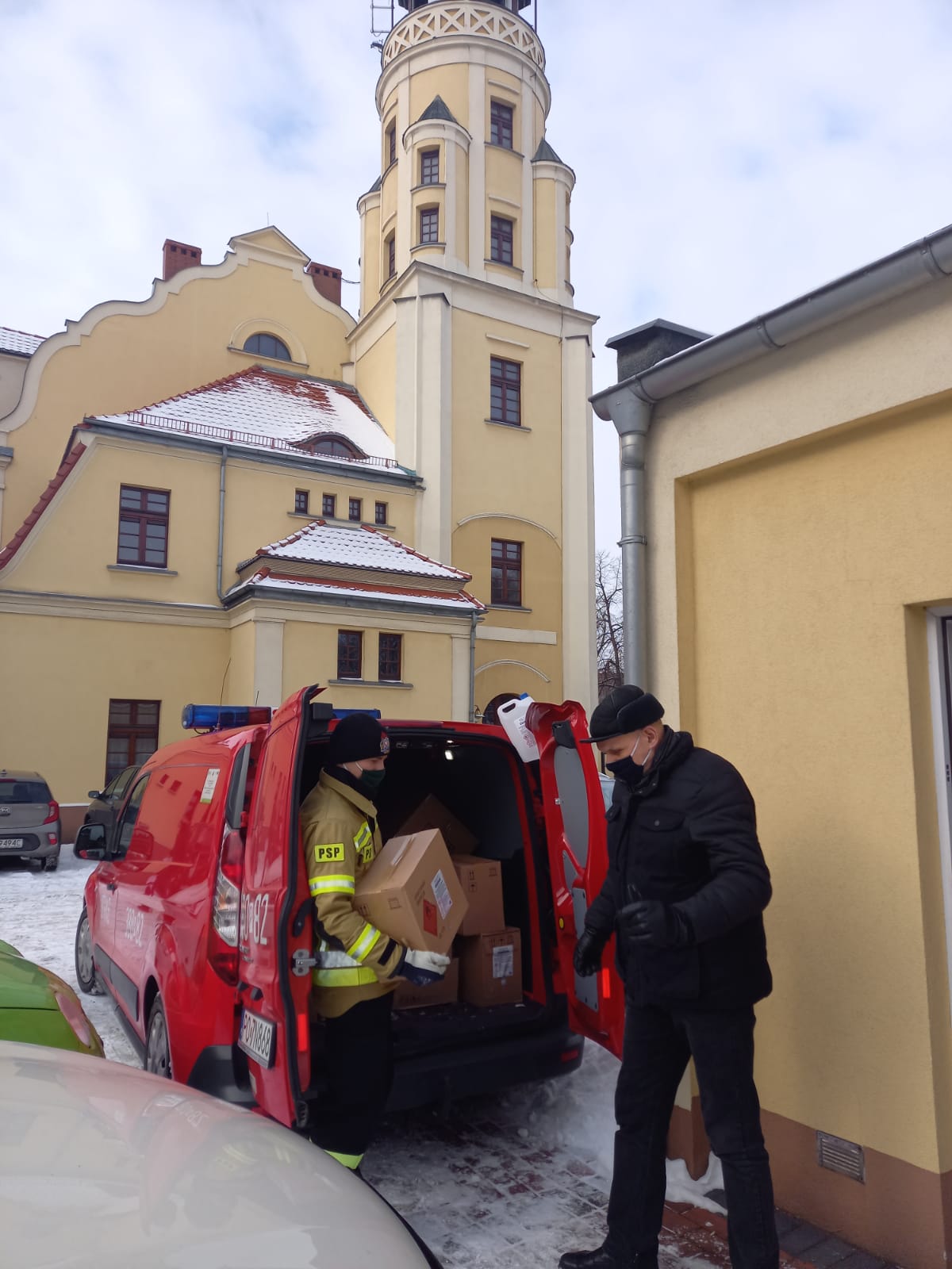 Z siedziby Wojewódzkiego Centrum Zarządzania Kryzysowego w Poznaniu odebrano maseczki chirurgiczne oraz środek dezynfekujący, który zgodnie z dyspozycją Stanowiska Kierowania Komendanta Wojewódzkiego PSP w Poznaniu rozwieziono do KP PSP w Międzychodzie, KP PSP w Nowym Tomyślu, KP PSP w Grodzisku Wlkp., KP PSP w Wolsztynie oraz KM PSP w Lesznie.