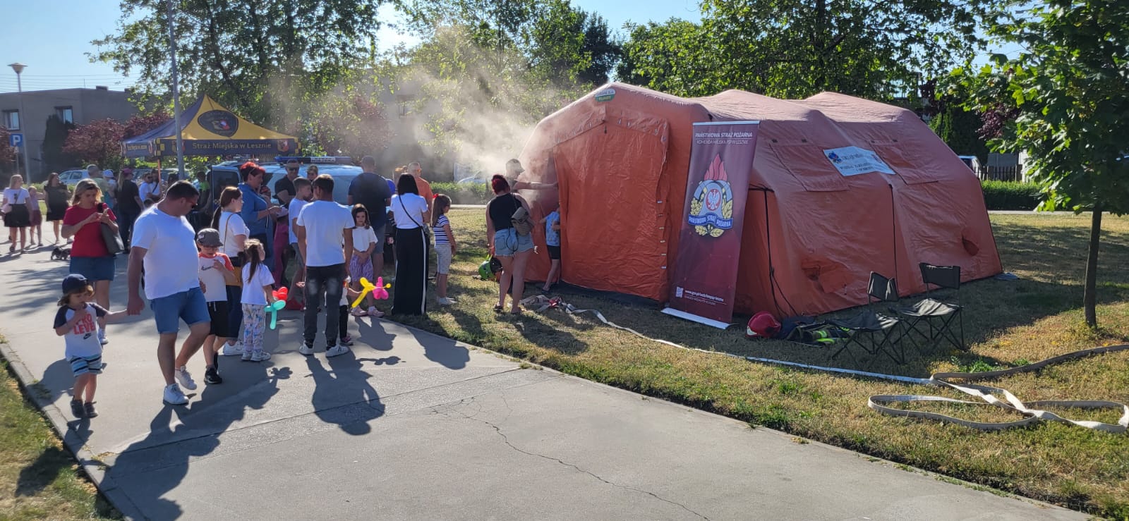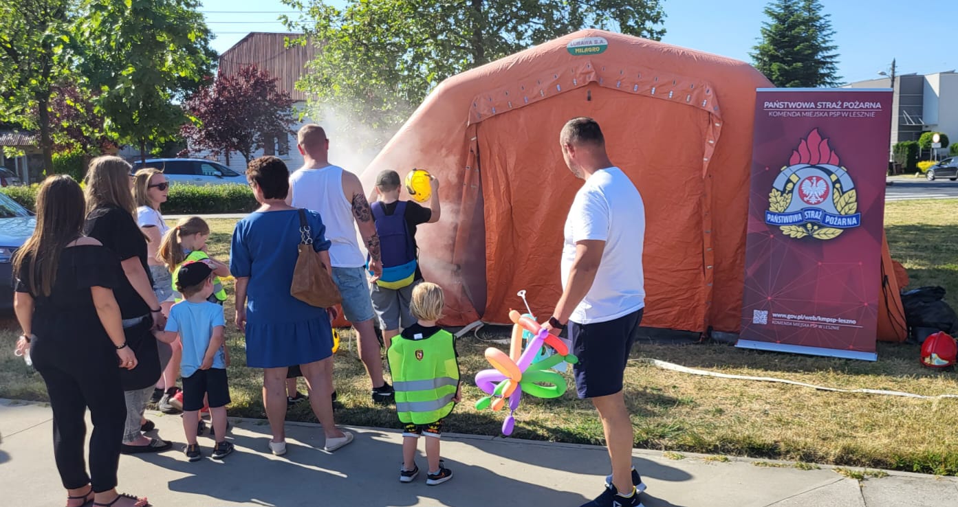 Pracownicy Komendy Miejskiej odwiedzili dzieci m. in. z placówek Specjalnej Szkoły Podstawowej oraz Przedszkola „Totus Tuus” , a także Zespołu Szkół Specjalnych im. Janusza Korczaka w Lesznie. Strażacy mieli okazję wziąć udział również w spotkaniu pt.: „ Miejski Dzień Dziecka 2023”, który zorganizowany był dnia 01.06.2023 roku na obiekcie SKATEPLAZA przy Szkole Podstawowej nr 9. Z pośród wielu innych atrakcji zapewnionych w tym dniu, dzieci mogły zaznajomić się ze specyfiką pracy jednostek ochrony przeciwpożarowej, a także z warunkami oraz zjawiskami jakie mogą wystąpić podczas działań ratowniczych w strefie imitującej strefę dymową.