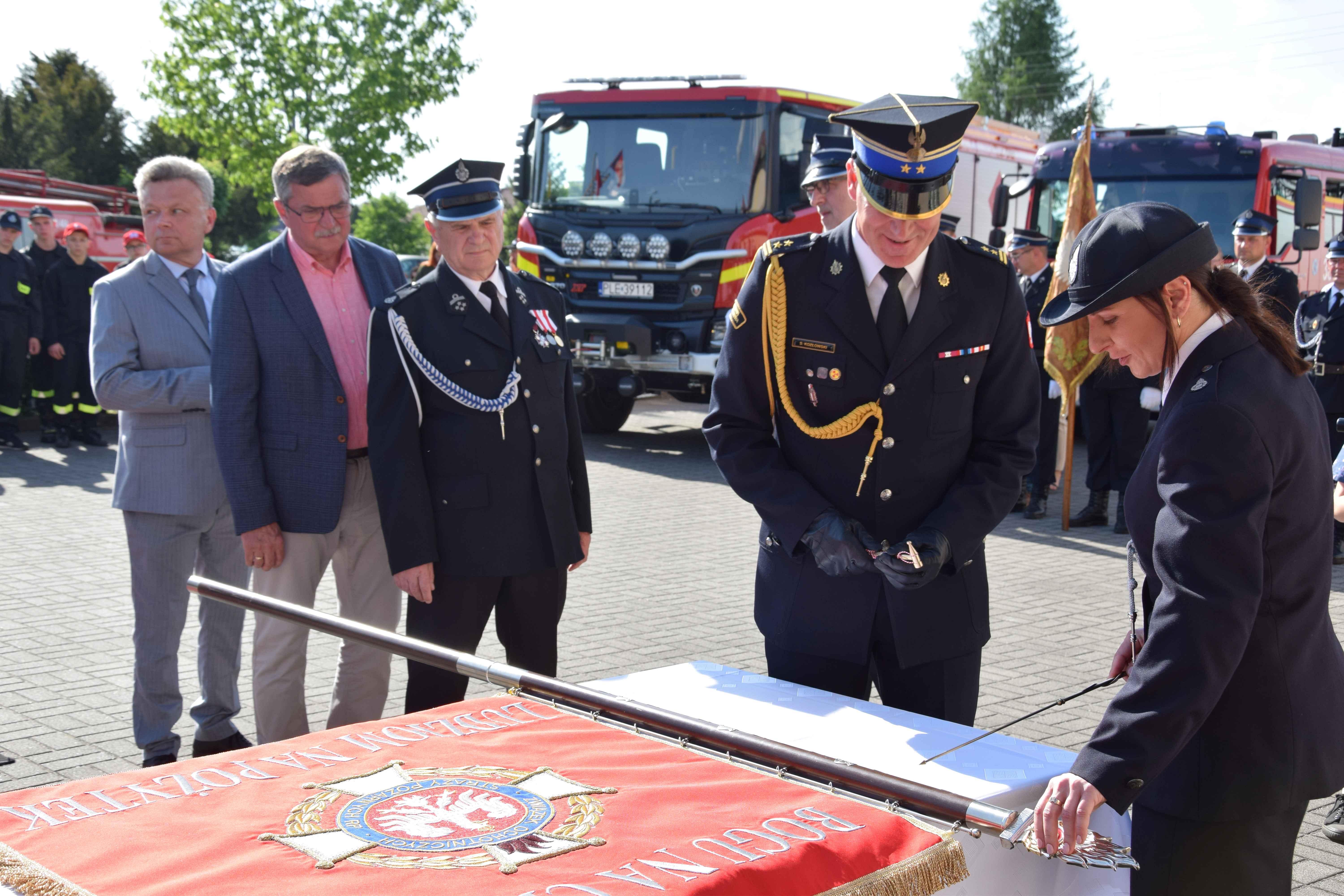 Wydarzenie rozpoczęło się mszą święta w intencji jednostki. Po nabożeństwie wyruszył przemarsz, w którym wzięli udział zaproszeni goście. Następnie przed remizą została wciągnięta na maszt flaga państwowa oraz odegrany hymn Polski, po czym jednostka pożegnała się ze starym sztandarem a chwilę później otrzymali z rąk druha Prezesa Arkadiusza Pawlaka nowy sztandar, który wraz z nowym pojazdem gaśniczym został poświęcony przez ks. proboszcza miejscowej parafii.