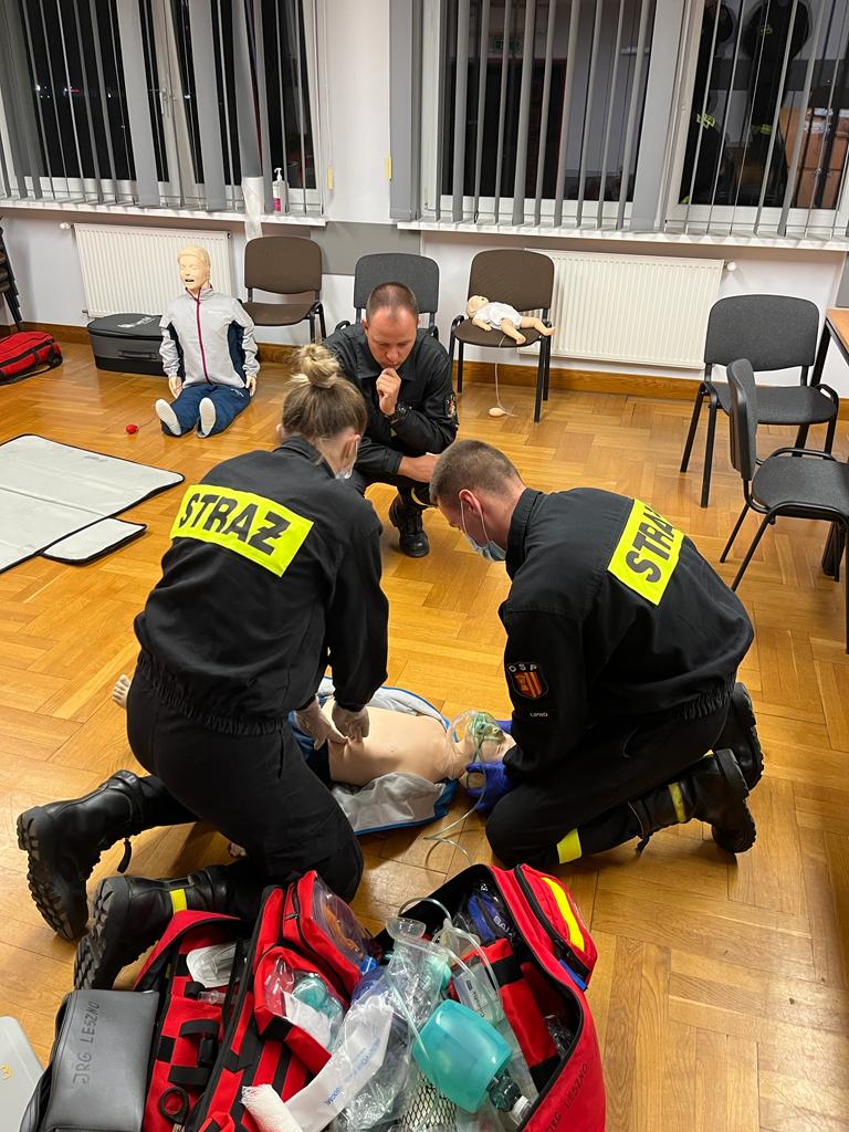 Strażacy – ratownicy OSP z powiatu leszczyńskiego, przystąpili nieodpłatnie do egzaminu, potwierdzającego tytuł ratownika z zakresu kwalifikowanej pierwszej pomocy dla strażaków ratowników OSP.