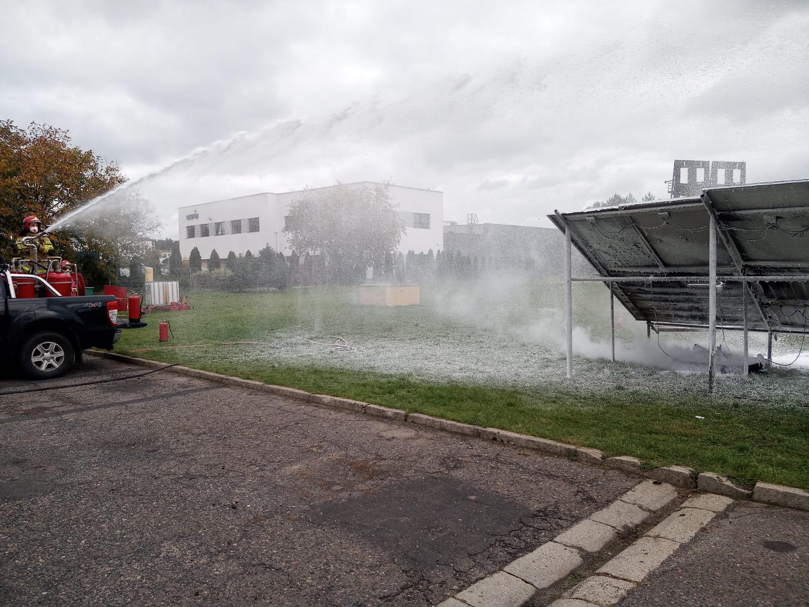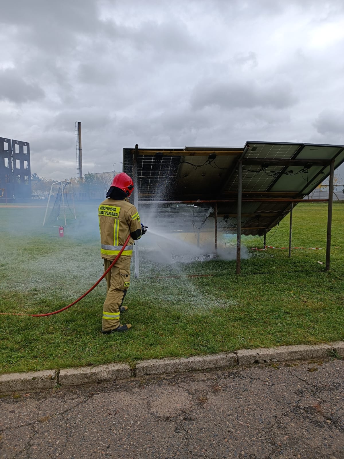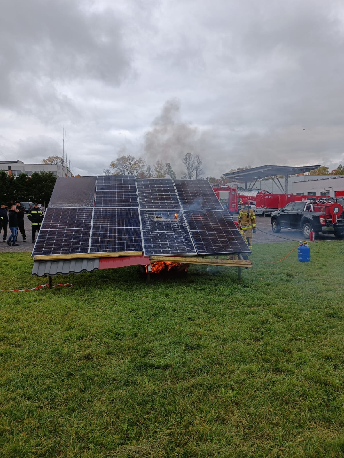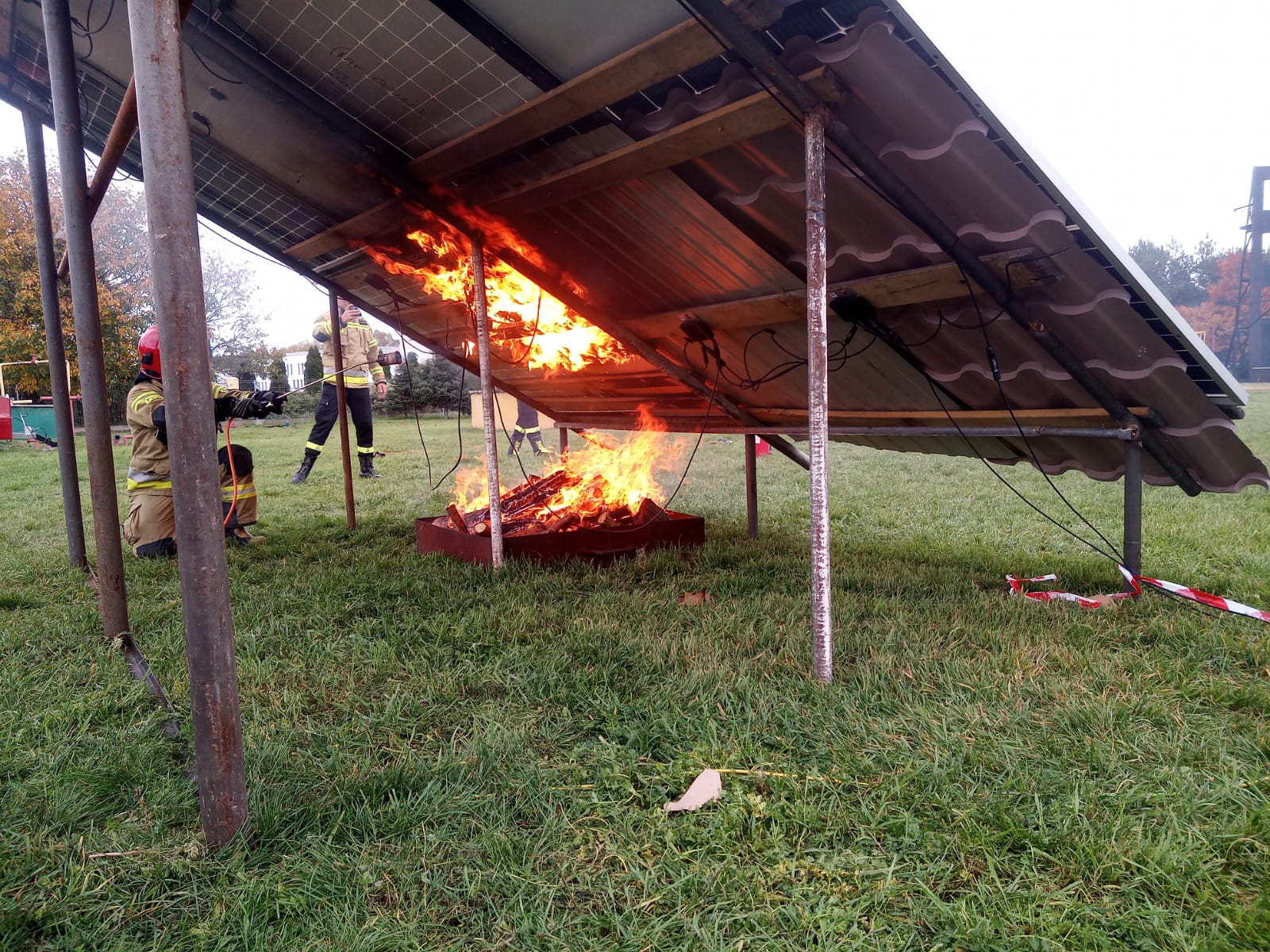Podczas symulacji pożarowej instalacji fotowoltaicznej była możliwość wymiany zdań, uzupełnienia przedstawionej treści teoretycznej czy zapoznania się z właściwym procesem montażu oprzyrządowania fotowoltaicznego.