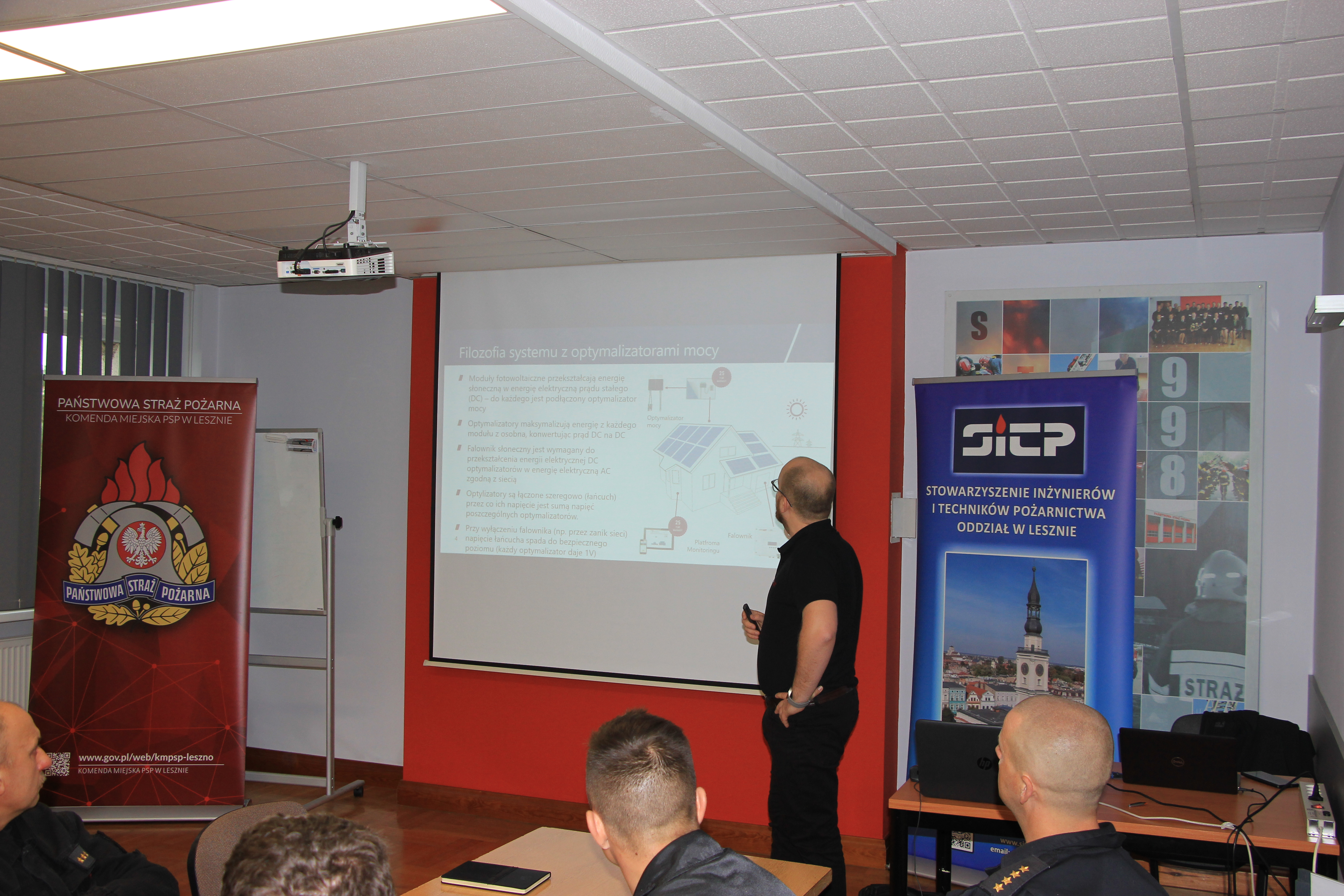Wsparcia organizacyjnego udzielił nam leszczyński oddział Stowarzyszenia Inżynierów i Techników Pożarnictwa, natomiast część merytoryczna została przygotowana przez pracowników firmy Solaredge.