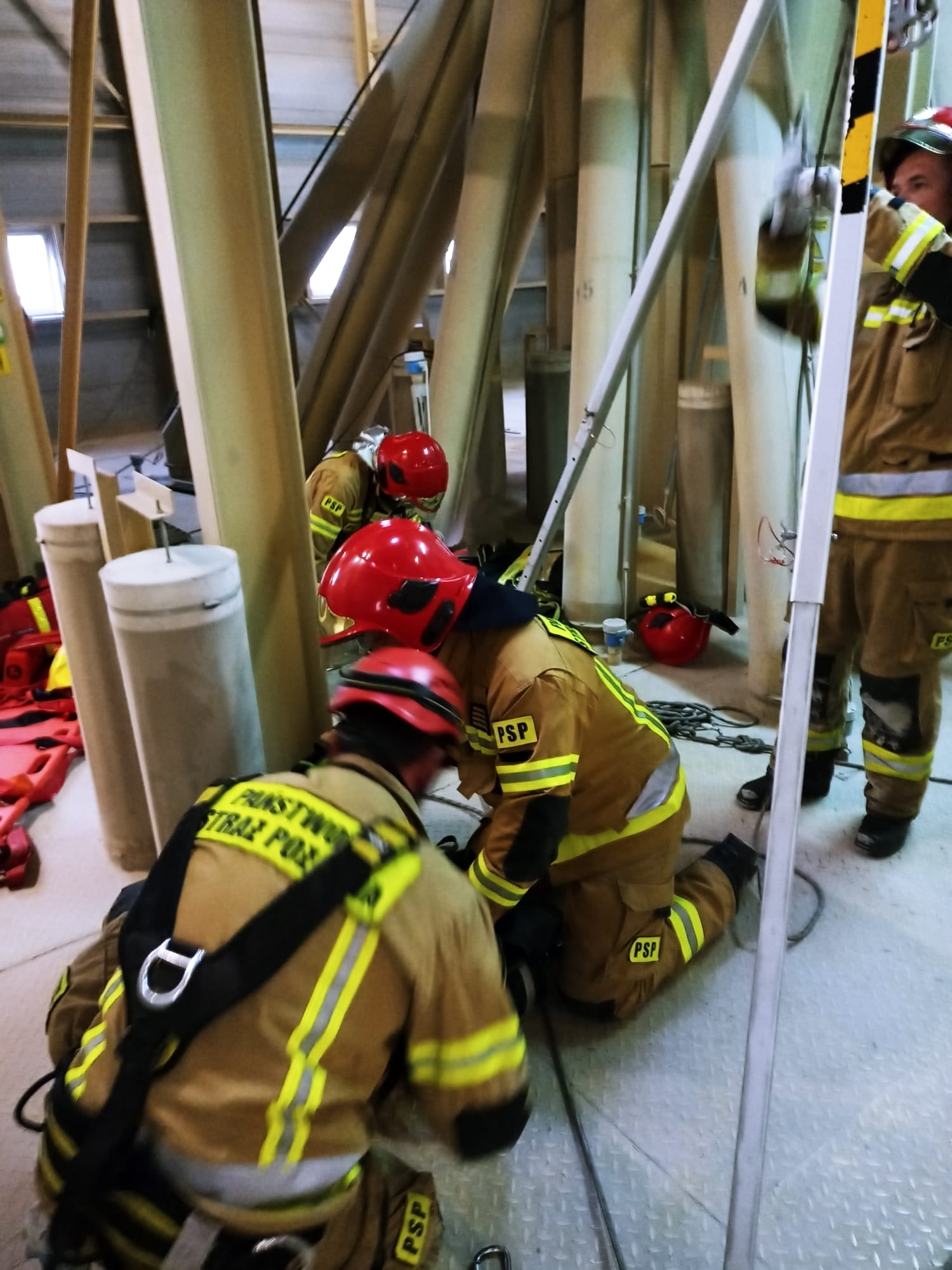 Strażacy po „ugaszeniu” pożaru i przeszukaniu obiektu musieli podjąć działania mające na celu wydobycie poszkodowanego, który wpadł do silosu paszowego. Działania podjęto w pełnym zabezpieczeniu w sprzęt ochrony dróg oddechowych oraz wyposażeniu w detektor wielogazowy. Ewakuacje poszkodowanego przeprowadzono schodami stosując częste podmiany strażaków. Dodatkowo ćwiczenia zgrywające dały możliwość przećwiczenia strażakom OSP podziału terenu akcji na odcinki bojowe oraz doskonalenie organizacji łączności radiowej. Niezaplanowaną podgrywką do ćwiczeń okazała się prawdziwa kolizja drogowa, która miała miejsce w czasie ćwiczeń, kilkaset metrów od Cargilla na drodze krajowej nr 12. Strażacy OSP Krzemieniewo oraz grupa operacyjna z JRG w Lesznie zostali natychmiast przedysponowani do miejsca zdarzenia.