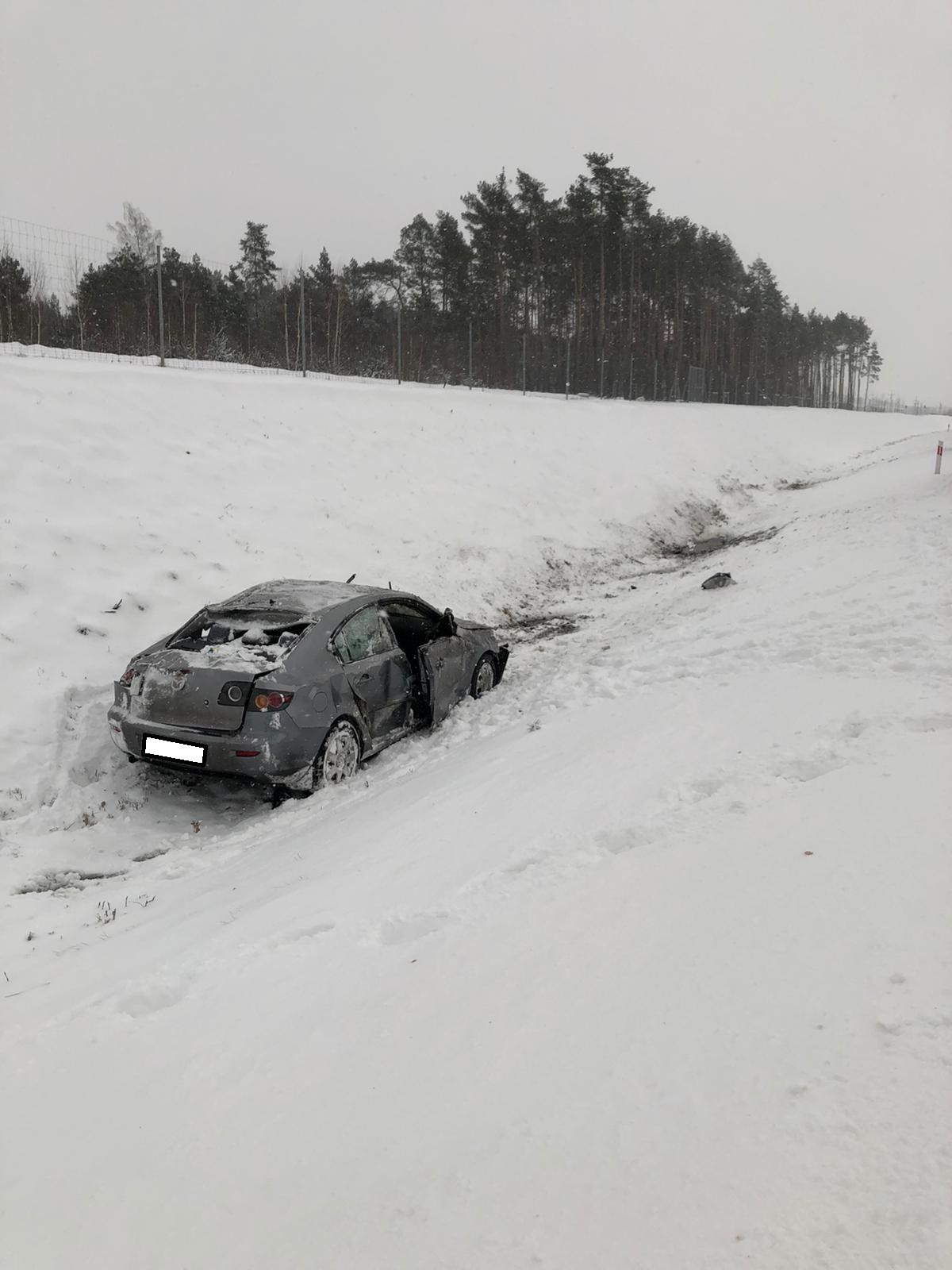 W wyniku zdarzenia została poszkodowana 19 letnia kobieta, mieszkanka gminy Nowy Tomyśl. Na miejsce zostały zadysponowane dwa zastępy z Jednostki Ratowniczo – Gaśniczej Komendy Miejskiej Państwowej Straży Pożarnej w Lesznie oraz Ochotniczej Straży Pożarnej w Dąbczu. Strażacy po dojeździe na miejsc zdarzenia zabezpieczyli teren działań, udzielili kwalifikowanej pierwszej pomocy osobie poszkodowanej oraz rozłączyli akumulator w pojeździe. Samochód osobowy został wyciągnięty z rowy, a jego kierowca zabrany do szpitala przez ZRM. Przypuszczalną przyczyną zdarzenia było niezachowanie zasad bezpieczeństwa w ruchu drogowym, natomiast straty oszacowano na 10 tys. zł.