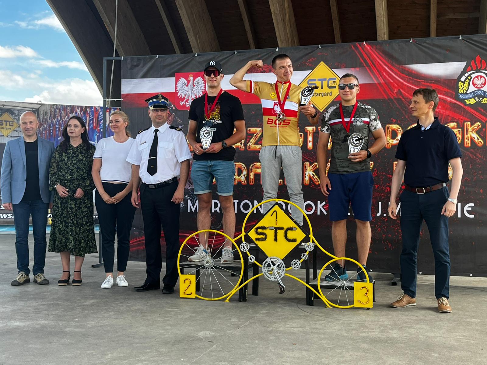 LESZCZYŃSCY STRAŻACY NA TRASIE XVI MARATONU MTB GRAVEL DOOKOŁA JEZIORA MIEDWIE IM. TOMASZA PRYCIAKA - MISTRZOSTWA POLSKI STRAŻAKÓW PSP