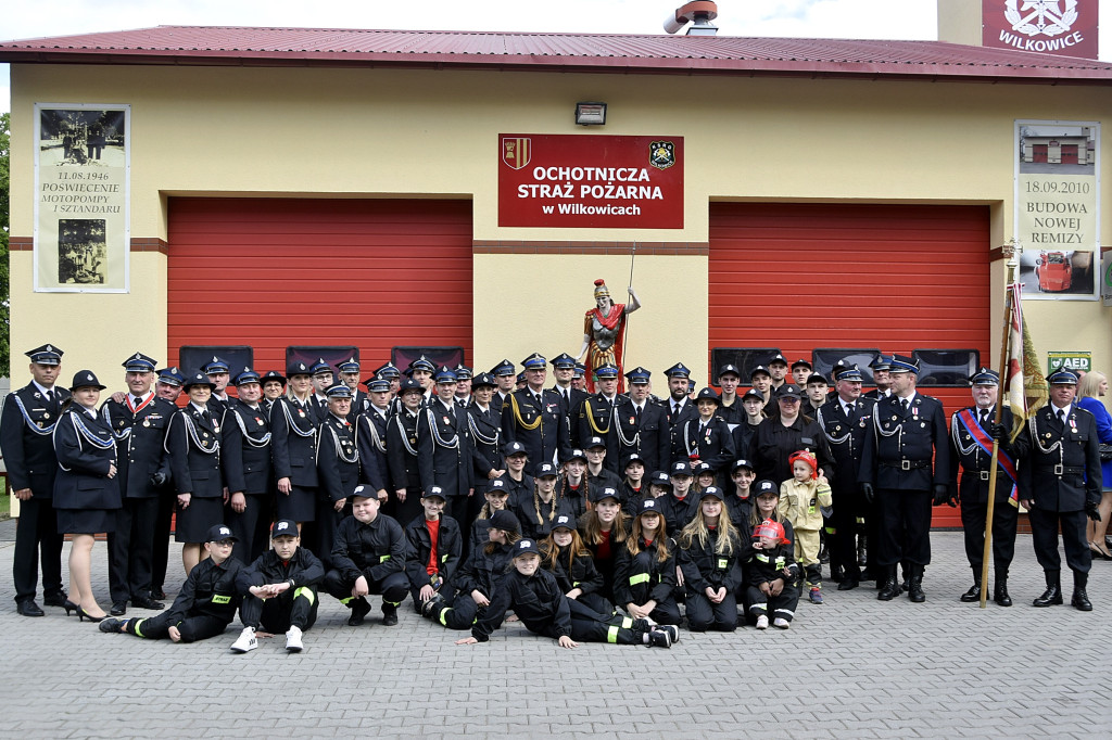 z jednostki OSP Wilkowice. Z okazji 90-lecia powstania jednostki, na placu przed remizą, odbyły się uroczyste obchody połączone z wręczeniem odznaczeń zasłużonym działaczom jednostki oraz podziękowań za wsparcie działalności OSP. Ważnym punktem obchodów było uroczyste przekazanie i poświęcenie ciężkiego samochodu ratowniczo-gaśniczego, pozyskanego przez jednostkę OSP Wilkowice ze Szkoły Aspirantów Państwowej Straży Pożarnej w Poznaniu. Uroczystość swoją obecnością zaszczycili:
