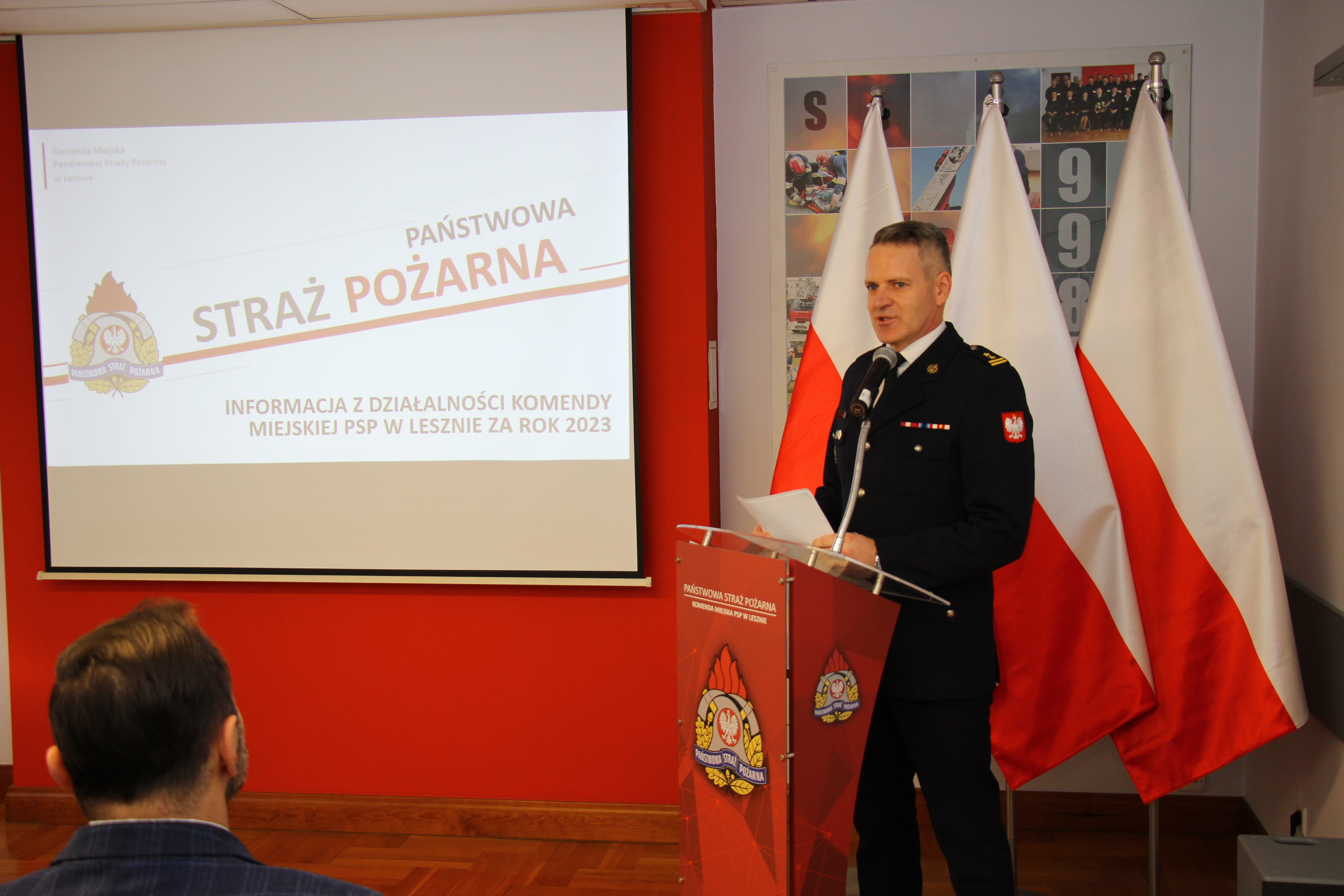 W dniu 29 stycznia 2024 roku w Komendzie Miejskiej Państwowej Straży Pożarnej w Lesznie odbyła się narada podsumowująca działalność komendy w roku 2023. Po uroczystym przywitaniu zaproszonych gości, bryg. Sebastian Kozłowski Komendant Miejski Państwowej Straży Pożarnej w Lesznie zaprezentował sprawozdanie z działalności komendy za rok 2023 oraz przedstawił główne plany i kierunki działania na rok 2024.