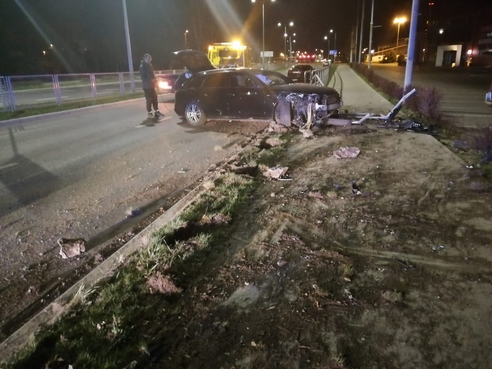 - 15 kwietnia 2021 r., ok. godz. 1:00, Leszno ul. Jana Pawła II – samochód osobowy marki Audi A6 po zderzeniu z barierkami,