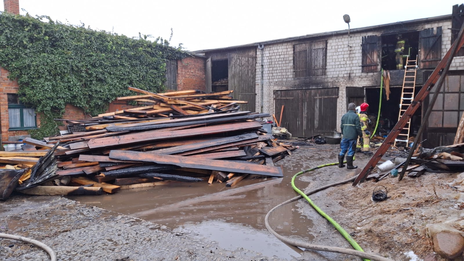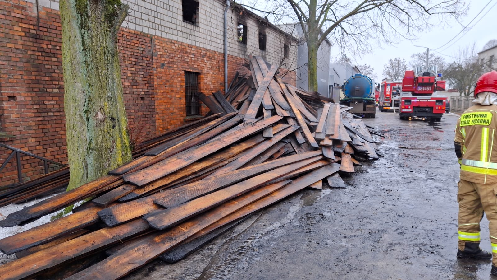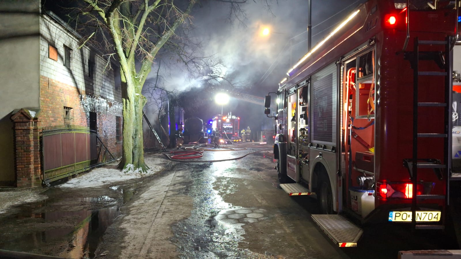 Działania zakończono po godz. 12:00. W działaniach brało udział 13 zastępów jednostek ochrony przeciwpożarowej, policja oraz pogotowie energetyczne.