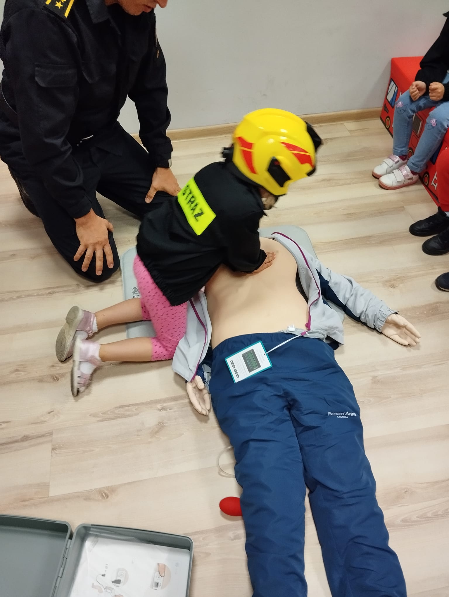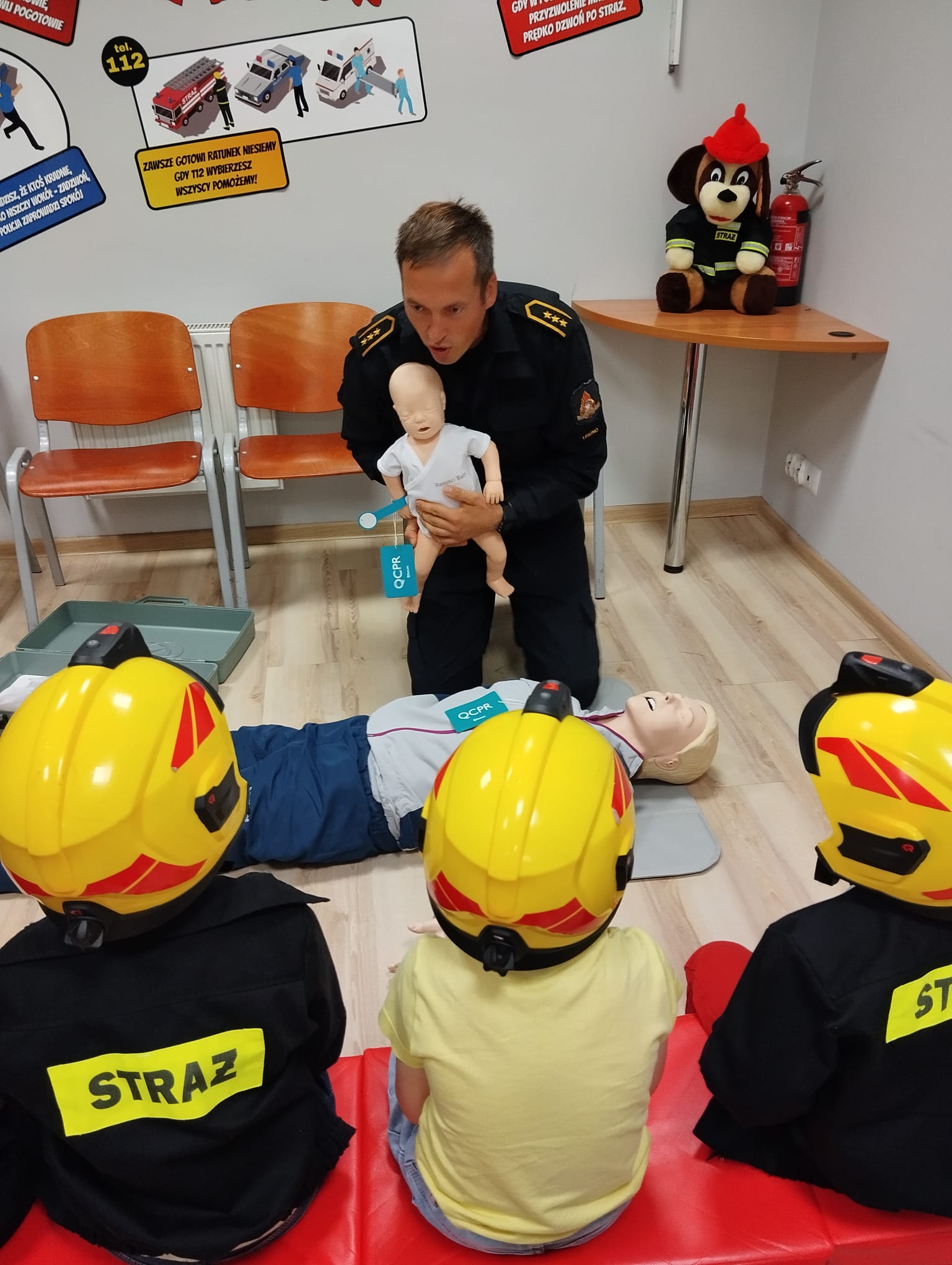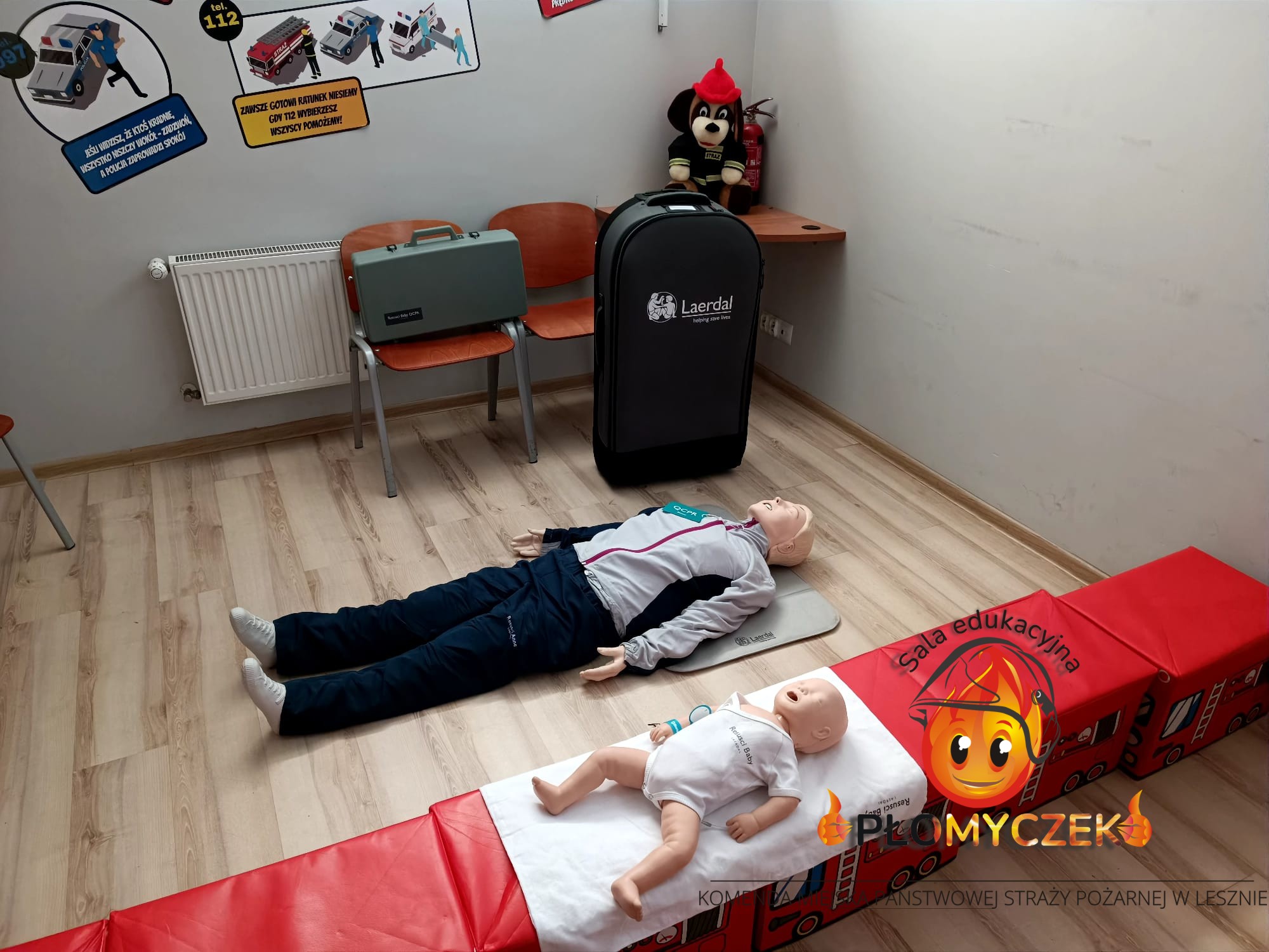 Pozostałą część środków w kwocie 9 tyś. zł. pozyskano poprzez Fundusz Wsparcia PSP dzięki dobrej współpracy z Miejskim Przedsiębiorstwem Energetyki Cieplnej w Lesznie oraz Miejskim Przedsiębiorstwem Wodociągów i Kanalizacji w Lesznie. Fantom niemowlaka o wartości ponad 6,5 tyś. zł. otrzymana w formie darowizny z Wojewódzkiego Ośrodka Ruchu Drogowego w Lesznie. Oba fantomy pozwalają w trakcie nauki techniki resuscytacji krążeniowo oddechowej (RKO) śledzić jej skuteczność w czasie rzeczywistym na urządzeniach mobilnych typy smartfon. Aplikacja ocenia m.in. prawidłowość ułożenia rąk na klatce piersiowej, skuteczność ucisków i oddechu zastępczego. Po skończonej sesji daje ćwiczącemu wskazówki dot. poprawy wykonania RKO. Fantomy pozyskano w celu doposażenia funkcjonującej w tut. komendzie Salki Edukacyjnej „Płomyczek”, którą odwiedziło już 3600 dzieci i młodzieży od momentu otwarcia tj. 6 czerwca 2022 r.