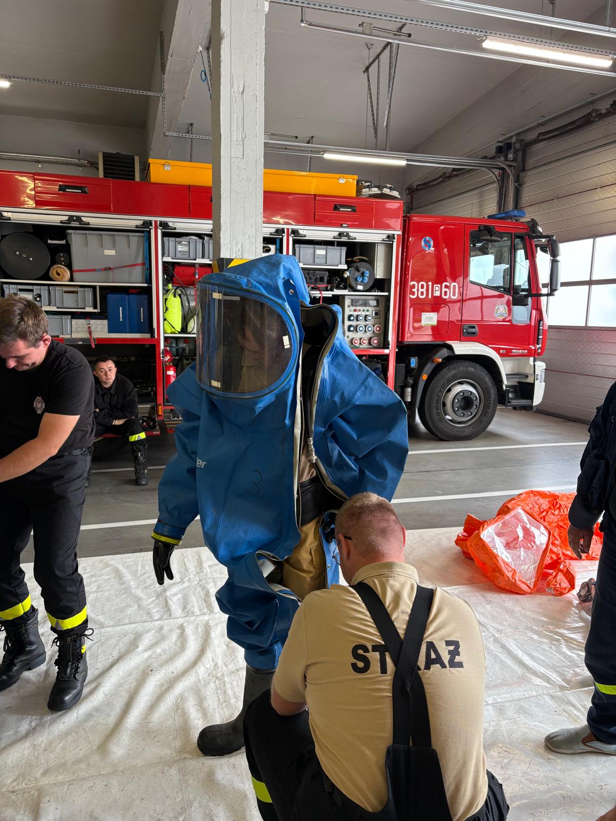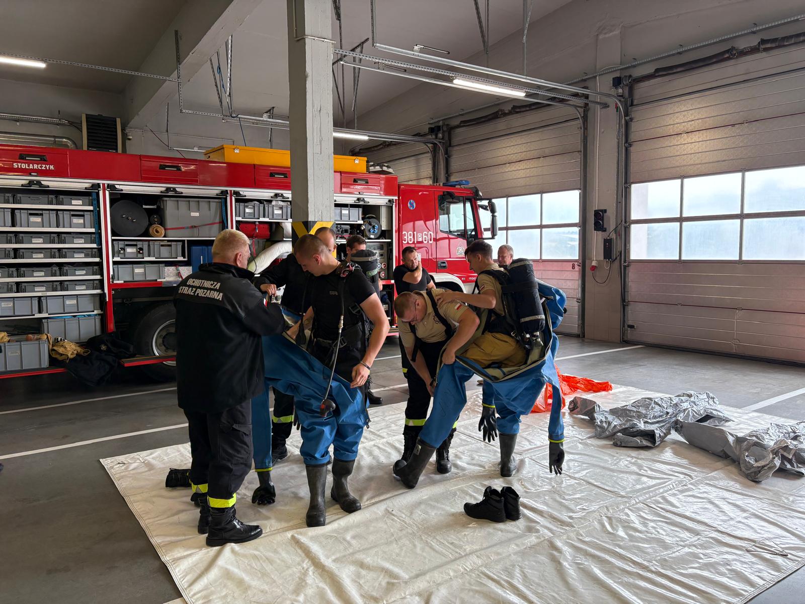 W dniach 13-14.09.2025 roku oraz 20-21.09.2025 roku na terenie tutejszej Komendy odbywa się szkolenie z zakresu ratownictwa chemiczno – ekologicznego w zakresie podstawowym dla strażaków OSP . W szkoleniu bierze udział 10 ratowników OSP z powiatów: rawickiego, gostyńskiego oraz kościańskiego. Plan szkolenia został podzielony na część teoretyczną i praktyczną. Szkolenie jest realizowane w oparciu o wiedzę i doświadczenie ratowników pracujących na co dzień w Specjalistycznej Grupie Ratownictwa Chemiczno – Ekologicznego w Lesznie.
