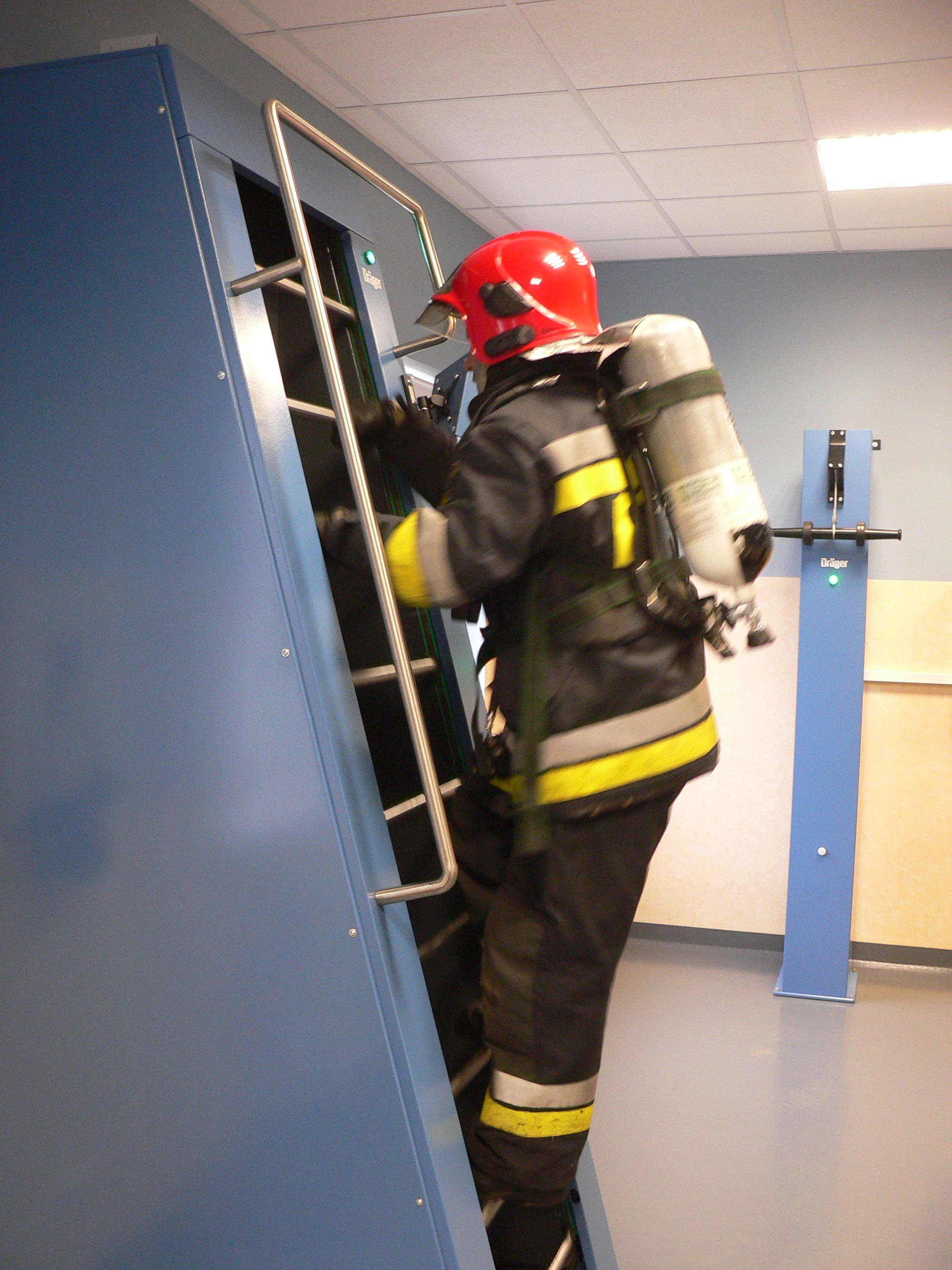 Test w komorze dymowej ma na celu sprawdzenie odporności strażaków na obciążenia psychofizyczne, zdolność orientacji i przemieszczania się w warunkach zadymienia i ograniczonej przestrzeni zbliżonych do warunków rzeczywistych występujących podczas akcji ratowniczych. Ratownik w aparacie ochrony dróg oddechowych pokonuje różne przeszkody w warunkach podwyższonej temperatury, zadymienia, hałasu oraz efektów świetlnych.