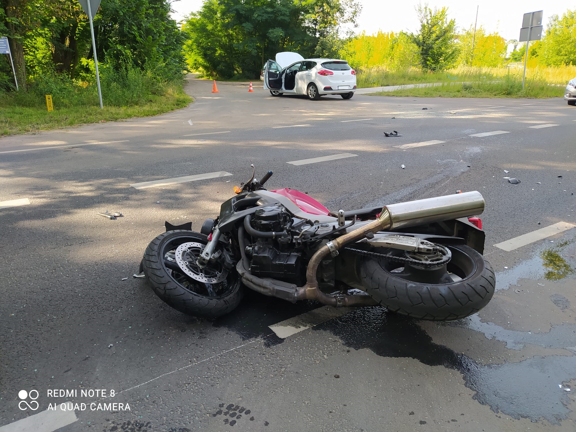 - wypadek samochodu osobowego marki KIA z motocyklistą, na który natknęli się strażacy jadąc na inną interwencje, wypadek miał miejsce w Lesznie na ulicy Kąkolewskiej na skutek czego motocyklista został ranny oraz przewieziony do szpitala,