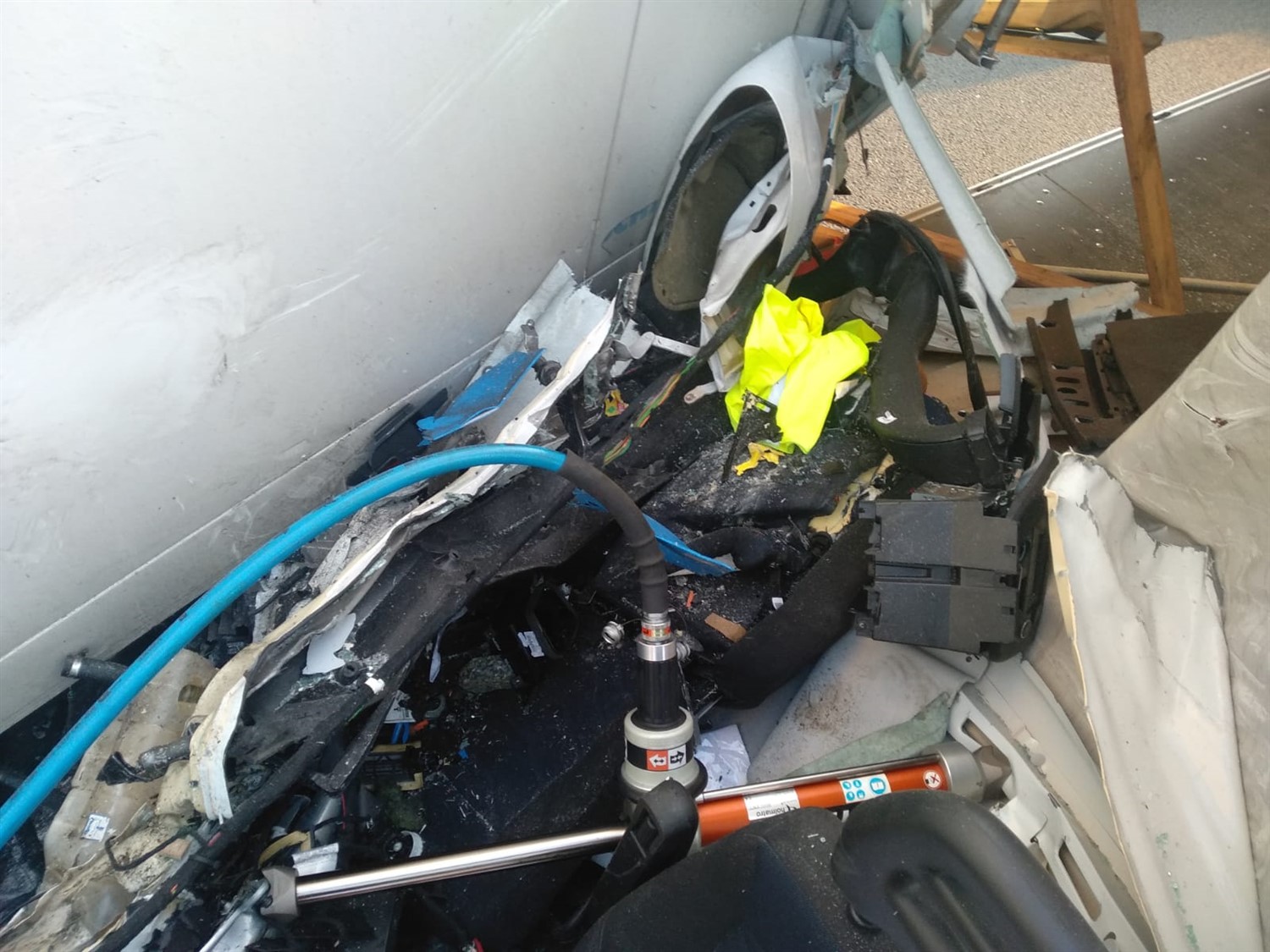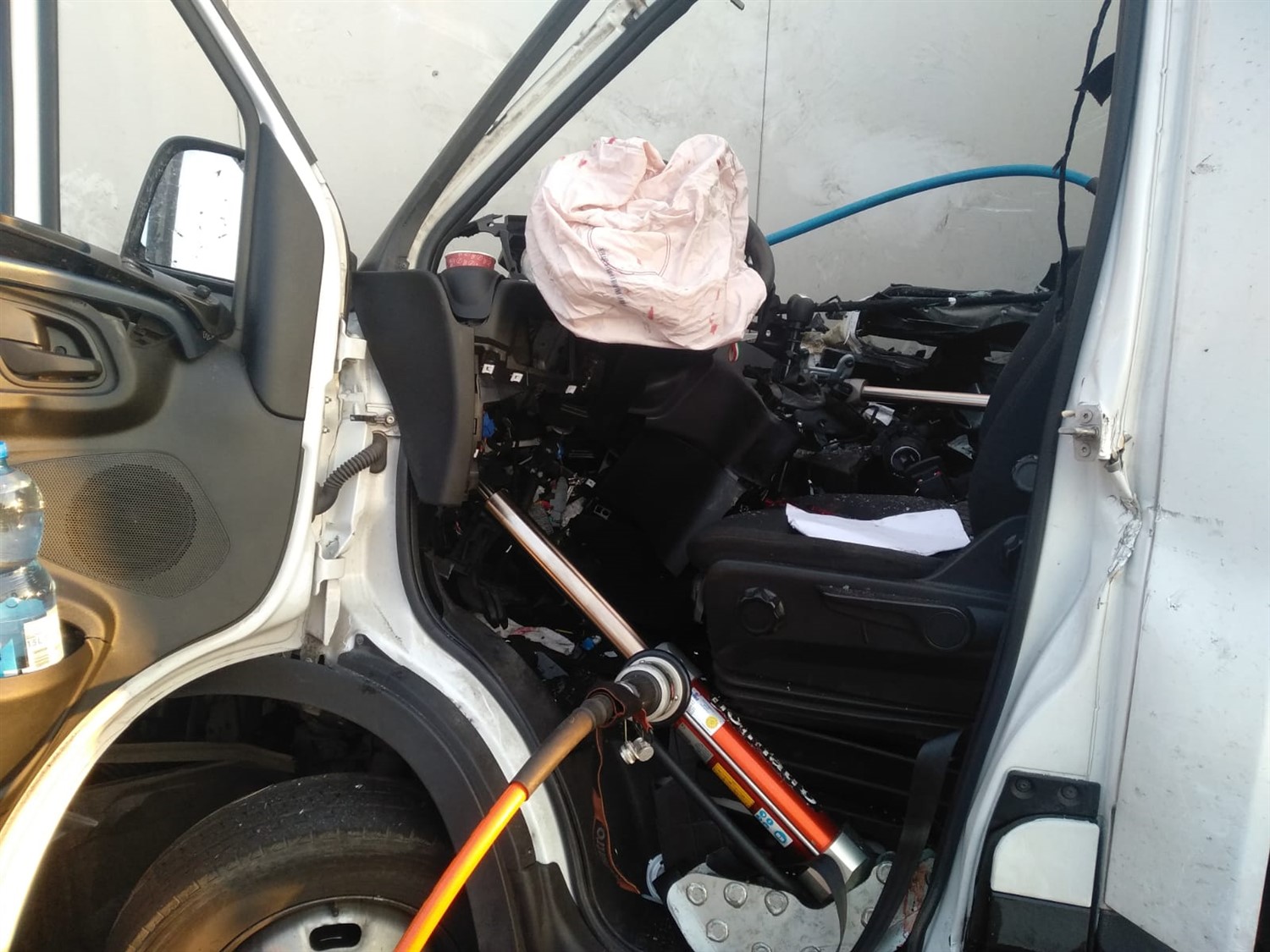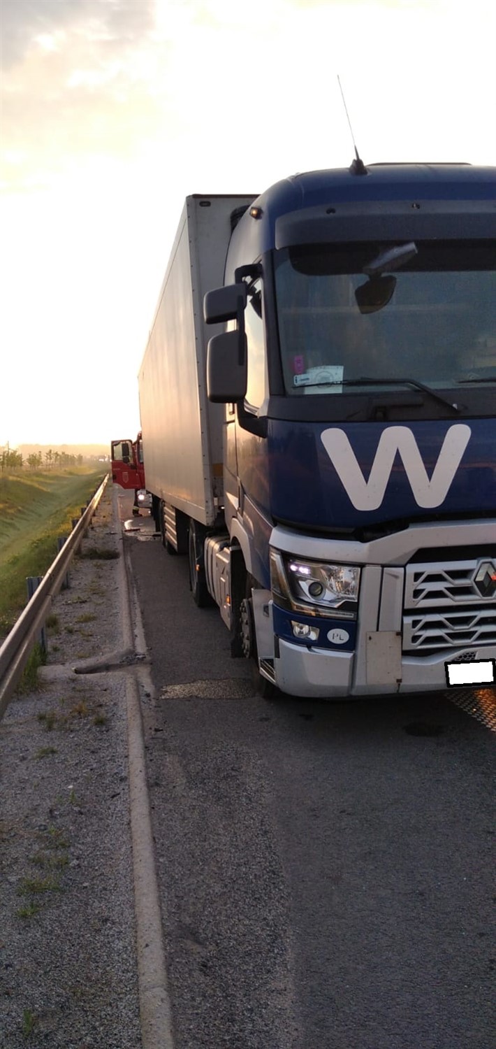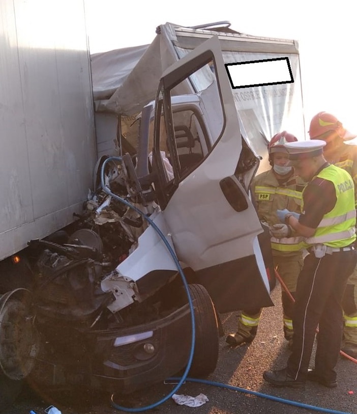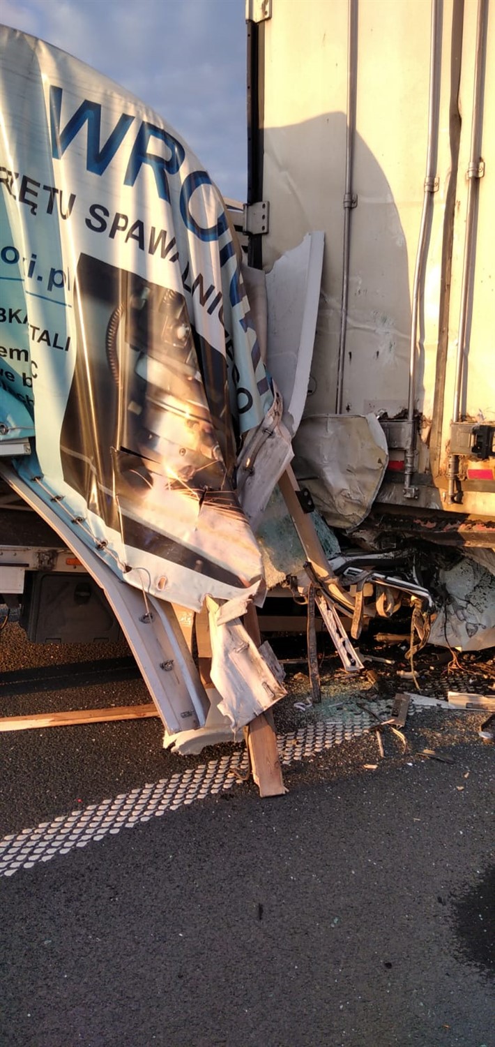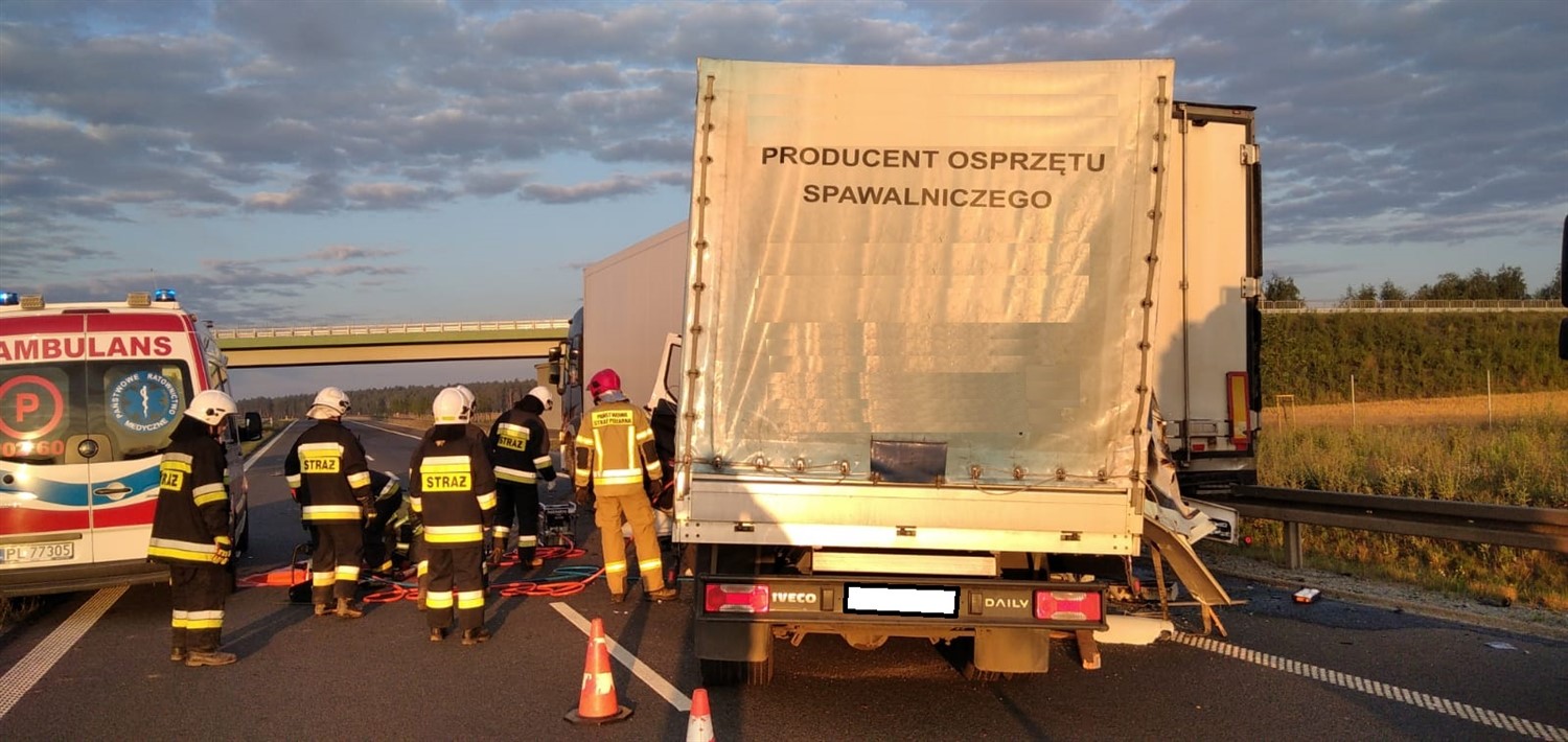 Na miejsce zdarzenia zostały zadysponowane trzy zastępy z OSP Lipno, OSP Święciechowa oraz JRG Leszno. Pierwszy przybyły na miejsce zdarzenia zastęp zastał samochód dostawczy marki IVECO oraz samochód ciężarowy marki RENAULT z naczepą po wypadku, na nitce S5 w kierunku Wrocławia. Strażacy zabezpieczyli teren działań poprzez całkowite zamknięcie ruchu w kierunku Wrocławia. Następnie przy użyciu narzędzi hydraulicznych wykonali dostęp do kierującego autem dostawczym. Poszkodowany został ewakuowany z pojazdu i przekazany Zespołowi Ratownictwa Medycznego. Po dokonaniu czynności dochodzeniowych przez Policję, samochód dostawczy został usunięty z jezdni oraz posprzątano resztki powypadkowe wraz z neutralizacją płynów eksploatacyjnych. Straty oszacowano na 70 tys. zł.